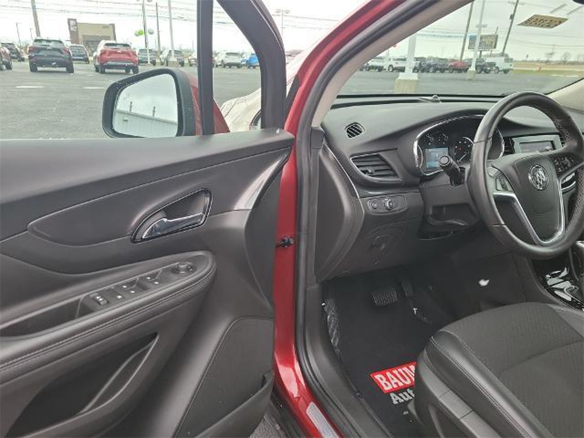 CARFAX One-Owner. Clean CARFAX. Cinnabar Metallic 2022 Buick Encore Preferred 4D Sport Utility 1.4L ECOTEC Turbo VVT DOHC 4-Cyl SIDI 6-Speed Automatic Electronic with Overdrive AWD BAUMANN AUTO GROUP GENOA - 419.855.8366. ONE OWNER, CLEAN CARFAX REPORT, 120-Volt Power Outlet, 6-Speaker Audio System, Exterior Parking Camera Rear, Preferred Equipment Group 1SB, Radio: 7 Diagonal Buick Infotainment System, Rear Cross Traffic Alert, Safety Package, Side Blind Zone Alert, SiriusXM Radio, 18 Aluminum Wheels, 2-Way Manual Front Passenger Seat Adjuster, 3 Years of OnStar & Connected Services Plan (DISC), 3.53 Final Drive Axle Ratio, 4-Wheel Disc Brakes, 6 Speakers, 6-Way Power Driver Seat Adjuster, ABS brakes, Air Conditioning, Alloy wheels, AM/FM radio: SiriusXM, Apple CarPlay/Android Auto, Brake assist, Bumpers: body-color, Cloth w/Leatherette Seat Trim, Compass, Delay-off headlights, Driver door bin, Driver vanity mirror, Driver's Seat Mounted Armrest, Dual front impact airbags, Dual front side impact airbags, Electronic Stability Control, Emergency communication system: OnStar and Buick connected services capable, Front anti-roll bar, Front Bucket Seats, Front License Plate Bracket, Front reading lights, Front wheel independent suspension, Fully automatic headlights, Heated door mirrors, Illuminated entry, Knee airbag, Leather steering wheel, Low tire pressure warning, Occupant sensing airbag, Outside temperature display, Overhead airbag, Panic alarm, Passenger door bin, Passenger vanity mirror, Power door mirrors, Power driver seat, Power steering, Power windows, Radio data system, Rear seat center armrest, Rear side impact airbag, Rear window defroster, Rear window wiper, Remote keyless entry, Ride & Handling Suspension, Roof rack: rails only, Security system, Speed control, Speed-sensing steering, Split folding rear seat, Spoiler, Steering wheel mounted audio controls, Tachometer, Telescoping steering wheel, Tilt steering wheel, Traction control, Trip computer, Variably intermittent wipers, 120-Volt Power Outlet, 6-Speaker Audio System, Exterior Parking Camera Rear, Preferred Equipment Group 1SB, Radio: 7 Diagonal Buick Infotainment System, Rear Cross Traffic Alert, Safety Package, Side Blind Zone Alert, SiriusXM Radio.