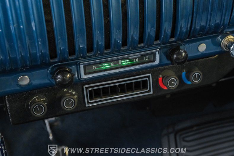 Highlights 350 V8 Engine with Edelbrock Carburetor 700R4 4-Speed Automatic Transmission Mustang II Front Suspension 10-Bolt Rear Axle with Lowering Blocks Power Steering and Power Brakes Under Dash Air Conditioning Blue Vinyl Interior Billet Steering Wheel on Tilt Column Lokar Floor Shifter Kenwood AM/FM/CD/Aux Radio Two-Tone Blue Paint with Chrome Accents Wood Plank Bed Clear Upgraded Headlights Financing Available Vehicle Protection Plans Available Worldwide Shipping