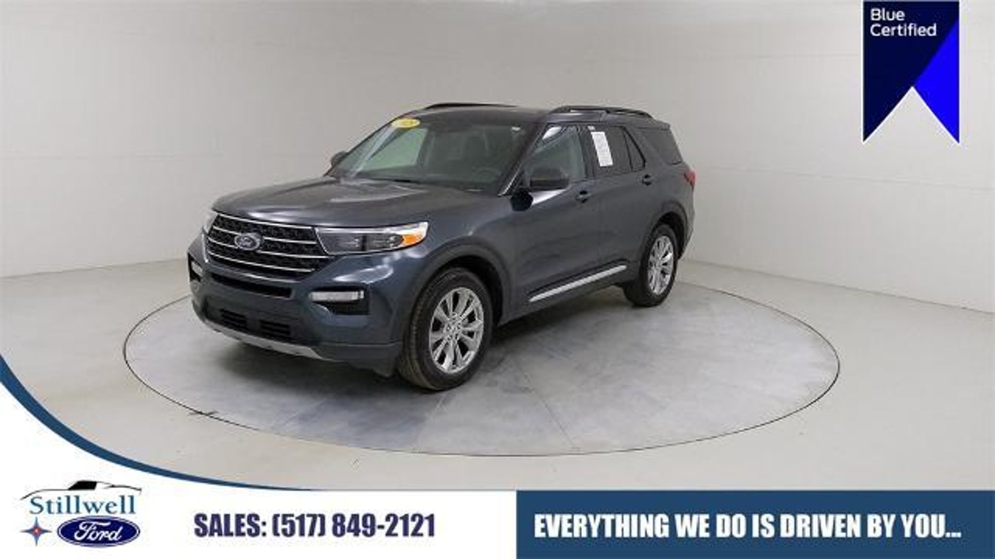 Stone Blue attitude. Three-row freedom. Certified confidence for real life. This Certified 2023 Ford Explorer XLT 4WD in Stone Blue Metallic is the kind of SUV that makes the daily grind feel upgraded. It looks right at home rolling through Detroit, cutting across Ann Arbor, or heading west toward Grand Rapids on I-94, US-23, and M-14, cruising through Wayne County, Washtenaw County, and Kent County with that planted Explorer stance that always looks ready for the next move. Power comes from the 2.3L EcoBoost paired with a 10-speed automatic, giving you smooth pull, quick response, and the kind of easy passing power that makes highway driving feel effortless. Add 4WD and this Explorer stays composed when the weather turns moody, whether youâre running down to Toledo, pushing toward Columbus, or sliding along toward Cleveland on I-75, I-71, and I-90, moving through Lucas County, Franklin County, and Cuyahoga County with calm control. Inside, itâs built for the way people actually live. Youâve got Intelligent Access with push-button start, remote start, and a power liftgate that turns âhands fullâ into âno problem.â Comfort shows up strong with heated front seats, a heated steering wheel, and tri-zone electronic climate control that keeps every row happy even when everyone in the cabin has a different opinion about temperature. And because this is a true family-and-friends hauler, you get third-row 50/50 fold-flat seating plus a 2nd-row split bench with E-Z Entry so the back row is easy to access without the awkward gymnastics routine. The cabin is finished in Ebony ActiveX seating material, giving it that durable, upscale feel that holds up to busy schedules and big weekends. Now for the fun part: the Twin Panel Moonroof. This is the feature that changes the whole vibe. Open it up and the Explorer instantly feels bigger, brighter, and more premium. Itâs perfect for those long stretches toward Fort Wayne, Indianapolis, and South Bend on I-69, I-465, and US-31, cruising through Allen County, Marion County, and St. Joseph County with sunlight pouring in and the whole cabin feeling like a rolling lounge. Tech stays clean and connected with SYNC 3 on an 8-inch touchscreen, SiriusXM, and 4G LTE Wi-Fi hotspot capability, so the drive is always plugged in and ready, whether itâs weekday traffic or weekend escape mode. Outside, the details land exactly right: LED headlamps with LED signature lighting, black roof-rack side rails, rear privacy glass, and a clean rear spoiler finish. Itâs si