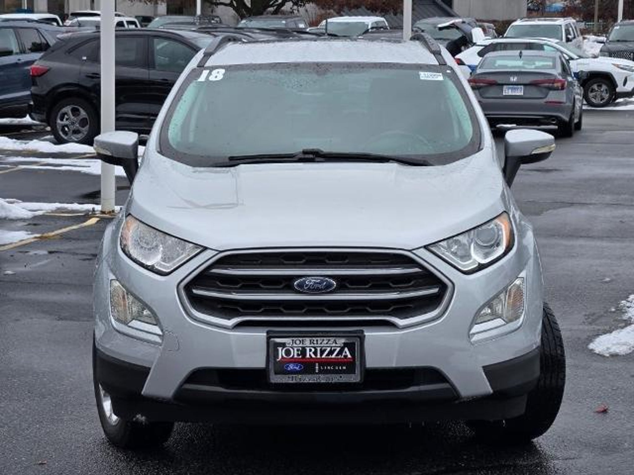 Moondust Silver Metallic 2018 Ford EcoSport SE 4WD 110V/150W AC Power Outlet, 7 Speakers, Ambient Lighting, BLIS Blind Spot Information System, Equipment Group 200A, SE Convenience Package, SYNC 3 Communications & Entertainment System w/47B, SYNC Connect, Wheels: 16 Shadow Silver-Painted Aluminum. Recent Arrival! Odometer is 18681 miles below market average! 23/29 City/Highway MPG Awards: * 2018 KBB.com 10 Most Awarded Brands * 2018 KBB.com Brand Image Awards Serving all of Chicago, Orland Park, Tinley Park, Frankfort, New Lenox, Mokena, Manhattan, Homer Glen, Lockport, Lemont Oak Lawn, Palos Heights, Palos Hills, Oak Brook, Naperville, Hinsdale, Lombard, Lisle, Bolingbrook, Joliet and Oak Park, Chicago land & Chesterton, Crown Point, DeMotte, Dyer, East Chicago, Griffith, Highland, Hammond, Hebron, Hobart, Kentland, Lake Station, La Porte, Merrillville, Michigan City, Munster, Portage, Rensselaer, Schererville, St. John, Cedar Lake, Valparaiso, and Winfield,Gary, Northwest Indiana. All Fords and Lincolns have went through a 150 point inspection and certification is available. Please ask your salesperson about the benefits of owning a certified vehicle.