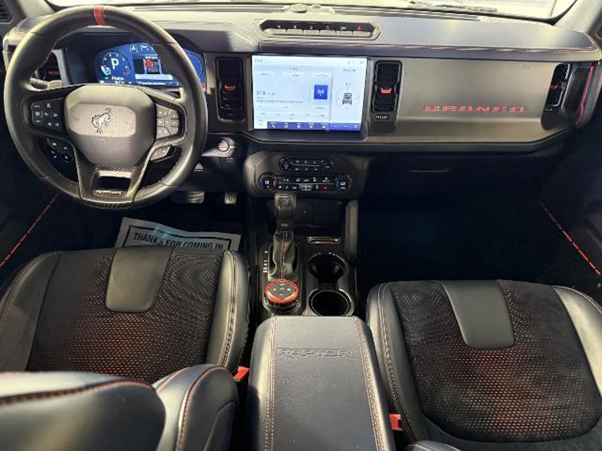 **2024 Ford Bronco Raptor 4-Door 4x4** **Ford Gold Certified Clean CarFax** Experience top-tier off-road performance with the 2024 Bronco Raptor engineered with a 3.0L EcoBoost V6 10-speed automatic advanced suspension and a full suite of Raptor-exclusive capabilities. This example is Ford Gold Certified and backed by an exceptional warranty plus roadside assistance. **Key Features & Options** **Equipment Group 374A Raptor Series** 12 LCD touchscreen with SYNC 360-degree camera High-capacity cooling system Front stabilizer bar disconnect FOX Live Valve HOSS 4.0 Suspension Advanced 4x4 with G.O.A.T. Modes Full underbody bash plates Marine-grade vinyl interior Blind spot monitoring lane keeping system Forward sensing pre-collision assist Remote keyless entry & push-button start **Optional Equipment** **Lux Package** Adds advanced driver assist & convenience features **Sound Deadening Headliner** **Interior Carbon Fiber Accent Pack** **Code Orange Seat Belts** **Leather-Trim/Suede Raptor Seats** **Roof Panels Storage Bag** **Keyless Keypad Entry** **17 Black Alloy Wheels with Beadlock Capable Design** **LT37 All-Terrain Tires** This Bronco Raptor stands out with Shadow Black exterior Onyx/Blue interior unmatched capability and top safety and technology features throughout. A premium factory-ordered build with a **$99530 MSRP**. Ford Gold Certification adds comprehensive warranty coverage rigorous inspection and peace of mind. Clean CarFax no stories and ready for immediate delivery. Ford Gold Certified Details: * Roadside Assistance * Powertrain Limited Warranty: 84 Month/100000 Mile (whichever comes first) from original in-service date * Warranty Deductible: $100 * Transferable Warranty * and 22000 FordPass Rewards Points to use toward first two maintenance visits * Vehicle History * Limited Warranty: 12 Month/12000 Mile (whichever comes first) after new car warranty expires or from certified purchase date * 172 Point Inspection Although every reasonable effort is taken to provide accurate information Dealer is not responsible for any errors or omissions on this page. Unless otherwise noted or specified pricing shown does not include $999 dealer fee $109 electronic filing fee title registration and tax fees.