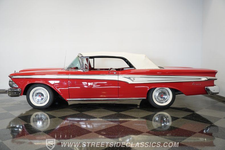 Details > 1959 Edsel Corsair Convertible 1959 Edsel Corsair For Sale in Mesa, AZ Private Party Sellers Click here to place your ad now! You auta tell them you saw the ad in AutaBuy when you call or email. 1/75 2/75 3/75 4/75 5/75 6/75 7/75 8/75 9/75 10/75 11/75 12/75 13/75 14/75 15/75 16/75 17/75 18/75 19/75 20/75 21/75 22/75 23/75 24/75 25/75 26/75 27/75 28/75 29/75 30/75 31/75 32/75 33/75 34/75 35/75 36/75 37/75 38/75 39/75 40/75 41/75 42/75 43/75 44/75 45/75 46/75 47/75 48/75 49/75 50/75 51/75 52/75 53/75 54/75 55/75 56/75 57/75 58/75 59/75 60/75 61/75 62/75 63/75 64/75 65/75 66/75 67/75 68/75 69/75 70/75 71/75 72/75 73/75 74/75 75/75 View 75 Photos View All Add to My Garage Parked in Your Garage! Streetside Classic Cars Phoenix Call: 480-926-1344 Contact Seller: I would like to: Make Offer Check Availability Ask A Question Request More Photos Check Financing Options Send a copy of this message to me Add this listing to my garage Send to Mobile Exterior Color Red Stock # 4714-PHX Estimated Monthly Payment $940 mo Apply Now J.J. Best Banc & Co. 1959 Edsel Corsair Convertible 1959 Edsel Corsair Description: New Arrival! Details coming soon! Call 480-926-1344 for more information. Be sure to ask about our services offered; Financing, Vehicle Protection Plan, Insurance, and Transportation to your driveway! Visit Full Video Page · Color: Red Price: $53,995. Exterior Color Red Stock # 4714-PHX Estimated Monthly Payment $940 mo Apply Now J.J. Best Banc & Co. Add to My Garage Parked in Your Garage! Call Seller Message Seller Streetside Classic Cars Phoenix Call: 480-926-1344 Contact Seller: I would like to: Make Offer Check Availability Ask A Question Request More Photos Check Financing Options Send a copy of this message to me Add this listing to my garage Offered for sale by Streetside Classic Cars Phoenix Call 480-926-1344 MESA, AZ Mention OldCar.com when you call. Price: $53,995. Offered for sale by Streetside Classic Cars Phoenix Call 480-926-1344 MESA, AZ Mention OldCar.com when you call. [entire inventory] Do you have a similar car to sell? List It Now! Questions about this car? Ask Auta Intelligence for production numbers, available options, etc. · Subscribe to AutaBuy! · Send a Gift Subscription Notice to a Friend