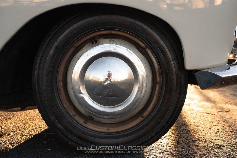 Finished in White/Pearl White, the Pininfarina coachwork displays the restrained elegance typical of the era, with Pininfarina badges adorning the bodywork. The paint shows honest wear consistent with age and use, with various chips, scratches, and some rust throughout that tell the story of a car that has lived its life. Exterior chrome trim exhibits a patina with some pieces showing pitting and hazing. The glass remains in good overall condition with minor windshield scratches. A single wing mirror maintains the period-correct appearance, while hub caps complete the classic look. This is an honest presentation of a car with project potential or gradual restoration opportunity.