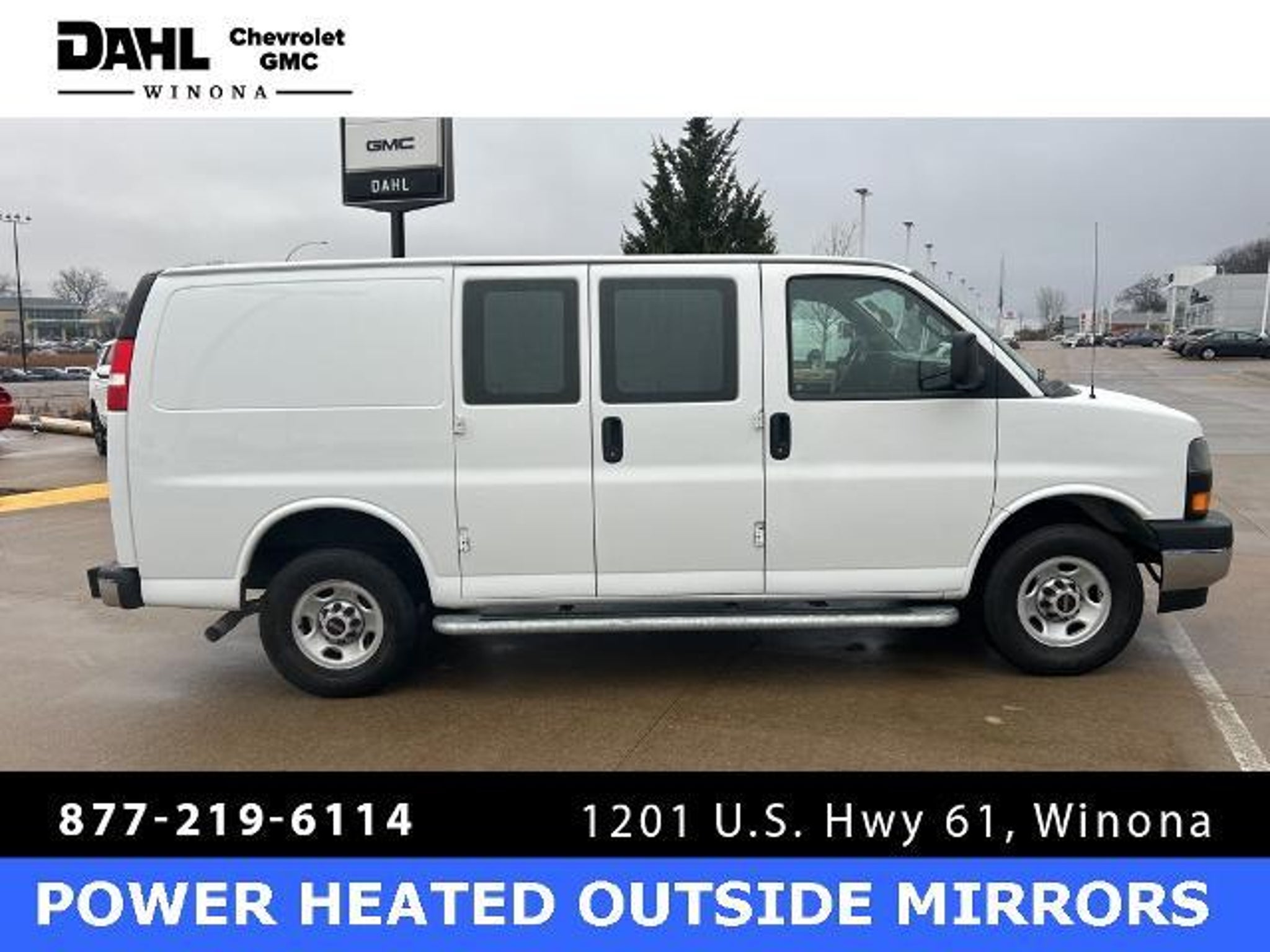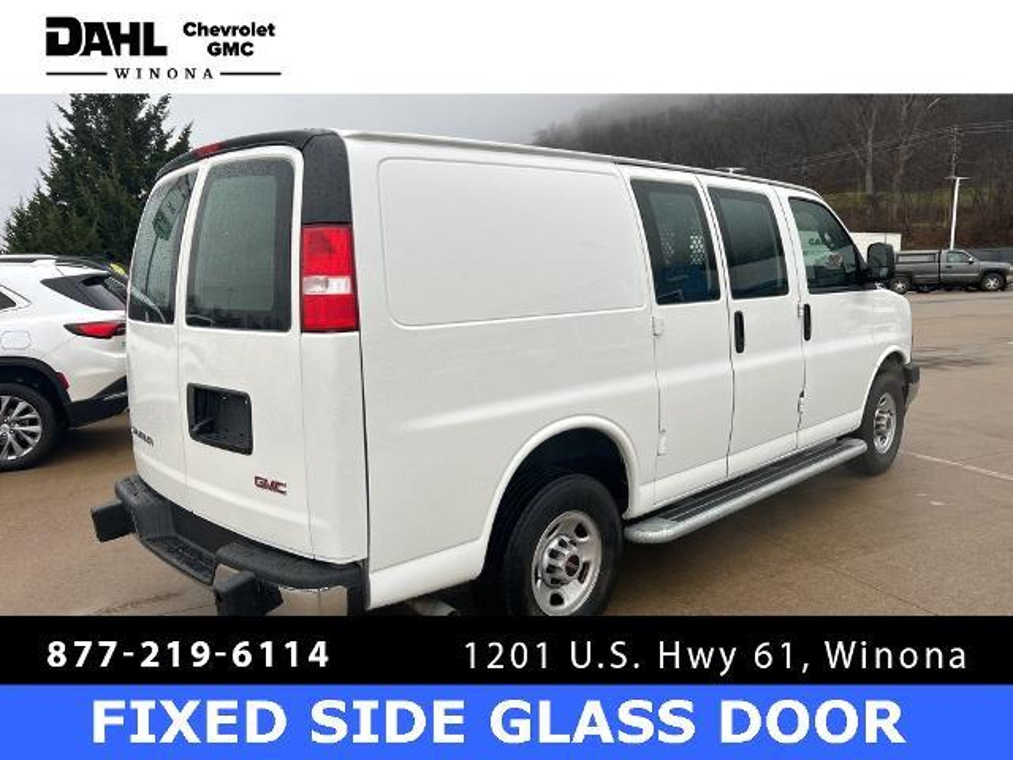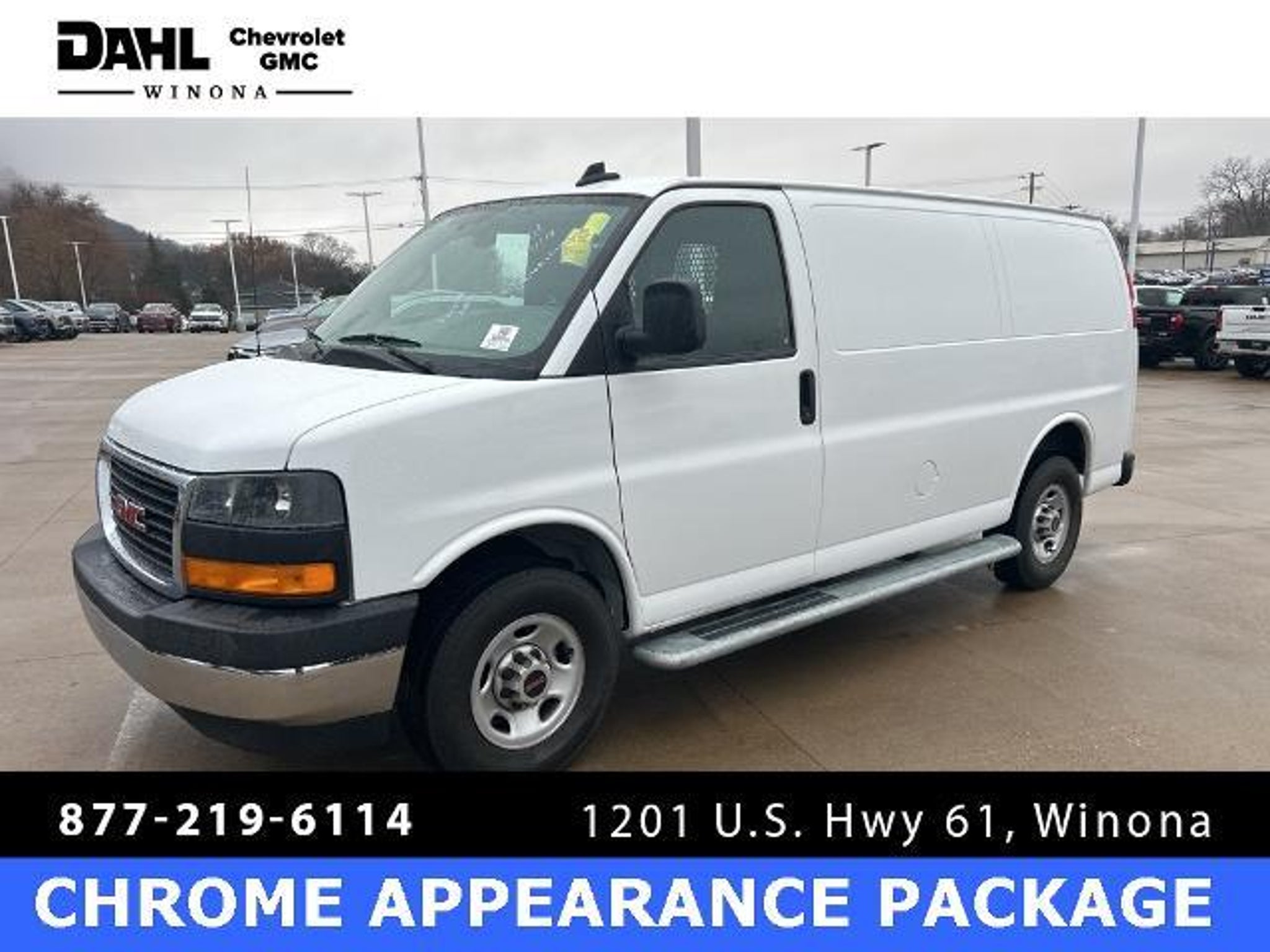 2024 Summit White GMC Savana 2500 Work Van 2500 CARGO VAN 4.3L V6 For sale at DAHL Chevrolet Buick GMC in Winona Minnesota., The standout features for this GMC Savana 2500 are, One Owner, No Accidents, Backup Camera, Automatic Headlights, Non-Smoker, 2 Speakers, Air Conditioning, AM/FM radio, AM/FM Stereo w/MP3 Player, Black Rubberized-Vinyl Front Only Floor Covering, Chrome Appearance Package, Chrome Grille, Cruise Control, Driver & Front Passenger High-Back Bucket Seats, Driver Convenience Package, Fixed Rear Door Window Glass, Fixed Rear Side Door Window Glass, Front & Rear Chrome Bumpers w/Step-Pad, Front Bucket Seats, Front Reclining High-Back Bucket Seats, Fully automatic headlights, Heated door mirrors, Low tire pressure warning, Power door mirrors, Power steering, Power windows, Preferred Equipment Group 1WT, Single-Zone Manual Air Conditioning, Tilt Steering Wheel. Priced below KBB Fair Purchase Price! Odometer is 746 miles below market average! Choosing a DAHL USED CAR ADVANTAGE vehicle will give you the confidence your decision is a sound investment. A Dahl UCA vehicle provides you with a 7 month/7,000 mile powertrain limited warranty. A fully comprehensive 169-point inspection conducted by a factory-trained technician. A complete Superior Vehicle Detail. 3-day money back guarantee or 30-day easy exchange option. Plus a complimentary Autocheck vehicle history report. If only all life's decisions were this easy. Thank you for taking the time to look at this wonderful 2024 GMC Savana 2500. To ensure that your recently purchased vehicle remains in tip-top condition, we include the first scheduled maintenance appointment with every vehicle purchased.