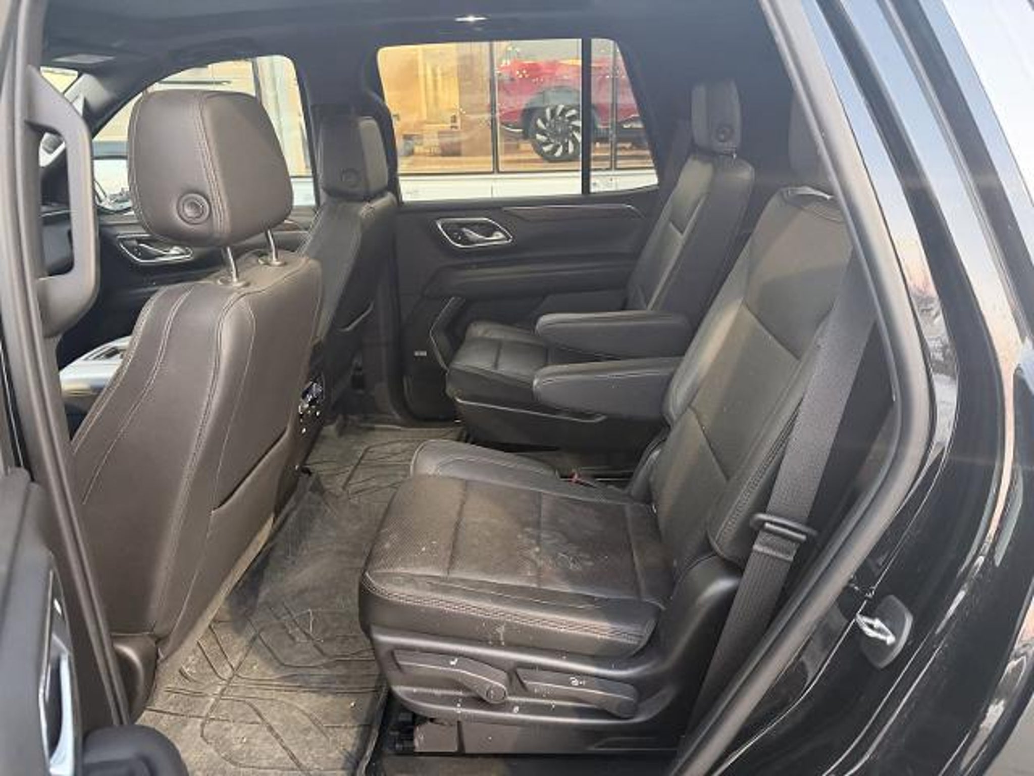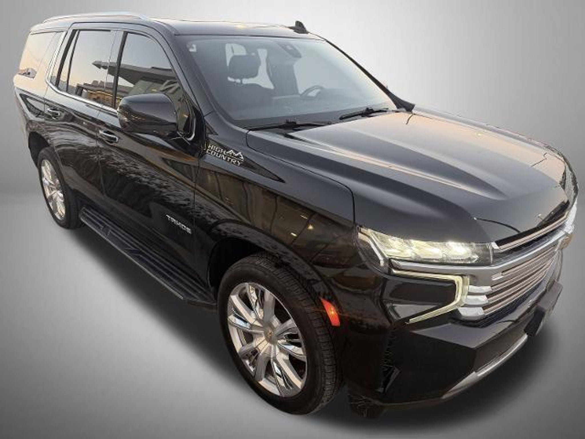Black 2021 Chevrolet Tahoe High Country 4WD 10-Speed Automatic with Overdrive 6.2L V8 4WD, Jet Black Leather, 10 Speakers, 12-Way Power Driver & Passenger Seat Adjusters, 15 Diagonal Multi-Color Head-Up Display, 1st & 2nd Row Color-Keyed Carpeted Floor Mats, 2 USB Data Ports, 2-Speed Active Electronic AutoTrac Transfer Case, 3.23 Rear Axle Ratio, 3rd Row 60/40 Power-Folding Split-Bench Seat, 3rd row seats: split-bench, 4-Wheel Disc Brakes, ABS brakes, Adaptive Cruise Control, Adaptive suspension, Air Conditioning, Alloy wheels, AM/FM radio: SiriusXM with 360L, Apple CarPlay/Android Auto, Auto High-beam Headlights, Auto-dimming door mirrors, Auto-dimming Rear-View mirror, Auto-leveling suspension, Automatic Heated Steering Wheel, Automatic temperature control, Bose 10-Speaker Centerpoint Surround Audio Sys Ft, Brake assist, Bright Front & Rear Door Sill Plates, Bumpers: body-color, Chrome Door Handles w/Body-Color Strip, Color-Keyed Carpeting Floor Covering, Compass, Delay-off headlights, Driver & Front Outboard Passenger Airbags, Driver door bin, Driver vanity mirror, Dual Exhaust System, Dual front impact airbags, Dual front side impact airbags, Dual-Pane Power Panoramic Sunroof, Electronic Stability Control, Emergency communication system: OnStar and Chevrolet connected services capable, Enhanced Automatic Emergency Braking, Enhanced Driver Information Center, Floor Console, Floor Console w/Storage Area, Four wheel independent suspension, Front & Rear Park Assist, Front anti-roll bar, Front Bucket Seats, Front Center Armrest, Front dual zone A/C, Front High-Back Reclining Bucket Seats, Front reading lights, Fully automatic headlights, Garage door transmitter, Hands-Free Rear Power Programmable Liftgate, HD Radio, HD Surround Vision, Heads-Up Display, Heated & Ventilated Driver & Front Passenger Seats, Heated 2nd Row Outboard Seats, Heated door mirrors, Heated Driver & Front Passenger Seats, Heated front seats, Heated rear seats, Heated steering wheel, Hill Descent Control, Illuminated entry, Infotainment Display, Inside Rearview Auto-Dimming Rear Camera Mirror, Lane Change Alert w/Side Blind Zone Alert, Lane Keep Assist w/Lane Departure Warning, Leather steering wheel, Leather-Wrapped Steering Wheel, LED Daytime Running Lamps, License Plate Front Mounting Package, Low tire pressure warning, Magnetic Ride Control Suspension, Memory seat, Memory Settings, Navigation System, Not Equipped w/Automatic Stop/Start, Not Equipped w/Steering Column Lock, Not Equipped w/Wireless Charging, Occupant sensing airbag