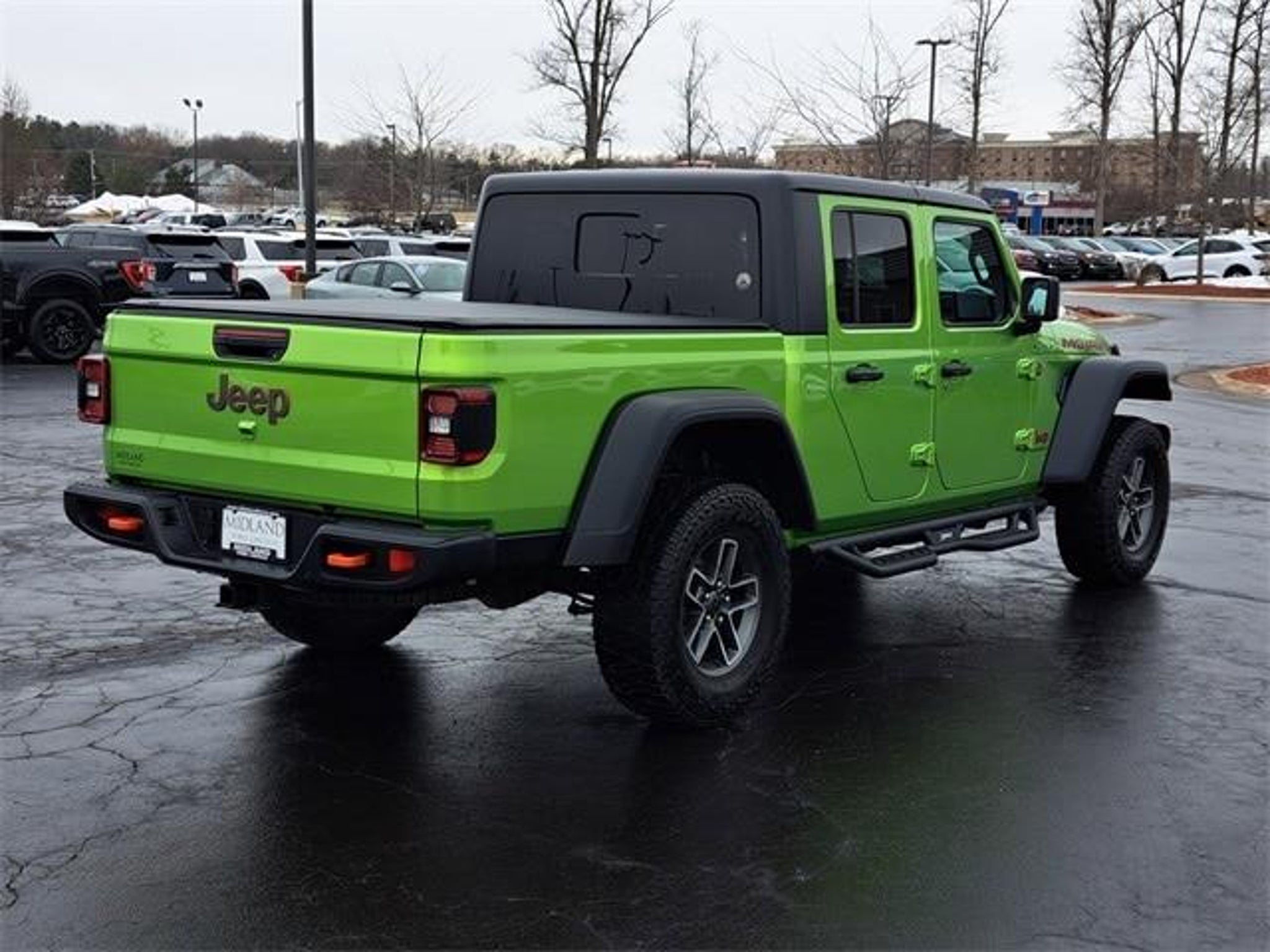 Mojito 2025 Jeep Gladiator Mojave 4WD 3.6L V6 24V VVT 12.3 Touchscreen Display, 4-Wheel Disc Brakes, 4.10 Rear Axle Ratio, 4G LTE Wi-Fi Hot Spot, 8 Speakers, 97 MPH Vehicle Max Speed Calibration, ABS brakes, Air Conditioning, Alexa Built-In, Alloy wheels, AM/FM radio: SiriusXM, Apple CarPlay, Apple CarPlay/Android Auto, Auto High Beam Headlamp Control, Automatic temperature control, Black 3-Piece Hard Top, Blind Spot & Cross Path Detection, Brake assist, Compass, Connectivity - US/Canada, Convenience Group, Delay-off headlights, Driver door bin, Driver vanity mirror, Dual front impact airbags, Dual front side impact airbags, Electronic Stability Control, Emergency communication system: Jeep Connect, Freedom Panel Storage Bag, Front anti-roll bar, Front Bucket Seats, Front Center Armrest w/Storage, Front dual zone A/C, Front fog lights, Front reading lights, Fully automatic headlights, Google Android Auto, Heated door mirrors, Heated Front Seats, Heated Steering Wheel, Heavy Duty Suspension w/Gas Shocks, Illuminated entry, Integrated roll-over protection, Low tire pressure warning, Occupant sensing airbag, Outside temperature display, Overhead airbag, Panic alarm, ParkSense Rear Park Assist System, Passenger door bin, Passenger vanity mirror, Power door mirrors, Power steering, Power windows, Premium Cloth Seats w/Sport Bolsters, Quick Order Package 24D Mojave, Radio data system, Radio: Uconnect 5 w/12.3 Display, Rear anti-roll bar, Rear reading lights, Rear Sliding Window, Rear Window Defroster, Remote keyless entry, Remote Start System, Safety Group, Security system, SiriusXM Radio Service, SiriusXM w/360L, Speed control, Split folding rear seat, Steering wheel mounted audio controls, Tachometer, Telescoping steering wheel, Tilt steering wheel, Traction control, Trip computer, Universal Garage Door Opener, USB Host Flip, Variably intermittent wipers, Voltmeter, Wheels: 17 x 7.5 Dark Gray Painted. The vehicles that are listed online as Lincoln or Ford Certified may not include the cost for Certification. The window Stickers in the vehicle should have the correct Pre-Owned Certified prices. For complete vehicle information and pricing contact our Internet Sales Team at anytime by phone (989) 631-0108 or in person at our dealership during operation hours. Thank you for choosing Midland Ford-Lincoln to assist you with your internet research. Here we pride ourselves in providing a customer service experience that is second to none. We are looking forward to exceeding your expectations and sincerely appreci