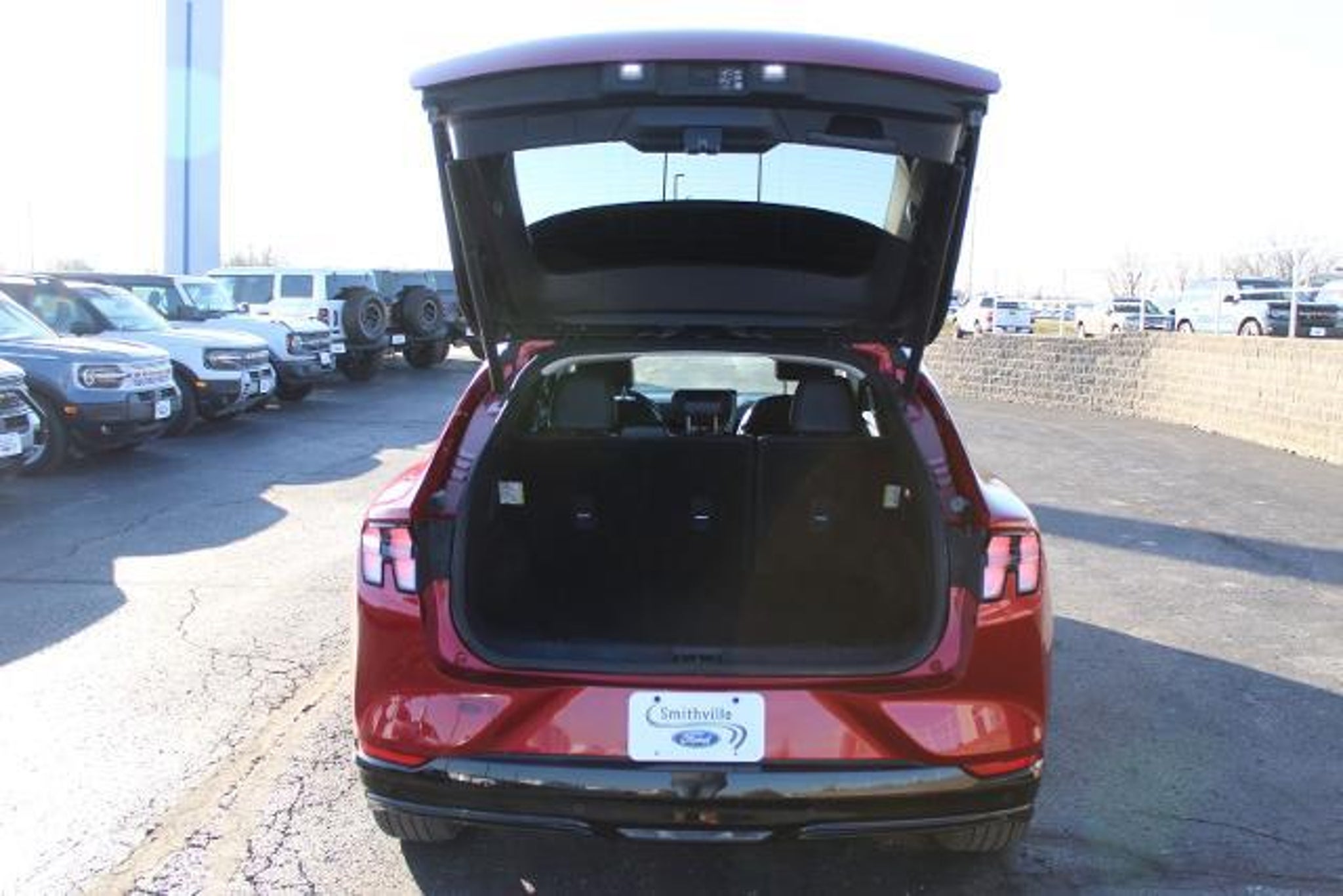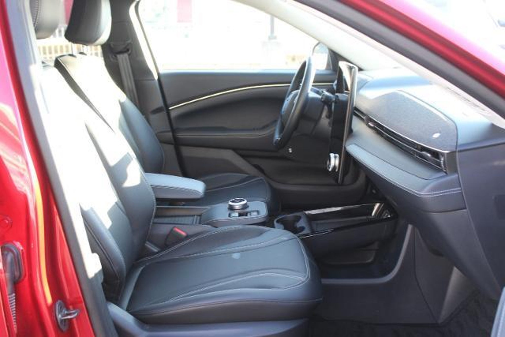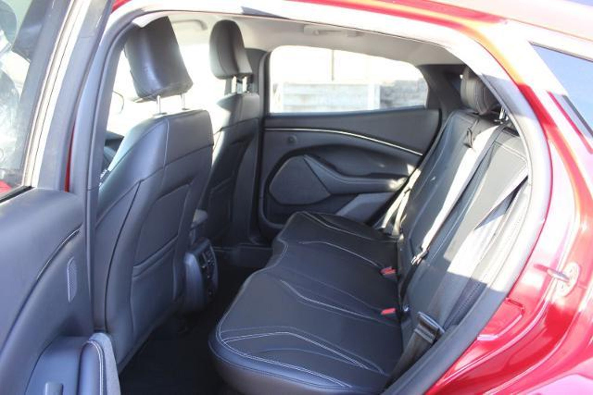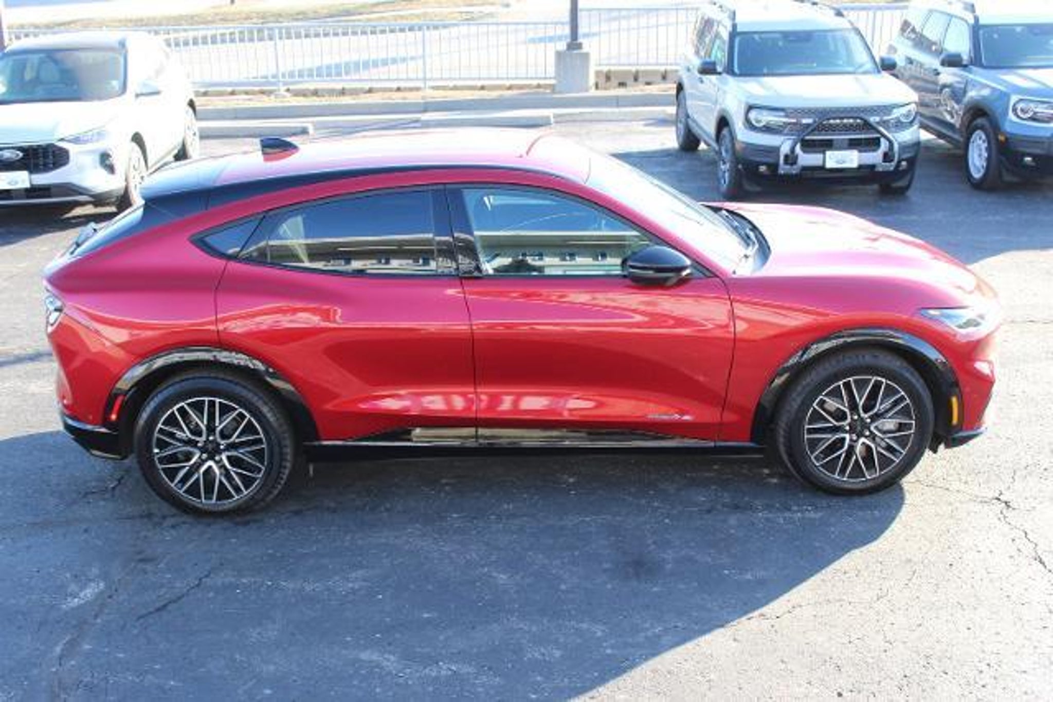 **CARFAX ONE OWNER**, **ACCIDENT FREE CARFAX**, **LOCAL TRADE**, **BLIND SPOT RECOGNITION**, **BLUETOOTH**, **FORD PASS**, **HEATED MIRRORS**, **HEATED SEATS**, **HEATED STEERING WHEEL**, **KEYLESS ENTRY**, **LEATHER**, **NEW CAR TRADE**, **REAR BACKUP CAMERA**, **REAR BACKUP SENSORS**, **SIRIUS/XM SATELLITE RADIO**, **PUSH BUTTON START**, **ALLOY WHEELS**, **POWER TAILGATE**, Equipment Group 300A, Navigation system: Connected Navigation, Power Liftgate, 10 Speakers, 4-Wheel Disc Brakes, ABS brakes, Air Conditioning, Alloy wheels, AM/FM radio: SiriusXM with 360L, AM/FM Stereo, Apple CarPlay/Android Auto, Auto High-beam Headlights, Auto-dimming Rear-View mirror, Automatic temperature control, Axle Ratio: 9.791, Brake assist, Bumpers: body-color, Compass, Delay-off headlights, Driver door bin, Driver vanity mirror, Dual front impact airbags, Dual front side impact airbags, Electronic Stability Control, Emergency communication system: 911 Assist, Exterior Parking Camera Rear, Four wheel independent suspension, Front anti-roll bar, Front Bucket Seats, Front Center Armrest, Front dual zone A/C, Front reading lights, Fully automatic headlights, Garage door transmitter, Heated door mirrors, Heated front seats, Heated Perforated ActiveX Bucket Seats, Heated steering wheel, Illuminated entry, Knee airbag, Low tire pressure warning, Memory seat, Mobile Power Cord (120V/240V), Occupant sensing airbag, Outside temperature display, Overhead airbag, Overhead console, Panic alarm, Passenger door bin, Passenger vanity mirror, Power door mirrors, Power driver seat, Power passenger seat, Power steering, Power windows, Radio data system, Rain sensing wipers, Rear anti-roll bar, Rear seat center armrest, Rear side impact airbag, Rear window defroster, Rear window wiper, Remote keyless entry, Security system, SiriusXM Radio w/360L, Speed control, Speed-sensing steering, Speed-Sensitive Wipers, Split folding rear seat, Spoiler, Steering wheel mounted audio controls, SYNC 4A w/Enhanced Voice Recognition, Telescoping steering wheel, Tilt steering wheel, Traction control, Trip computer, Turn signal indicator mirrors, Variably intermittent wipers, Wheels: 19 Bright Machined-Face Aluminum, Equipment Group 300A, Navigation system: Connected Navigation, Power Liftgate. 2024 Ford Mustang Mach-E Premium CARFAX One-Owner. Clean CARFAX. Rapid Red Metallic Tinted Clearcoat Ford Mustang Mach-E Odometer is 12315 miles below market average! 95/88 City/Highway MPG We carry all makes and models in Blue Springs, Oak Grove, Liberty, Odessa, Warr