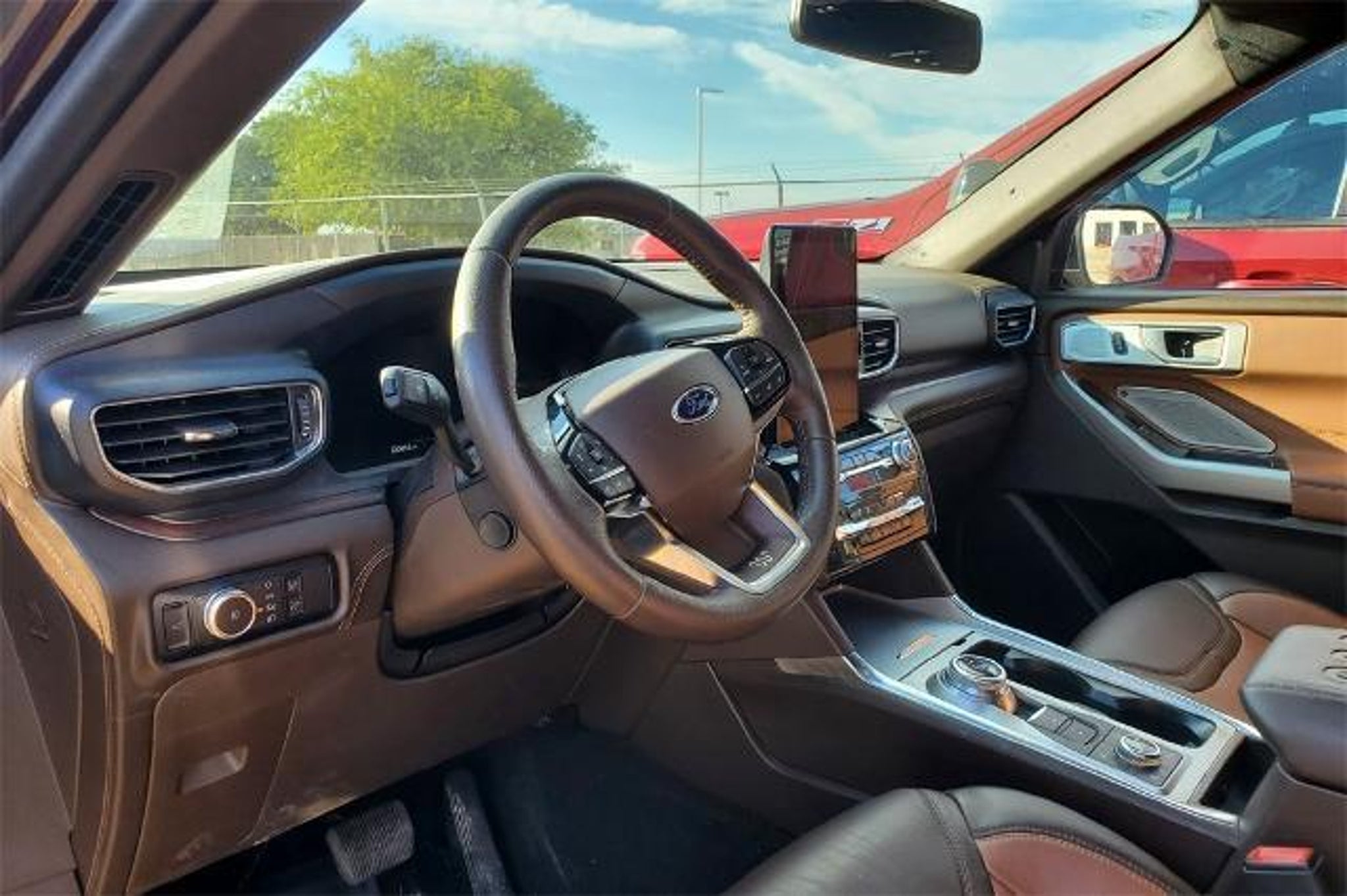 Cecil Atkission Ford 2023 Ford Explorer King Ranch Odometer: 22,054 miles Engine: 3.0L EcoBoost V6 Transmission: 10-Speed Automatic Drivetrain: 4WD Color: Jewel Red Metallic Tinted Clearcoat Interior: Java Leather VIN: 1FM5K8LC1PGA89059 Stock #: FB02933A Luxury. Power. Presence. Experience premium craftsmanship and confident capability in this 2023 Ford Explorer King Ranch. Finished in Jewel Red Metallic Tinted Clearcoat with a Java Mesa Del Rio leather interior, this SUV blends rugged performance with upscale refinement. Performance & Capability 3.0L EcoBoost V6 engine 10-Speed Automatic Transmission 4WD with traction control Four-wheel independent suspension Speed-sensing steering Interior Comfort & Convenience Mesa Del Rio Leather Heated & Ventilated Captains Chairs Heated rear seats and heated steering wheel 10.1 LCD Capacitive Portrait Touchscreen FordPass Connect with 4G LTE Wi-Fi hotspot SYNC 3 with Apple CarPlay & Android Auto Voice-Activated Navigation System Memory seating, power driver & passenger seats Genuine wood dashboard insert Twin Panel Moonroof Tri-zone automatic temperature control Technology & Audio B&O Sound System by Bang & Olufsen with 12 speakers and 2 additional subwoofers AM/FM radio with SiriusXM Navigation with real-time traffic updates Steering wheel-mounted audio and cruise controls Exterior Features 20 10-Spoke Aluminum Wheels with King Ranch center caps Power Liftgate Roof rack with rails Auto high-beam headlights Rain-sensing wipers and fog lights Power-folding heated mirrors with turn signals Jewel Red Metallic finish with King Ranch badging Safety & Security SYNC 3 911 Assist emergency communication Rearview camera ABS brakes with brake assist Electronic Stability Control and Roll Stability Control Multiple airbags including knee, side, and curtain Security system with panic alarm and tire pressure monitoring Discover the King Ranch difference where western-inspired luxury meets Ford toughness. Come experience this stunning 2023 Ford Explorer King Ranch today at Cecil Atkission Ford.
