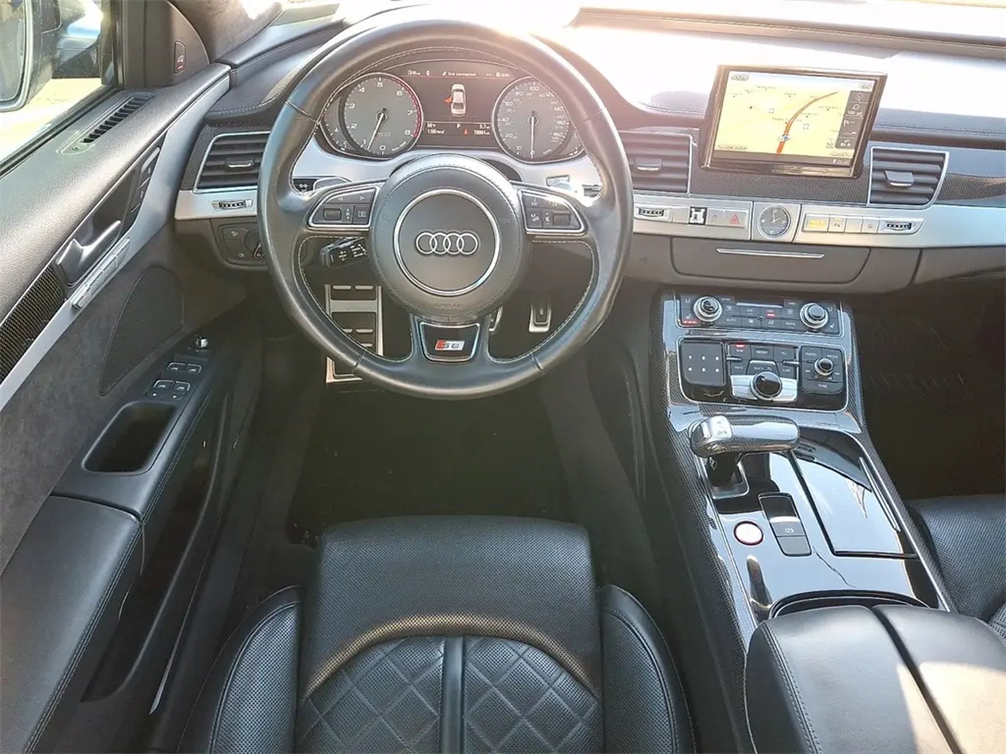 The 2016 Audi S8 4.0T, with 78,851 miles on the odometer, is a true stealth missile in a tailored suit, representing the pinnacle of Audi's executive performance engineering. Under the hood lies the legendary 4.0-liter twin-turbocharged V8 engine, producing either a formidable $520 \text{ hp}$ or a staggering $605 \text{ hp}$ (if equipped with the Performance Package), allowing this sedan to rocket from 0-60 mph in under four seconds with the confidence of quattro all-wheel drive. Beyond its blistering speed, the S8 offers an environment of ultimate luxury, featuring a meticulously crafted cabin with amenities like diamond-stitched premium leather, 22-way power seats with heating, ventilation, and massage functions, and cutting-edge technology including Audi's MMI Navigation and the potential Bang & Olufsen Advanced Sound System. This [INSERT COLOR] S8 combines aggressive S-model styling with subtle elegance, making it an exclusive and rare find for the discerning buyer who demands supercar performance without sacrificing flagship sedan comfort.. Clean CARFAX.