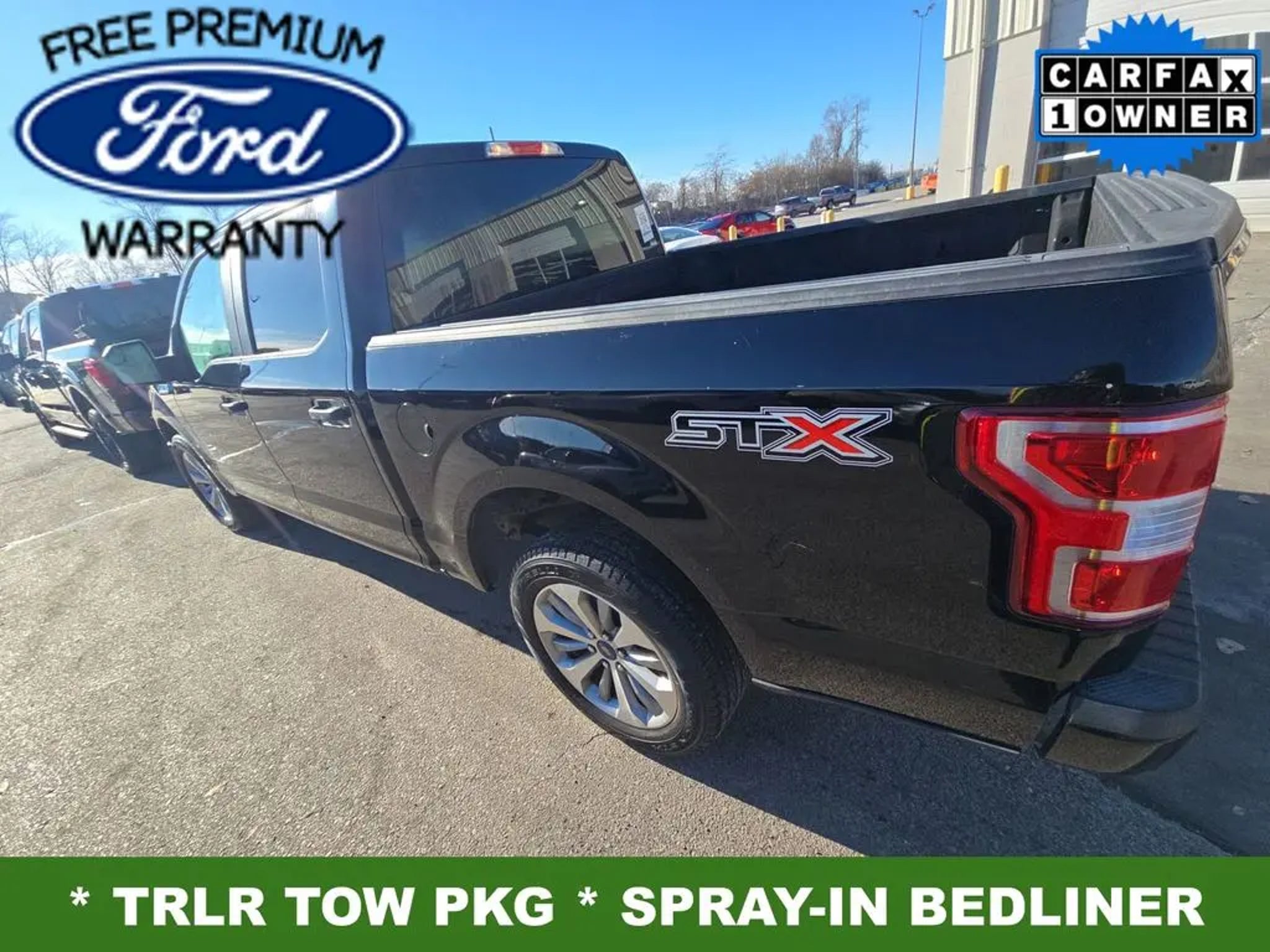 **FREE FORD FACTORY PREMIUM WARRANTY (12 MNTHS OR 12K MILES)**, **ONE OWNER**, **20' WHEELS**, **SYNC 3**, **SPRAY-IN BEDLINER**, **TOW PKG**, **PRO-TRAILER BACKUP ASSIST**, INTEGRATED TRLR BRAKE CONTROLLER**, **BACKUP CAMERA**, **REVERSE SENSING**, **TRITON PROTECT CAR CARE SYSTEM**, **TRITON PROTECT SILENT SECURITY THEFT DETERRENT SYSTEM**, **FULLY INSPECTED BY CERTIFIED TECHNICIANS**, 20 Machined-Aluminum Wheels, 6 Speakers, Class IV Trailer Hitch Receiver, Cruise Control, Delay-off headlights, Electronic Locking w/3.55 Axle Ratio, Equipment Group 101A Mid, Fog Lamps, Fully automatic headlights, GVWR: 6,800 lbs Payload Package, Higher-Capacity Radiator, Higher-Power Cooling Fans, Low Tire Pressure Warning, Manual Driver/Passenger Lumbar, MyKey, Power Door Locks, Power Front & Rear Windows, Power Tailgate Lock, Radio: AM/FM Stereo/Single-CD Player, Rear Window Defroster, STX Appearance Package, SYNC, Telescoping Steering Wheel, Tilt Steering Wheel, Trailer Tow Package, Upgraded Front Stabilizer Bar, Variably intermittent wipers, XL Power Equipment Group, XL Sport Appearance Package.