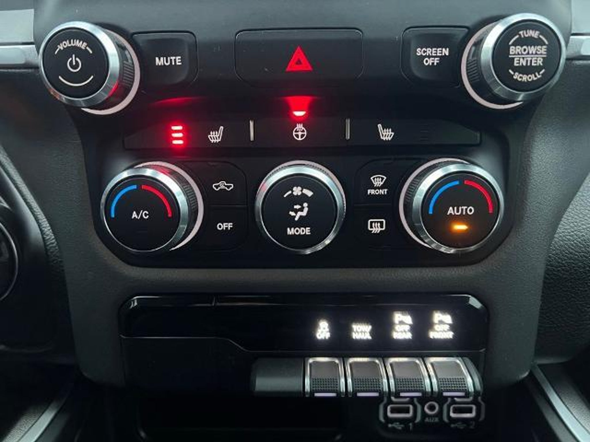 CARFAX One-Owner. Please call 937-642-0015 for availability. This vehicle is equipped with: **HEATED SEATS, **REAR BACK-UP CAMERA, **BLUETOOTH, **REMOTE START, **APPLE CARPLAY/ANDROID AUTO, 115V Auxiliary Power Outlet, 115V Auxiliary Rear Power Outlet, 2 USB Full Function/Charge Only Media Hub, 2nd Row In Floor Storage Bins, 3 Rear Seat Head Restraints, 4 Way Front Headrests, 400W Inverter, Air Conditioning ATC w/Dual Zone Control, Anti-Spin Differential Rear Axle, Auto-Dimming Exterior Driver Mirror, Auto-Dimming Rear-View Mirror, Big Horn IP Badge, Big Horn Level 2 Equipment Group, Black Exterior Truck Badging, Black Headlamp Bezels, Black Interior Accents, Black Premium Power Mirrors, Body Color Door Handles, Body Color Exterior Mirrors, Body Color Front Bumper, Body Color Premium Power Mirrors, Body Color Rear Bumper w/Step Pads, Bucket Seats, Class IV Receiver Hitch, Dampened Tailgate, Deluxe Cloth Bucket Seats, Dual Exhaust w/Black Tips, Exterior Mirrors Courtesy Lamps, Exterior Mirrors w/Memory, Foam Bottle Insert (Door Trim Panel), Front fog lights, Front Seat Back Map Pockets, Full Length Floor Console, Glove Box Lamp, Grille Surround 1 Black Texture 2 Black, Heated door mirrors, Heated Front Seats, Heated Steering Wheel, Manual Adjust 4-Way Front Passenger Seat, Night Edition, ParkSense Front/Rear Park Assist w/Stop, ParkView Rear Back-Up Camera, Power 4-Way Driver Lumbar Adjust, Power 8-Way Driver Seat, Power Adjustable Pedals, Power-Folding Mirrors, Radio: Uconnect 4 w/8.4 Display, Rear 60/40 Folding Seat, Rear Dome w/On/Off Switch Lamp, Rear Power Sliding Window, Rear Window Defroster, Security Alarm, SiriusXM Satellite Radio, Sun Visors w/Illuminated Vanity Mirrors, Universal Garage Door Opener, Wheels: 20 x 9.0 Premium Paint/Polished, 3.21 Rear Axle Ratio, 4-Wheel Disc Brakes, 48V Belt Starter Generator, 6 Speakers, ABS brakes, Air Conditioning, Alloy wheels, AM/FM radio, Big Horn Badge, Brake assist, Bumpers: chrome, Cloth Bench Seat, Compass, Delay-off headlights, Driver door bin, Dual front impact airbags, Dual front side impact airbags, Electronic Stability Control, Engine Calibration Flash (DISC), Front & Rear Rubber Floor Mats, Front anti-roll bar, Front Center Armrest w/Storage, Front reading lights, Front wheel independent suspension, Fully automatic headlights, GPS Antenna Input, Illuminated entry, Leather steering wheel, Low tire pressure warning, Occupant sensing airbag, Outside temperature display, Overhead airbag, Overhead console, Panic alarm, Passenger door bin, Passenger va