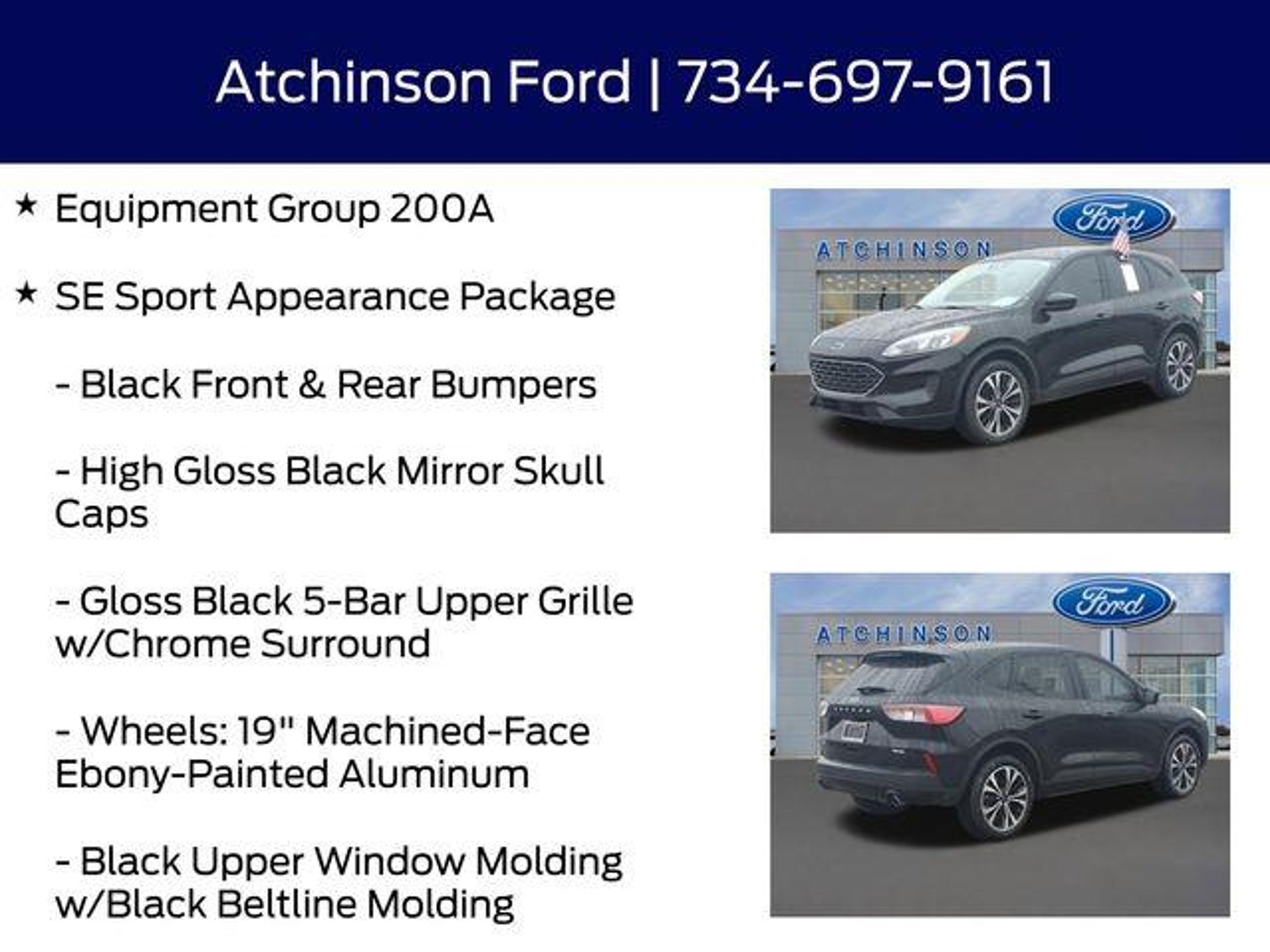 FORD CERTIFIED - ALL WHEEL DRIVE - CONVENIENCE and COLD WEATHER PACKAGES - Discover the perfect balance of style, capability, and convenience with this 2022 Ford Escape SE. This certified pre-owned gem has been meticulously inspected and is ready to elevate your driving experience. Boasting an impressive array of features, this Escape SE is equipped to handle any adventure. Key highlights include: â Factory Gold Certified Pre-owned Vehicle with 7-year or 100,000-mile warranty â Inspected by a Certified Ford Technician â CARFAX Certified - No Accidents â Rear View Back-Up Camera â Back Up Warning Sensors â Blind Spot Technology â All-Wheel Drive â Push Button Start â Microsoft Sync â Myford Touch Screen Technology The SE Sport Appearance Package elevates the Escape's style with 19-inch machined-face ebony-painted aluminum wheels, gloss black accents, and a bold front grille. The Convenience Package adds premium touches like an 8-way power driver's seat, dual-zone automatic climate control, and a power liftgate. And the Cold Weather Package ensures you stay warm and comfortable with heated front seats, a heated steering wheel, and remote start. This Escape is powered by a 1.5L EcoBoost engine paired with an 8-speed automatic transmission, delivering an exceptional balance of performance and efficiency with 26 city/31 highway MPG. As a Ford Gold Certified pre-owned vehicle, this Escape comes with unparalleled peace of mind. The comprehensive 172-point inspection, 12-month/12,000-mile limited warranty, and 84-month/100,000-mile powertrain warranty provide the confidence you need to enjoy the open road. Plus, you'll receive 22,000 FordPass Rewards Points to use toward your first two maintenance visits. Experience the perfect blend of style, capability, and convenience in this 2022 Ford Escape SE. Visit our showroom today and let us demonstrate how this exceptional vehicle can elevate your driving experience.