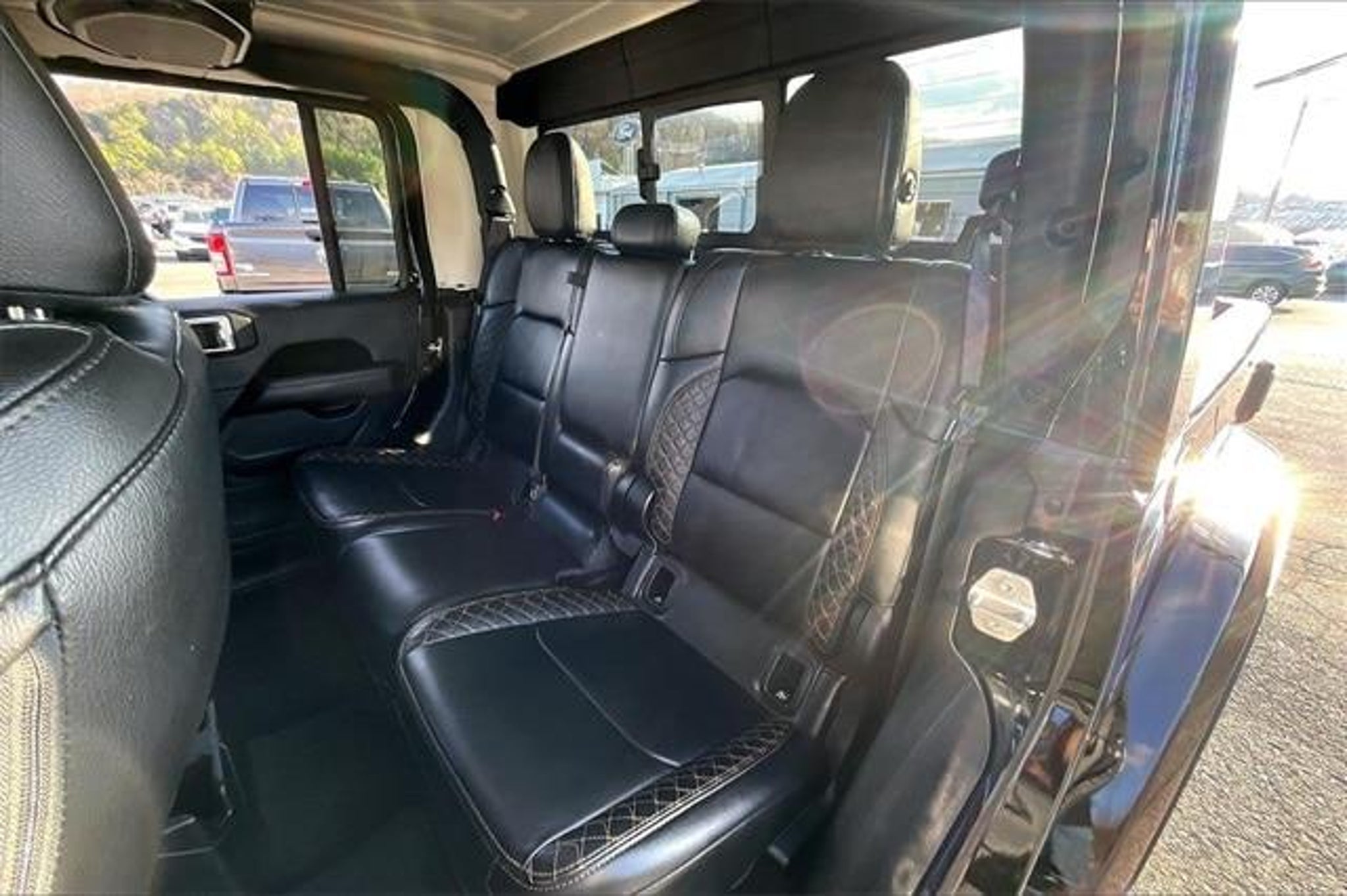 2023 Jeep Gladiator High Altitude Edition Crew Cab Medium Bed 4x4 in Black Clearcoat This 2023 Jeep Gladiator High Altitude Edition delivers a rare blend of open-air Jeep freedom, upscale refinement, and real pickup capability. Finished in Black Clearcoat with a Black leather interior, this Gladiator stands out with a sleek, monochromatic look that elevates the rugged Jeep design into something distinctly premium. Under the hood is the proven 3.6L V6 engine paired with a smooth 8-speed automatic transmission. Part-time four-wheel drive, a brake-actuated limited slip differential, and Jeeps legendary chassis engineering give this Gladiator the confidence to tackle trails, back roads, and rough job sites while remaining composed and comfortable on the highway. The medium bed adds everyday truck practicality without sacrificing maneuverability. Inside, the High Altitude trim transforms the Gladiator into a refined, driver-focused environment. Leather-trimmed bucket seats, driver adjustable lumbar support, a leather-wrapped steering wheel, and multi-zone climate control create a cabin that feels more luxury SUV than traditional pickup. Thoughtful storage, rear seat pass-through access, and rear seatback pockets add everyday usability for passengers and gear alike. Technology is a strong highlight throughout. The infotainment system features Apple CarPlay, Android Auto, Bluetooth connectivity, HD Radio, navigation, smart device integration, and steering wheel audio controls. Dual front LCD displays, a premium amplified sound system, WiFi hotspot capability, and a universal garage door opener bring modern convenience to every drive. A backup camera and trip computer add confidence whether parking downtown or lining up a trailer. Safety and driver assistance features help keep you protected in daily driving. This Gladiator includes blind spot monitoring, rear cross-traffic alert, rear parking aid, stability control, traction control, anti-lock brakes, tire pressure monitoring, child safety locks, and a full airbag system. On the exterior, the High Altitude Edition sets itself apart with aluminum wheels, running boards, body-color accents, automatic headlights, LED lighting, heated power mirrors, privacy glass, and the removable hardtop with rear defrost and sliding rear window. The classic Gladiator profile paired with refined trim details makes this truck equally at home in the city or off the grid. Optional equipment on this Gladiator includes the Quick Order Package 24N High Altitude, Safety Group with