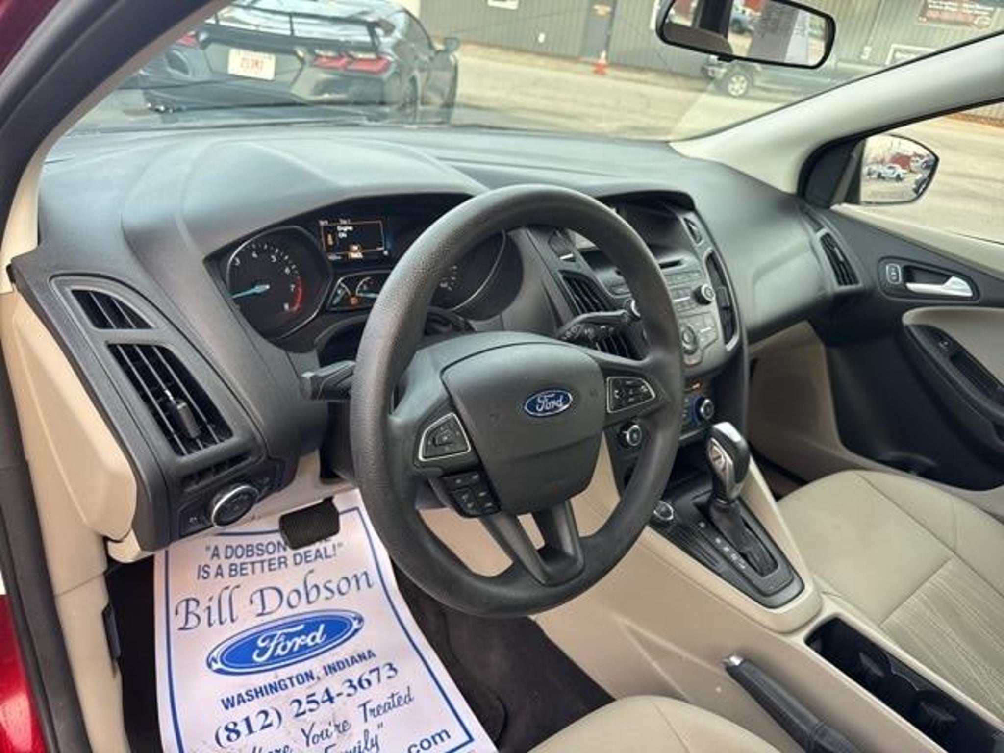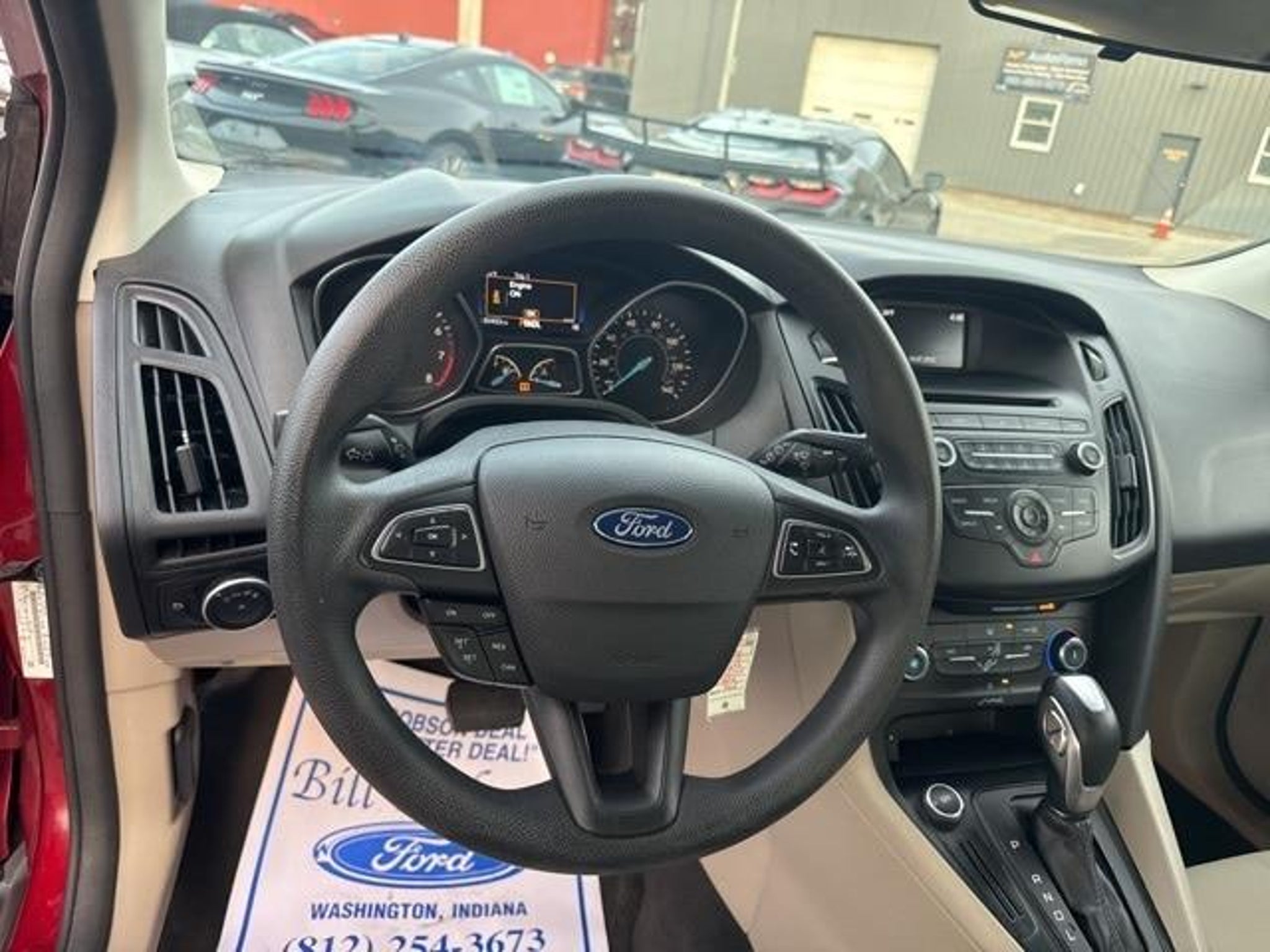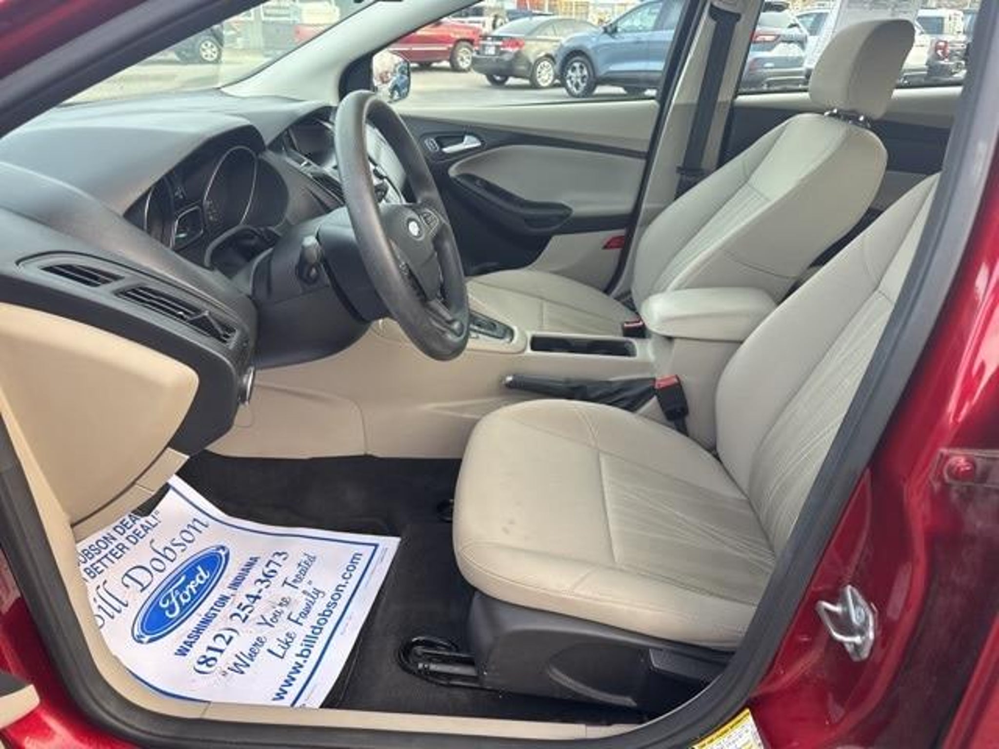 2015 Ruby Red Metallic Ford Focus SE 6-Speed Automatic with Powershift 2.0L I4 DGI Flex Fuel Ti-VCT FWD Odometer is 24156 miles below market average! 27/40 City/Highway MPG Awards: * 2015 IIHS Top Safety Pick * 2015 KBB.com Brand Image Awards At Bill Dobson Ford we believe in MARKET VALUE PRICING all vehicles in our inventory. We use real-time Internet price comparisons to constantly adjust prices to provide ALL BUYERS The BEST VALUE possible. We do not mark them up, to mark them down! We utilize state-of-the-art technology to constantly monitor pricing trends in order to offer our shoppers the best competitive pricing and value. Our entire team is committed to helping you buy a car the way we would want to buy a car! We sell and service all makes and models of Pre-owned / Used Vehicles Used Cars, Used Trucks, Used Sport Utility, 10K under used cars, Ford, Chevrolet/Chevy, Honda, Toyota, Porsche, Land Rover, Jaguar, INFINITI, Audi, Nissan, Mazda, Hyundai, Chrysler, Jeep, Dodge, Ram, SRT, Mitsubishi, Lexus, Kia, Volkswagen, Mini, BMW, Mercedes, Fiat, Volvo, GMC, Cadillac, Lincoln as well as other brands. Proudly serving these areas Indiana, Montgomery, Vincennes, Loogootee, Bloomfield, Petersburg, Odon, Plainville, Elnora, Linton & Wheatland. A Dobson Deal is a Better Deal!!!! Call 812-618-1647.