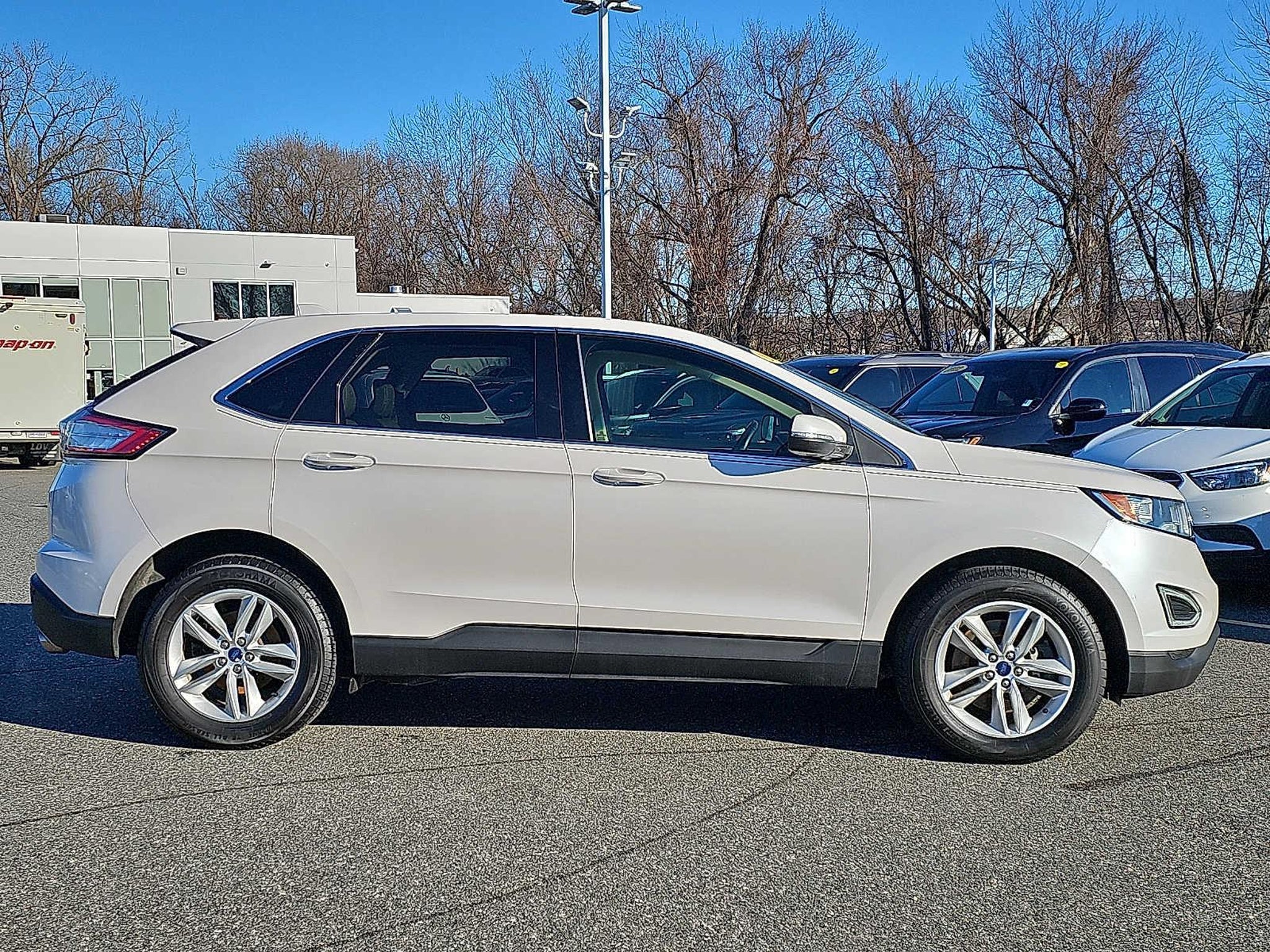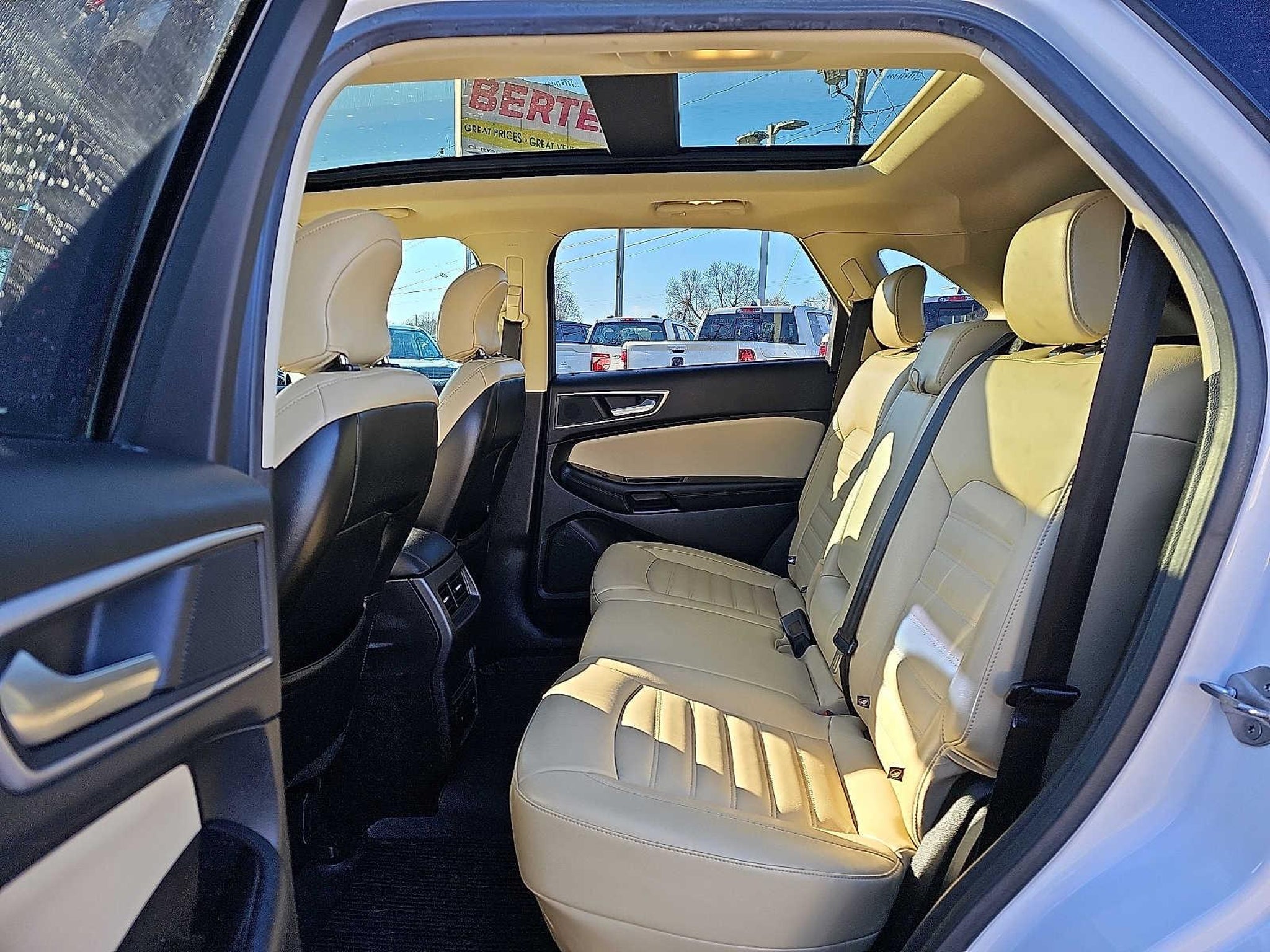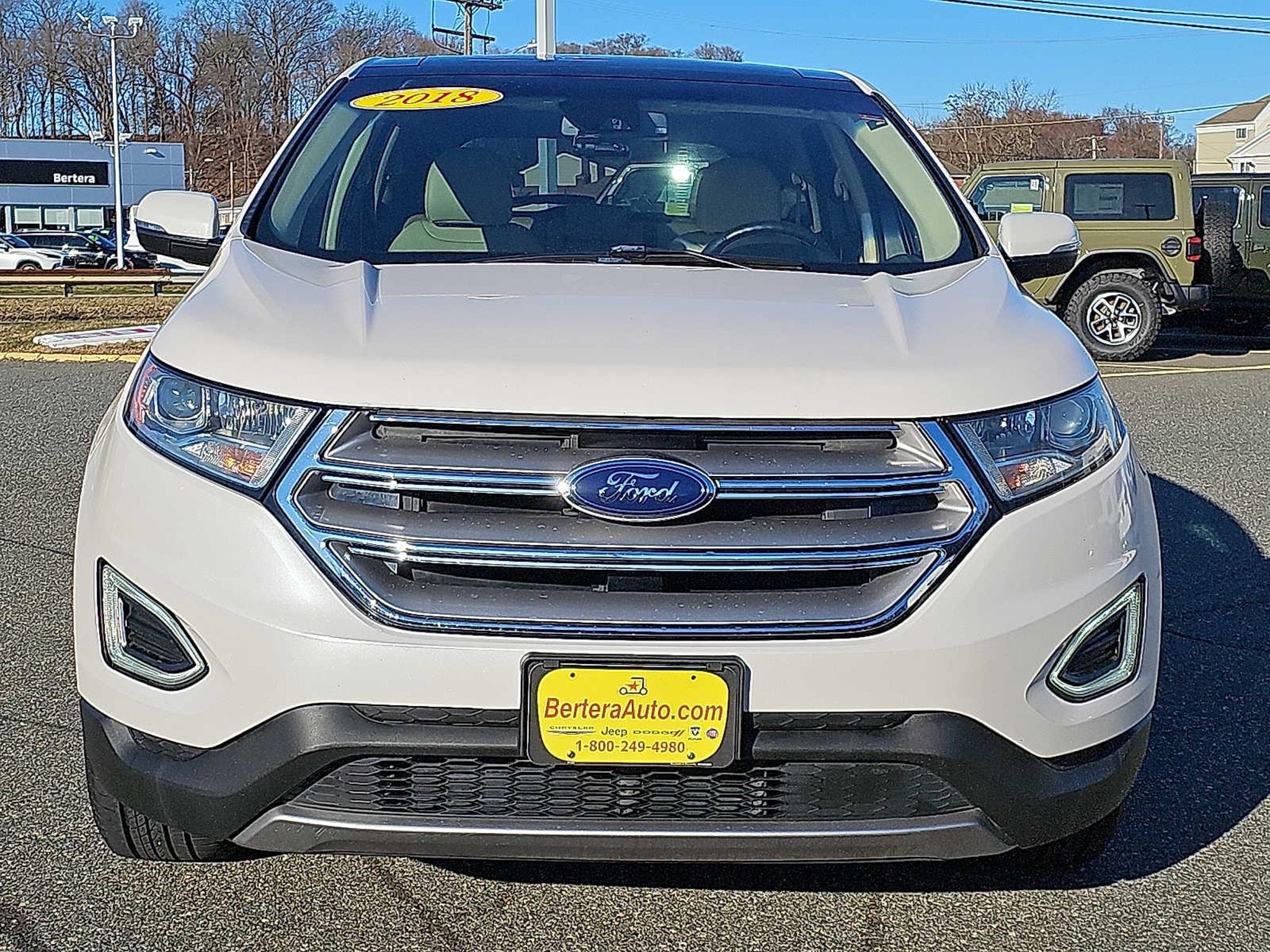 Nav System, Moonroof, Dual Zone A/C, Satellite Radio, Back-Up Camera, All Wheel Drive, Turbo Charged Engine, Aluminum Wheels, ENGINE: TWIN-SCROLL 2.0L ECOBOOST, CONVENIENCE PACKAGE, FORD SAFE & SMART PACKAGE, COLD WEATHER PACKAGE KEY FEATURES INCLUDE All Wheel Drive, Back-Up Camera, Satellite Radio, Aluminum Wheels, Dual Zone A/C Ford SEL with White Platinum Metallic Tri-Coat exterior and Dune interior features a 4 Cylinder Engine with 245 HP at 5500 RPM*. OPTION PACKAGES EQUIPMENT GROUP 201A Premium 9 Speaker Audio System, SYNC 3 Communications & Entertainment System, enhanced voice recognition, 8 LCD capacitive touchscreen in center stack w/swipe capability, AppLink, 911 Assist, Apple CarPlay®, Android Auto® compatibility and 2 smart-charging USB ports, CONVENIENCE PACKAGE Voice-Activated Touchscreen Navigation System, pinch-to-zoom capability, SiriusXM Traffic & Travel Link, a, Services are not available in Alaska or Hawaii, SiriusXM audio and data services each require a subscription sold separately, or as a package, by Sirius XM Radio Inc, If you decide to continue service after your trial, the subscription plan you choose will automatically renew thereafter and you will be charged according to your chosen payment method at then-current rates, Fees and taxes apply, To cancel you must call SiriusXM at |See SiriusXM Customer Agreement for complete terms at |All fees and programming subject to change, Sirius, XM and all related marks and logos are trademarks of Sirius XM Radio, PANORAMIC VISTA ROOF power open/close w/power shade and acoustic-laminate glass, Standard 2nd row LED dome light is replaced w/2 single lights, Switch located in each grab handle pocket, FORD SAFE & SMART PACKAGE Blind Spot Information System (BLIS), cross traffic alert and auto-dimming drivers sideview mirror, Adaptive Cruise Control & Fwd Collision Warning, brake support, Auto-High Beams, Rain-Sensing Wipers, front only, Lane-Keeping System, COLD WEATHER PACKAGE Heated Steering Wheel, Front & Rear Floor Liners, Custom accessory, pre-installed, Windshield Wiper De-Icer, ENGINE: TWIN-SCROLL 2.0L ECOBOOST (STD). EXPERTS CONCLUDE Edmunds.com explains The Edge delivers good stopping response and performance thats above average for the class with 119 feet needed to stop from 60 mph.. AFFORDABLE TO OWN Was $13,974. This Edge is priced $500 below J.D. Power Retail. Actual pricing may vary from time to time. Please see and dealer documentation fee of $889. Vehicle representation on our homepage or on 3rd party does not constitute availability. To be sure you dont miss out on availability, give us a call at and schedule a test drive or visit us at www. berteraauto.com. Vehicle pricing may change without notice. See dealer for trade assist and financing details. We are located at 539 Riverdale St West Springfield MA 01089. We look forward to seeing you soon.