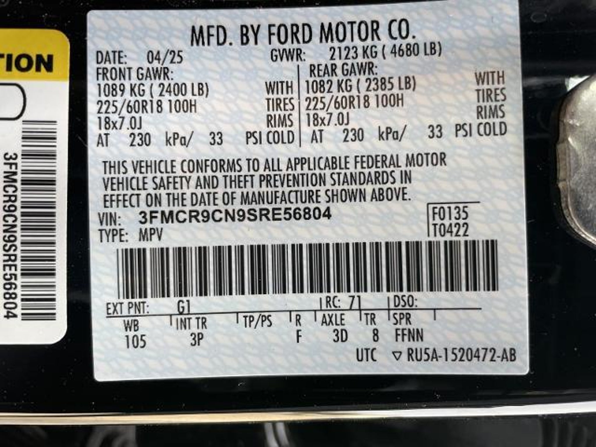 SUMMARY nClean Carfax!**WARRANTY REMAINING: 29 MONTHS OR 23717 MILES****OUTER BANKS TECH PACKAGE** ($1695 ADD TO MSRP) EQUIPMENT GROUP 300A 1.5L 8-SPEED AUTO TRANSMISSION 4WD KEYLESS ENTRY PUSH BUTTON START REMOTE START POWER DRIVER SEAT POWER PASSENGER SEAT 13.2' IN SCREEN DISPLAY SYNCr4 SIRIUSXMr FORDPASST CONNECT LED HEADLAMPS LED TAILLAMPS POWER HEATED MIRRORS LIFTGATE W/ LIFTGLASS SECURILOCKr ANTI-THEFT SYSTEM SOS POST-CRASH ALERT SYSTEMn n EQUIPMENT n Safety and Security The vehicle is equipped with a system that senses and then prepares the vehicle and/or occupants for an impending forward collision. The vehicle constantly monitors the roadway in front of the vehicle and identifies and tracks pedestrians on an interior display. If the system determines a likely impact it will automatically take preventative steps to avoid hitting the pedestrian. With this system the driver's hands must remain on the wheel at all times but can be removed briefly (for a few seconds) otherwise the vehicle will prompt the driver to put their hands back on the wheel. The vehicle is equipped with a camera that displays an image of the area behind the vehicle on an interior display. Technology and Telematics SYNC 4 AppLink/Apple CarPlay/Android Auto smart device wireless mirroring n n PACKAGES nn