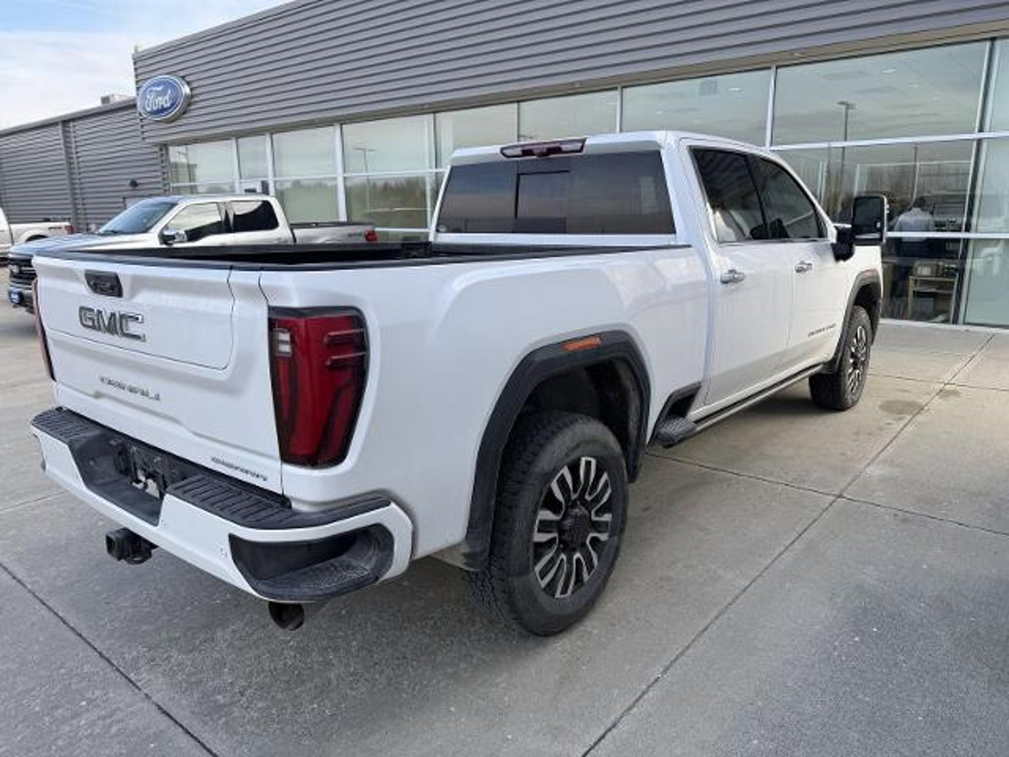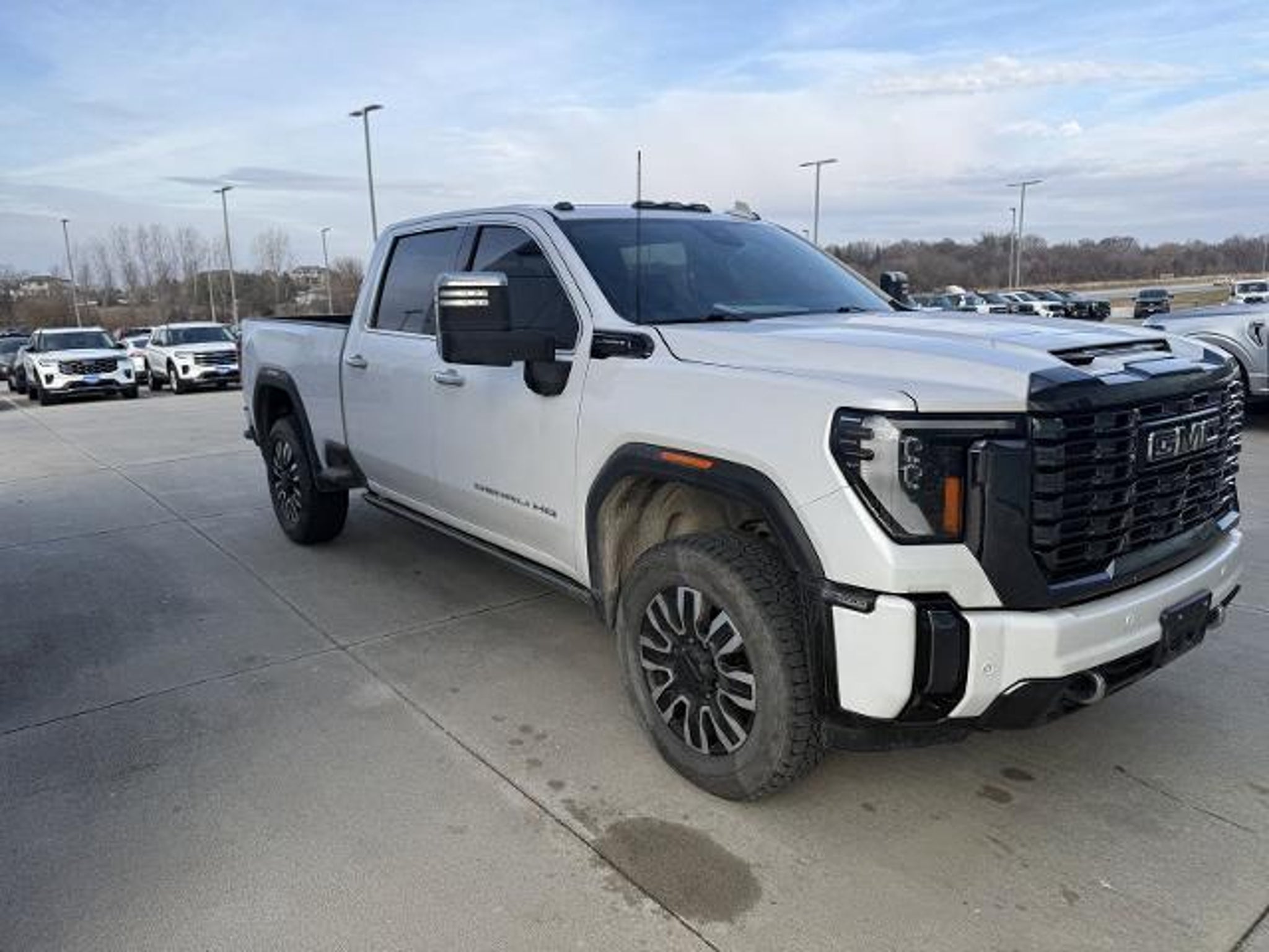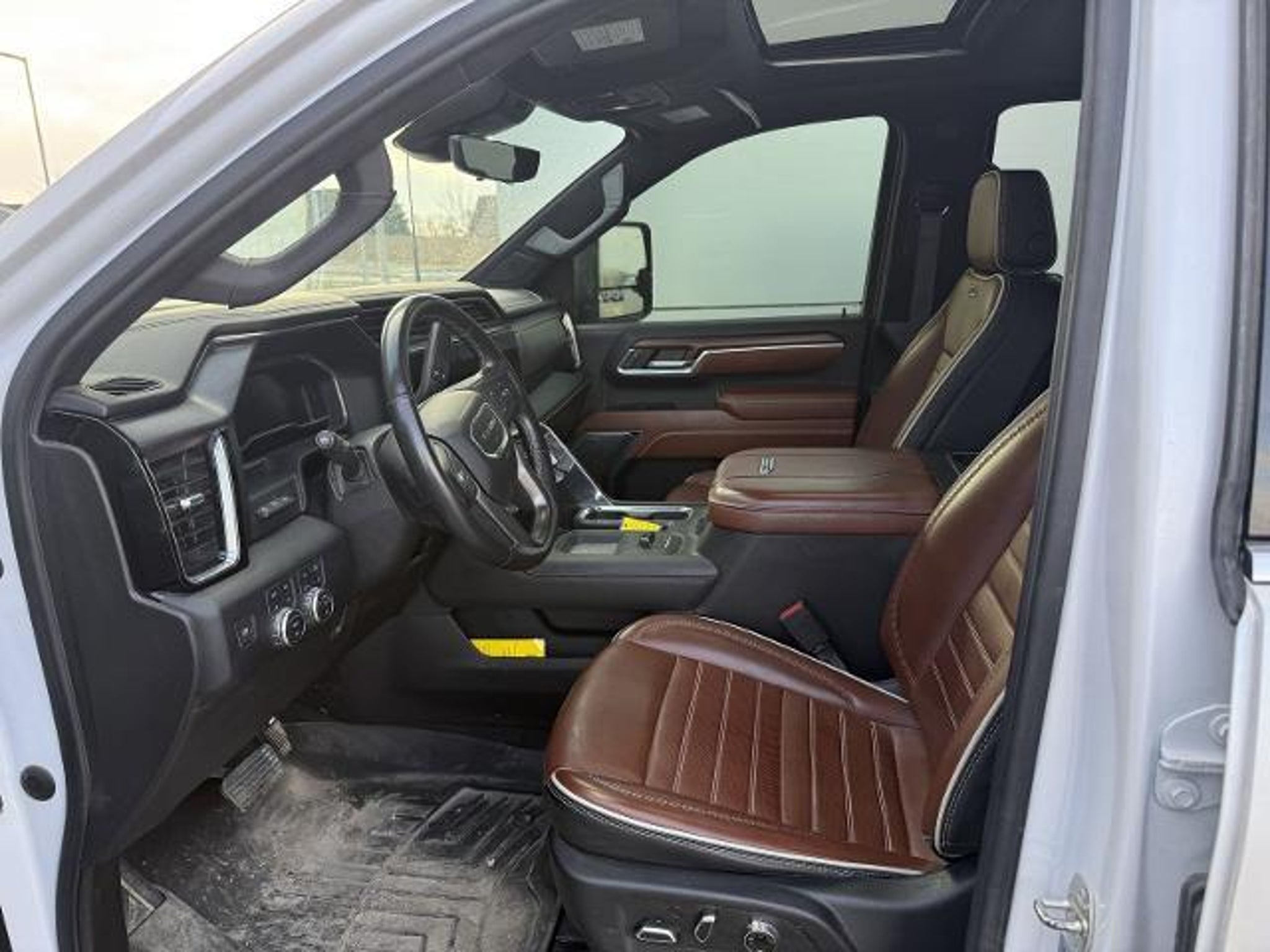 White Frost Tricoat 2024 GMC Sierra 2500HD Denali Ultimate 4WD 10-Speed Automatic 6.6L V8 10-Speed Automatic, 4WD, Alpine Umber Leather, 12 Speakers, 120-Volt Bed Mounted Power Outlet, 120-Volt Instrument Panel Power Outlet, 16-Way Power Driver Seat Adjuster w/Lumbar, 16-Way Power Passenger Seat Adjuster w/Lumbar, 2 Charge-Only Rear USB Ports, 2 Charge/Data USB Ports Inside Center Console, 2 USB Ports, 2-Speed Active Transfer Case, 220-Amp Alternator, 3.42 Axle Ratio, 4-Wheel Disc Brakes, ABS brakes, Air Conditioning, Alloy wheels, AM/FM radio: SiriusXM with 360L, Apple CarPlay/Android Auto, Auto High-beam Headlights, Auto-dimming door mirrors, Auto-dimming Rear-View mirror, Automatic Emergency Braking, Automatic temperature control, Bed View Camera w/2 Trailer Camera Provisions, Block heater, Bose Premium Series 12-Speaker System, Brake assist, Buckle to Drive, Bumpers: body-color, Compass, Deep-Tinted Glass, Delay-off headlights, Driver door bin, Driver Memory, Driver vanity mirror, Dual front impact airbags, Dual front side impact airbags, Dual Heavy-Duty 70 Amp Battery, Electric Rear-Window Defogger, Electronic Stability Control, Emergency communication system: OnStar and GMC connected services capable, Floor-Mounted Center Console, Following Distance Indicator, Forward Collision Alert, Front anti-roll bar, Front Bucket Seats, Front Center Armrest, Front dual zone A/C, Front fog lights, Front License Plate Kit, Front Pedestrian Braking, Front Rain-Sensing Wipers, Front reading lights, Front wheel independent suspension, Full Grain Leather Seat Trim, Fully automatic headlights, Garage door transmitter, Genuine wood dashboard insert, Genuine wood door panel insert, GMC Connected Access Capable, Gooseneck/5th Wheel Prep Package, HD Surround Vision, Heads-Up Display, Heated 2nd Row Outboard Seats, Heated door mirrors, Heated Driver & Front Outboard Passenger Seats, Heated front seats, Heated rear seats, Heated steering wheel, Hill Descent Control, Hitch Guidance w/Hitch View, Illuminated entry, In-Vehicle Trailering System App, Inside Rearview Auto-Dimming Rear Camera Mirror, Integrated Trailer Brake Controller, IntelliBeam Automatic High Beam On/Off, Keyless Open & Start, Lane Departure Warning System, Leather steering wheel, LED Cargo Area Lighting, LED Smoked Amber Roof Marker Lamps, Low tire pressure warning, Manual Tilt-Wheel/Telescoping Steering Column, Memory seat, Multicolor 15 Diagonal Head-Up Display, Occupant sensing airbag, Off-Road Suspension, OnStar & GMC Connected Services Capable, Outside
