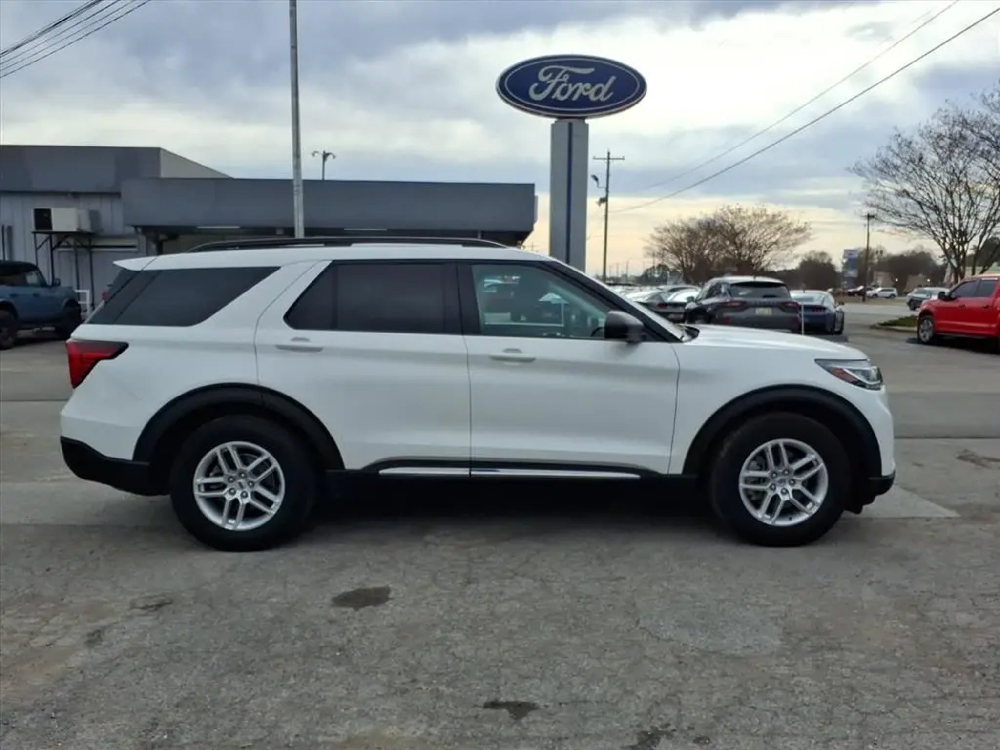 This 2025 Ford Explorer Active 10-Speed Automatic is equipped with Active Comfort Package (Front Fascia, Heated ActiveX Seating Material Captain's Chairs, Heated Steering Wheel, Remote Start System, Second Row HVAC Controls, and Universal Garage Door Opener (UGDO)), Equipment Group 200A Standard Package, 3.58 Non-Limited Slip Rear Axle, 3rd row seats: bench, 4-Wheel Disc Brakes, 6 Speakers, ABS brakes, Air Conditioning, Alloy wheels, AM/FM radio: SiriusXM with 360L, AM/FM Stereo, Apple CarPlay/Android Auto, Auto High-beam Headlights, Automatic temperature control, Brake assist, Bumpers: body-color, Compass, Delay-off headlights, Driver door bin, Driver vanity mirror, Dual front impact airbags, Dual front side impact airbags, Electronic Stability Control, Emergency communication system: 911 Assist, Exterior Parking Camera Rear, Four wheel independent suspension, Front & 2nd Rows Floor Liners w/Carpet Floor Mats, Front anti-roll bar, Front Bucket Seats, Front Center Armrest, Front dual zone A/C, Front reading lights, Fully automatic headlights, Heated door mirrors, Heated front seats, Illuminated entry, Internet access capable: FordPass Connect 5G, Knee airbag, Leather steering wheel, Low tire pressure warning, Navigation System, Occupant sensing airbag, Outside temperature display, Overhead airbag, Overhead console, Panic alarm, Passenger door bin, Passenger vanity mirror, Power door mirrors, Power driver seat, Power Liftgate, Power passenger seat, Power steering, Power windows, Rear air conditioning, Rear anti-roll bar, Rear reading lights, Rear window defroster, Rear window wiper, Remote keyless entry, Security system, Speed control, Speed-sensing steering, Speed-Sensitive Wipers, Split folding rear seat, Spoiler, Steering wheel mounted audio controls, Tachometer, Telescoping steering wheel, Tilt steering wheel, Traction control, Trip computer, Unique Heated Cloth Captain's Chairs, Variably intermittent wipers, and Wheels: 18 Sparkle Silver-Painted Aluminum.