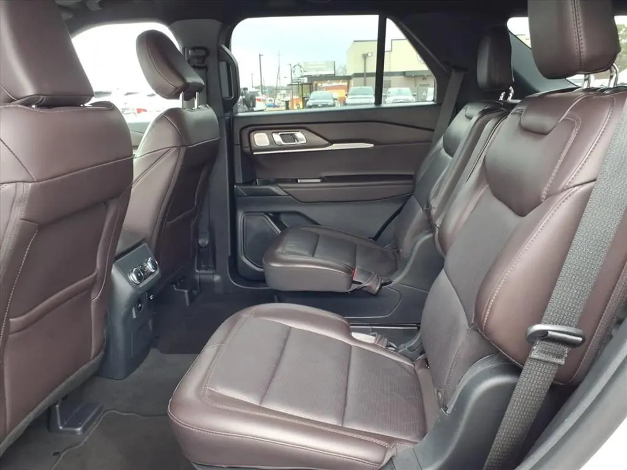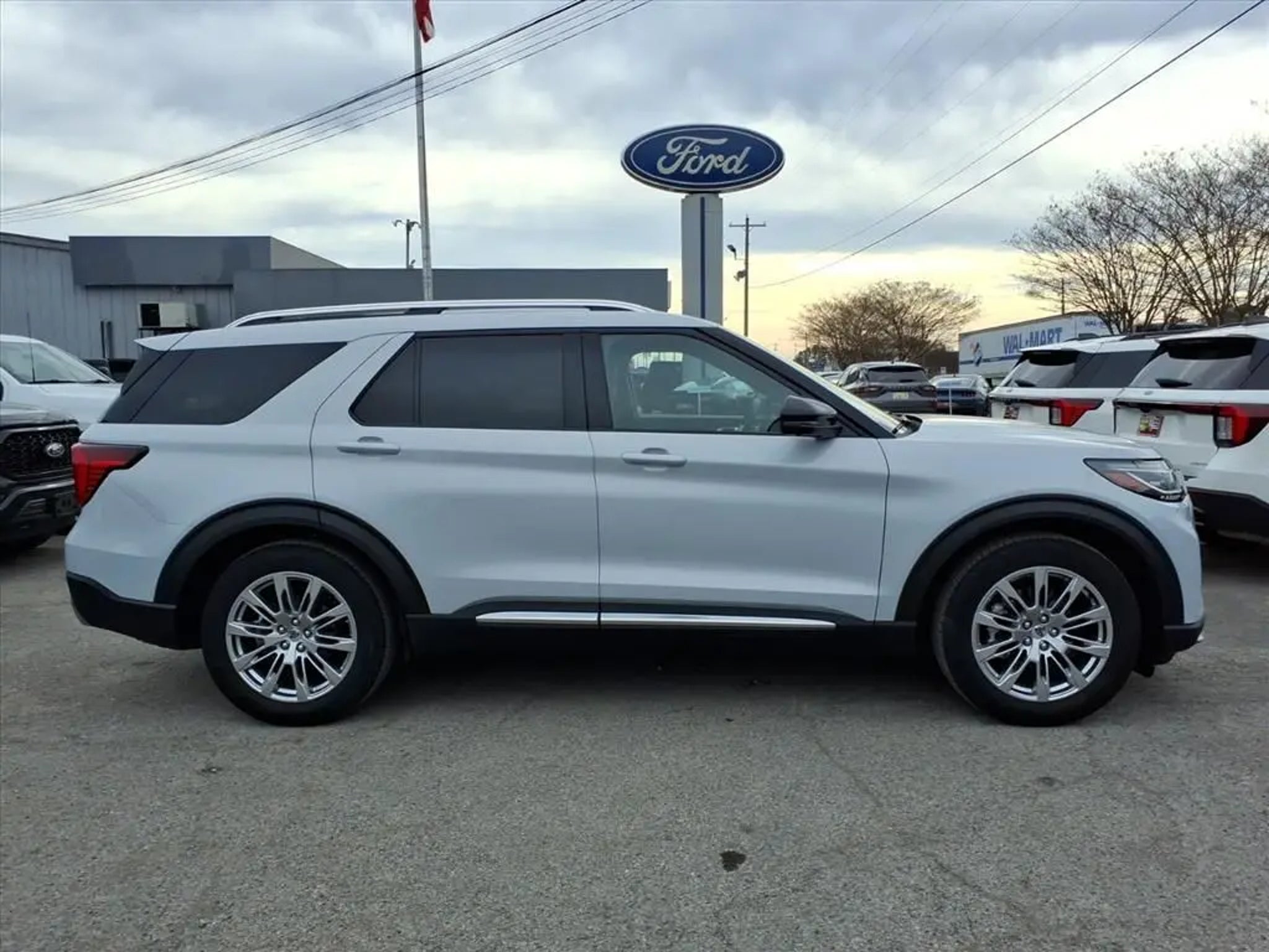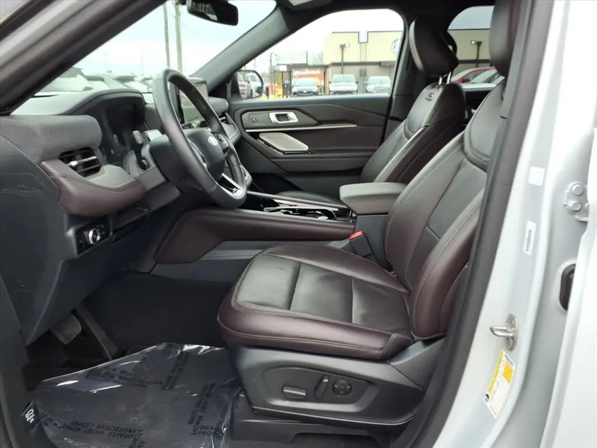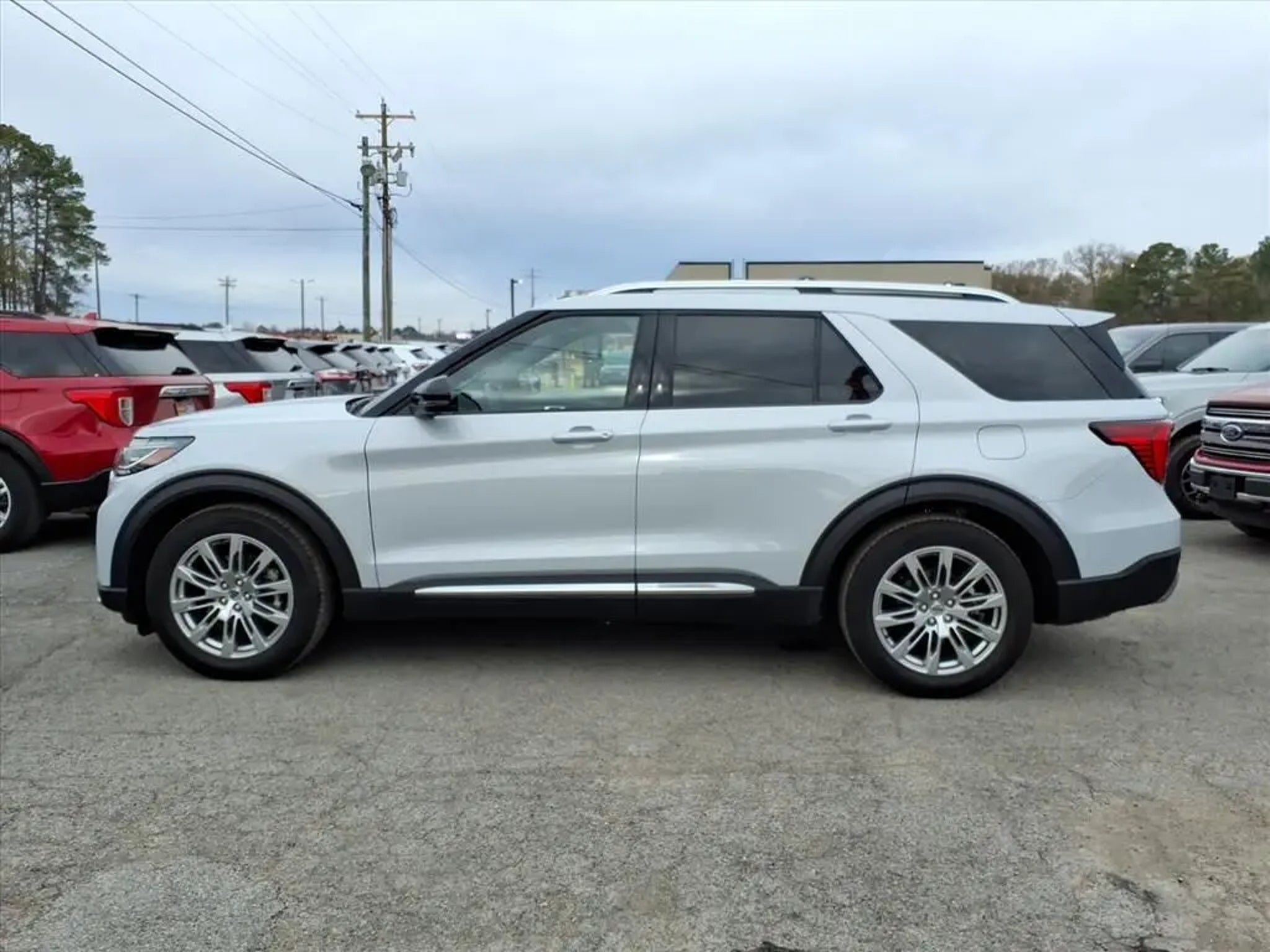 This 2025 Ford Explorer Platinum 10-Speed Automatic is equipped with Equipment Group 600A Standard Package, 14 Speakers, 3.58 Non-Limited Slip Rear Axle, 3rd row seats: bench, 4-Wheel Disc Brakes, ABS brakes, ActiveX Trimmed Sport Captain's Chairs, Air Conditioning, Alloy wheels, AM/FM radio: SiriusXM with 360L, Apple CarPlay/Android Auto, Auto High-beam Headlights, Auto-dimming door mirrors, Auto-dimming Rear-View mirror, Automatic temperature control, Brake assist, Bumpers: body-color, Compass, Delay-off headlights, Driver door bin, Driver vanity mirror, Dual front impact airbags, Dual front side impact airbags, Electronic Stability Control, Emergency communication system: 911 Assist, Exterior Parking Camera Rear, Ford BlueCruise Equipped (1-Year Plan) (DISC), Four wheel independent suspension, Front anti-roll bar, Front Bucket Seats, Front Center Armrest, Front dual zone A/C, Front fog lights, Front reading lights, Fully automatic headlights, Garage door transmitter, Heated door mirrors, Heated front seats, Heated rear seats, Heated steering wheel, Illuminated entry, Internet access capable: FordPass Connect 5G, Knee airbag, Leather steering wheel, Low tire pressure warning, Memory seat, Navigation System, Occupant sensing airbag, Outside temperature display, Overhead airbag, Overhead console, Panic alarm, Passenger door bin, Passenger vanity mirror, Power door mirrors, Power driver seat, Power Liftgate, Power moonroof, Power passenger seat, Power steering, Power windows, Radio data system, Radio: B&O Sound System by Bang & Olufsen w/HD, Rain sensing wipers, Rear air conditioning, Rear anti-roll bar, Rear reading lights, Rear window defroster, Rear window wiper, Remote keyless entry, Security system, Speed control, Speed-sensing steering, Speed-Sensitive Wipers, Split folding rear seat, Spoiler, Steering wheel mounted audio controls, Tachometer, Telescoping steering wheel, Tilt steering wheel, Traction control, Trip computer, Turn signal indicator mirrors, Variably intermittent wipers, Ventilated front seats, and Wheels: 20 Luster Nickel-Painted Aluminum.