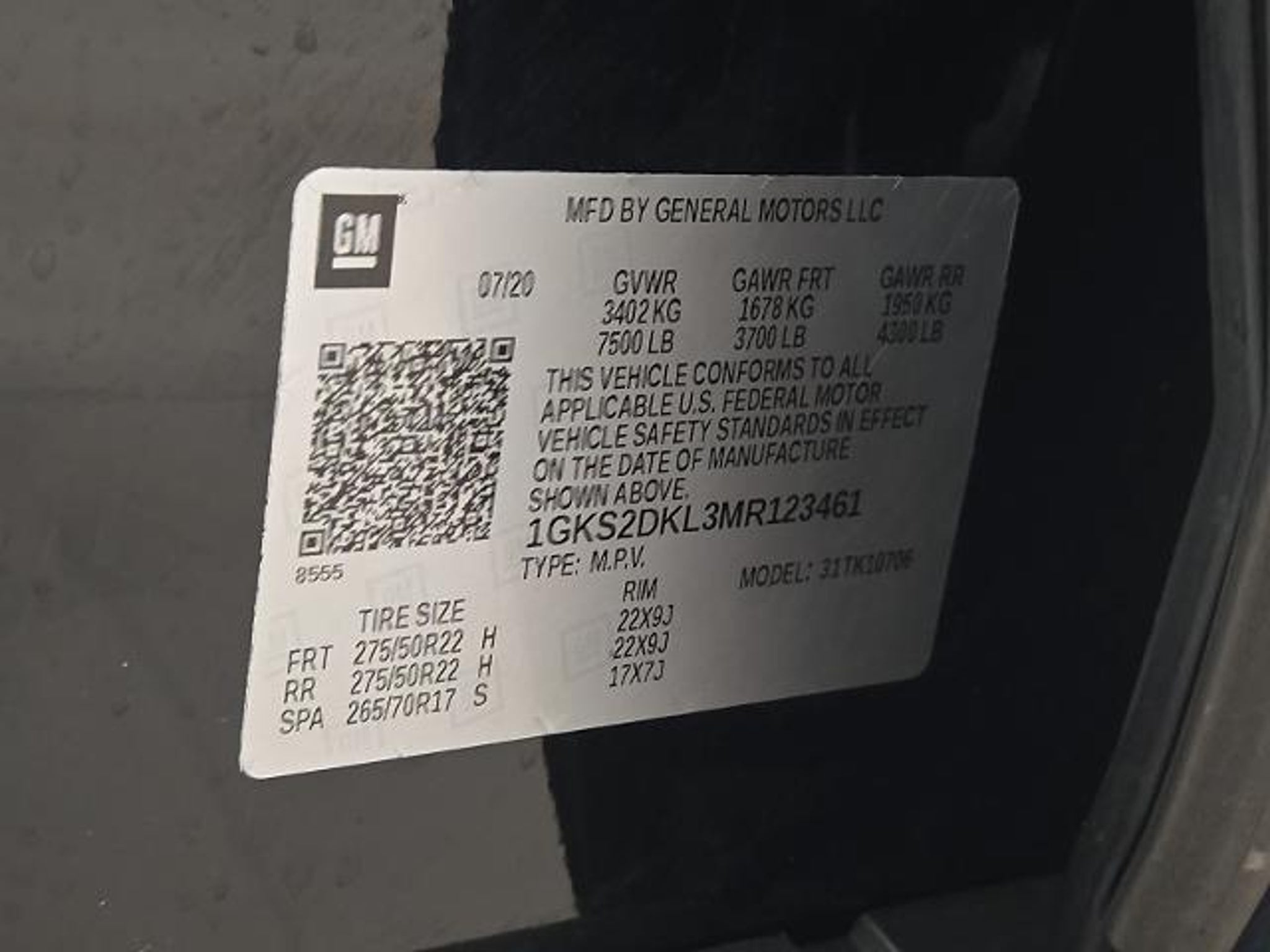 1GKS2DKL3MR123461 |