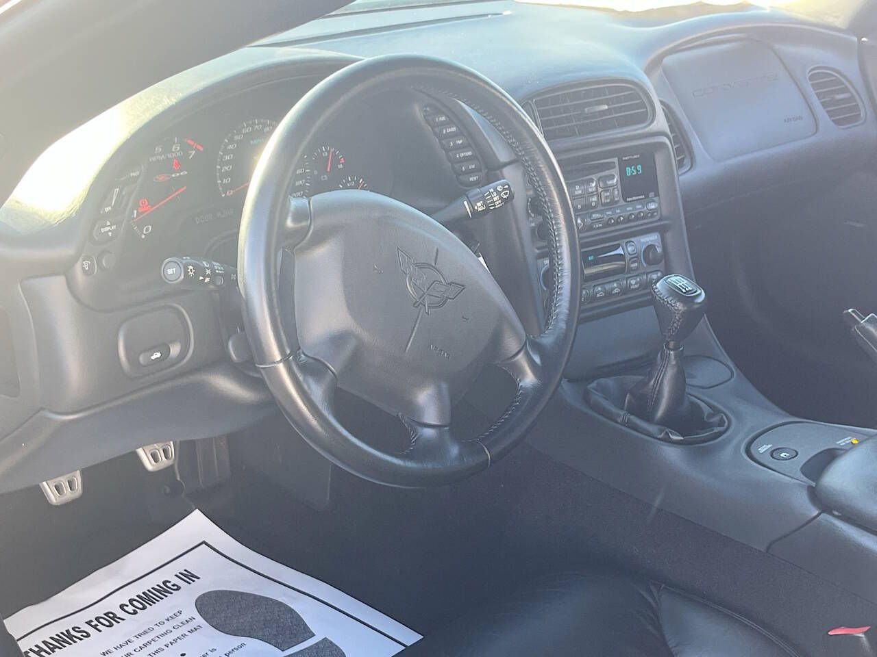Air conditioning, dual-zone, automatic-inc: individual climate settings for driver & right front passenger, automatic climate control & outside temperature display,Antenna, fixed-mast,Console, floor, lockable-inc: integral cupholder, ashtray, coin holder, auxiliary power outlet & cassette/CD storage,Cruise control, electronic w/set & resume speed-inc: telltale in instrument panel cluster,Defogger, rear-window, electric-inc: front & side window outlets, driver & front passenger,Floormats, carpeted,Head-Up Display-inc: digital readouts for vehicle speed, engine rpm, a performance up-shift guide for the 6-speed manual transmission, & readings from key gauges including water temperature, oil pressure & fuel,Instrumentation, analog, electronic-inc: Driver Information Center,Keyless entry, remote-inc: panic button & trunk/hatch release,Lighting, interior, courtesy, cargo console & glovebox,Mirror, inside rearview, manual day/night-inc: dual reading lights,Seat adjuster, power, driver 6-way,Seats, front leather seating surfaces bucket, Z06-specific-inc: dual density seatback, back angle adjustment & 6-way power driver seat,Sound system feature, Bose speaker & amplifier system,Sound system, ETR AM/FM stereo w/CD player-inc: seek-&-scan, digital clock, auto-tone control, speed-compensated volume & TheftLock,Steering column, Tilt-Wheel-inc: (NK4) Steering wheel, leather-wrapped rim,Storage-inc: lockable glovebox, center console & 3 rear compartments,Theft-deterrent alarm system,Theft-deterrent system, PASS-Key II,Tire sealant & inflator kit,Trunk, rear-inc: remote release,Visors, illuminated vanity mirrors,Windows, power-inc: driver & passenger express-down,Daytime running lamps,Fascia, front grille inserts,Frame, uniframe-inc: corrosion-resistant coating,Glass, Solar-Ray light tinted,Headlamps, halogen, power-operated retractable,Induction system, outside air,Mirrors, outside rearview, heated, body-color,Paint, basecoat/clearcoat,Rocker duct, rear, functional rear brake cooling,Roof, fixed,Wipers, intermittent, front,18.0 gallon fuel tank,Active handling, improves traction & enhances vehicle stability,Axle, 3.42 ratio, limited slip,Brakes, 4-wheel antilock, 4-wheel disc,Engine access, rear opening hood-inc: underhood lamp,5.7L LS6 V8 SFI (405 HP [302.1 kW] @ 6000 rpm, 400 lb.-ft. [540.0 N-m] @ 4800 rpm),Exhaust outlets, chrome-plated tips,Exhaust, titanium,Rear wheel drive,Steering, cooler,Suspension, 4-wheel independent-inc: transverse fiberglass leaf springs,Tires, front P265/40ZR17, non-EMT, P295/35ZR18,Traction control, all-speed,6-speed manual,Wheels, 5-spoke, Z06-specific aluminum 17 x 9.5 (43.2 cm x 24.1 cm), front & 18 x 10.5 (45.7 cm x 26.7 cm),Z06 Performance Handling Package-inc: stiffer springs, larger stabilizer bar & shock valving,4-Wheel Disc Brakes,A/C,ABS,Adjustable Steering Wheel,AM/FM Stereo,CD Player,Climate Control,Cruise Control,Daytime Running Lights,Driver Air Bag,Driver Illuminated Vanity Mirror,Driver Vanity Mirror,Floor Mats,Front Reading Lamps,Gasoline Fuel,Heads-Up Display,Heated Mirrors,Immobilizer,Intermittent Wipers,Keyless Entry,Leather Steering Wheel,Locking/Limited Slip Differential,Multi-Zone A/C,Passenger Air Bag,Passenger Air Bag On/Off Switch,Passenger Illuminated Visor Mirror,Passenger Vanity Mirror,Power Door Locks,Power Mirror(s),Power Outlet,Power Windows,Premium Sound System,Rear Defrost,Rear Wheel Drive,Remote Trunk Release,Security System,Stability Control,Tires - Front Performance,Tires - Rear Performance,Traction Control, Z06-specific aluminum 17 x 9.5 (43.2 cm x 24.1 cm), front & 18 x 10.5 (45.7 cm x 26.7 cm)