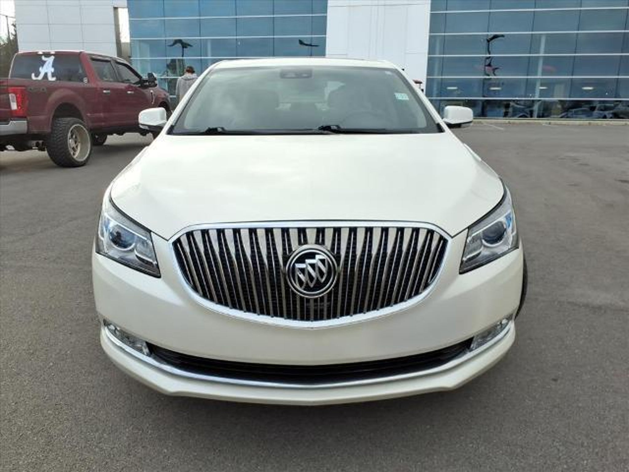 We'll trade for anything that don't eat!LOCAL TRADE!!New Price! White Diamond Tricoat 2014 Buick LaCrosse Premium II Group FWD 6-Speed Automatic Electronic with Overdrive 3.6L V6 E85 Flex Fuel SIDI DOHC VVT **LOCAL TRADE**, 11 Speakers, 4-Way Power Driver Lumbar Seat Adjuster, 4-Wheel Disc Brakes, 8-Way Power Driver Seat Adjuster, 8-Way Power Front Passenger Seat Adjuster, ABS brakes, Adaptive suspension, Air Conditioning, Alloy wheels, AM/FM radio: SiriusXM, Anti-whiplash front head restraints, Articulating Headlamps, Auto-dimming door mirrors, Auto-dimming Rear-View mirror, Automatic temperature control, Bodyside moldings, Bose Centerpoint Premium 11-Speaker Surround Sound, Brake assist, Bumpers: body-color, CD player, Compass, Driver Confidence Package # 1, Driver door bin, Driver vanity mirror, Dual front impact airbags, Dual front side impact airbags, Electronic Stability Control, Exterior Parking Camera Rear, Forward Collision Alert, Four wheel independent suspension, Front anti-roll bar, Front Bucket Seats, Front Center Armrest w/Storage, Front dual zone A/C, Front Halogen Fog Lamps, Front License Plate Bracket, Front reading lights, Garage door transmitter, Head-Up Display, Heated & Ventilated Front Bucket Seats, Heated door mirrors, Heated front seats, Heated steering wheel, Illuminated entry, Lane Departure Warning System, Low tire pressure warning, Memory seat, Occupant sensing airbag, Outside temperature display, Overhead airbag, Oversized Power Sunroof, Passenger door bin, Passenger vanity mirror, Perforated Leather-Appointed Seat Trim, Power door mirrors, Power driver seat, Power passenger seat, Power steering, Power windows, Premium 2 1SR, Premium audio system: IntelliLink, Radio data system, Radio: Buick IntelliLink AM/FM Stereo w/Navigation, Rear anti-roll bar, Rear Cross-Traffic Alert, Rear reading lights, Rear seat center armrest, Rear side impact airbag, Rear window defroster, Remote keyless entry, Side Blind Zone Alert w/Lane Change Alert, SIRIUSXM Satellite Radio, Speed control, Split folding rear seat, Steering wheel mounted audio controls, Tachometer, Telescoping steering wheel, Tilt steering wheel, Traction control, Trip computer, Turn signal indicator mirrors, Variably intermittent wipers, Ventilated front seats, Voltmeter, Wheels: 20 Machine-Faced Silver Painted Aluminum, Xenon High Intensity Discharge Projector Headlamps.Recent Arrival! Odometer is 27839 miles below market average! 18/28 City/Highway MPG<