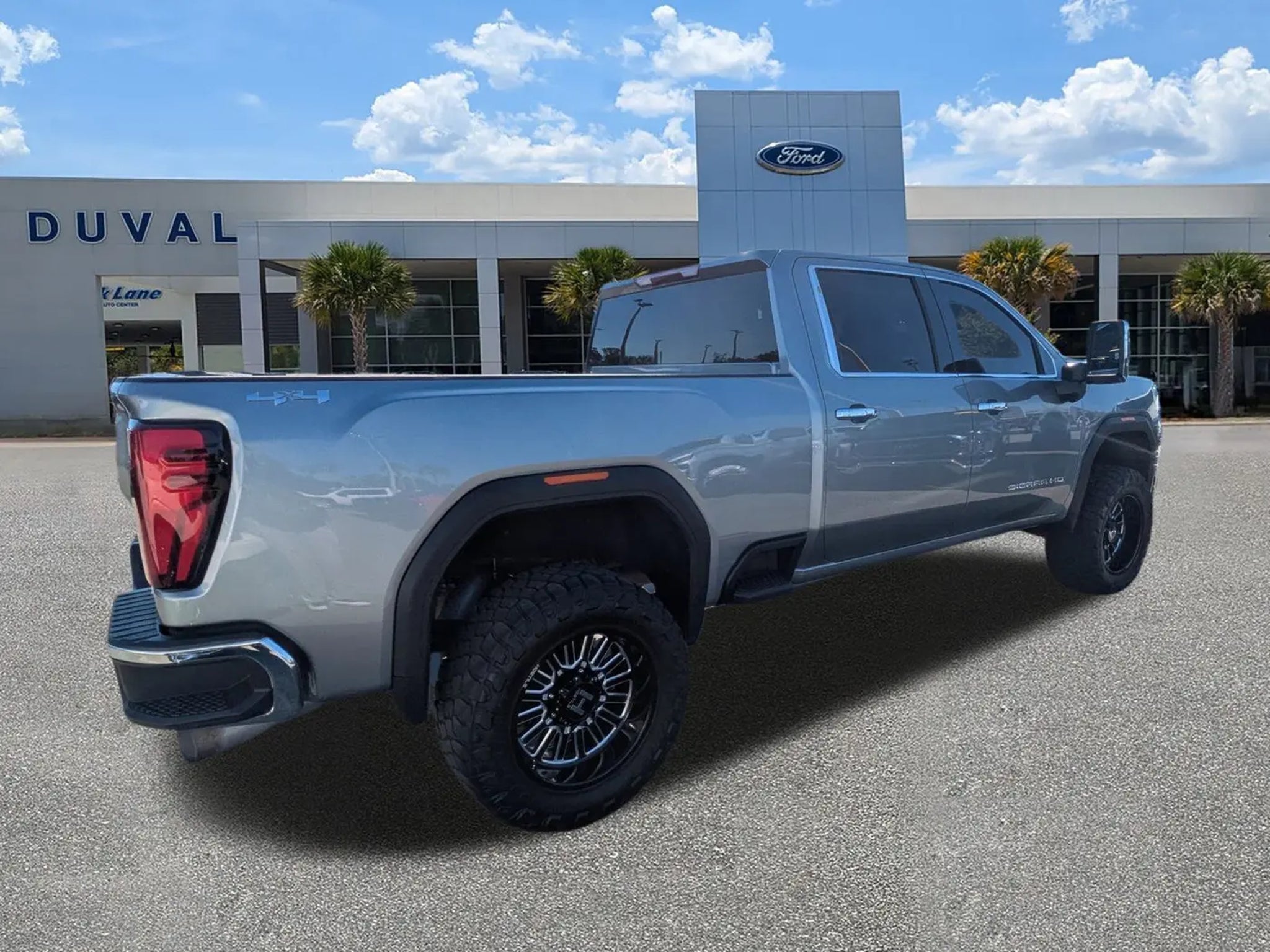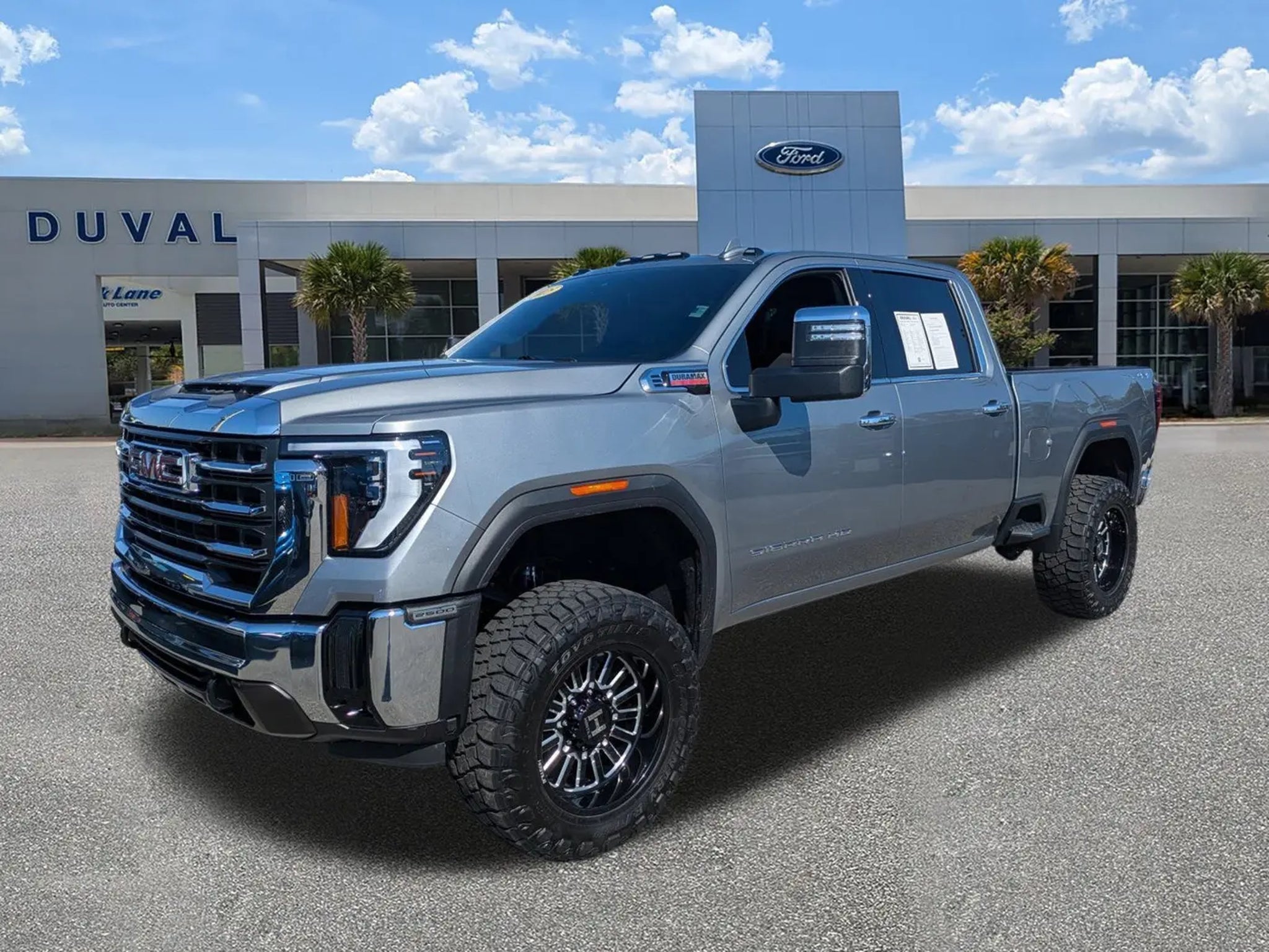 2025 GMC Sierra 2500HD SLT Luxury, Power, and Precision in Sterling Metallic Lifted with Fuel Wheels and riding on Toyo 35s for ultimate style and capability. Get ready to conquer any job in comfort and style with the 2025 GMC Sierra 2500HD SLT. Finished in sleek Sterling Metallic, this heavy-duty pickup combines premium craftsmanship with serious capability perfect for work, play, and everything in between. Highlighted Features & Packages Preferred Equipment Group 4SA: 120V Power Outlets (Cab & Bed Mounted) Heated Driver & Front Passenger Seats LED Cargo Area Lighting Keyless Open & Push-Button Start Rear Wheelhouse Liners Remote Vehicle Starter System Wireless Phone Projection (Apple CarPlay & Android Auto) Chrome Surround Grille w/Chrome Inserts Rain-Sensing Wipers & Electric Rear Defogger Theft Deterrent System & SiriusXM 360L SLT Convenience Package: Bose Premium 7-Speaker Audio System Front Bucket Seats w/Center Console Ventilated Front Seats Heated Steering Wheel Wireless Charging Pad LED Roof Marker Lamps Safety & Technology Highlights: Automatic Emergency Braking Forward Collision Alert Lane Departure Warning Front Pedestrian Braking Hitch Guidance w/Hitch View In-Vehicle Trailering App Performance & Capability: 2-Speed Active Transfer Case Exhaust Brake & Engine Block Heater Heavy-Duty Suspension 20 Bright Face Aluminum Wheels 220-Amp Alternator 10-Way Power Driver & Passenger Seats with Lumbar Support Additional Highlights: Accident-Free, One-Owner Vehicle Odometer 1,578 Miles Below Market Average Bluetooth Hands-Free & Back-Up Camera Leather-Appointed Seating Commission-Free Salespeople & First Oil Change Free Buy With Confidence The Duval Ford Real Deal This Sierra comes with our Real Deal No Bills for the Basics Warranty, covering tire, battery, brake, and light bulb replacement/repair for 3 months. You'll also receive our 90-Day / 3,000-Mile Pre-Owned Protection, including A/C coverage, plus our 5-Day / 300-Mile Return Policy, so you can buy pre-owned with confidence. Don't wait to experience the strength and sophistication of the GMC Sierra 2500HD SLT. Call Duval Ford today at or visit to schedule your test drive and take home professional-grade power today! All prices plus tax, tag, title, and a $398 electronic filing fee. A dealer pre-delivery service fee of $1,199 represents costs and profit for cleaning, inspecting, and preparing documents related to the sale. Prices and availability subject to change without notice. See dealer for complete details.