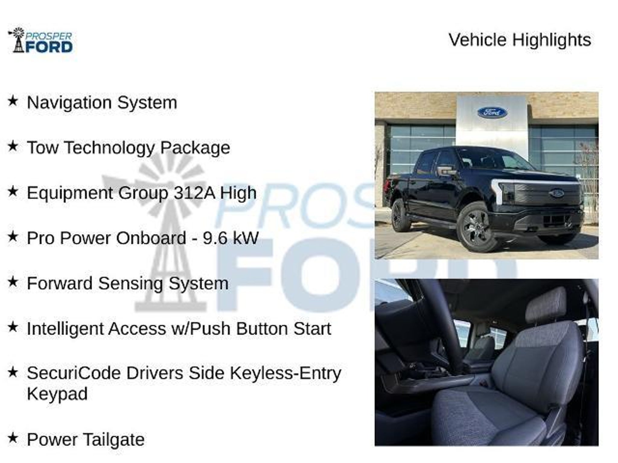 Experience the Electrifying Power of the 2023 Ford F-150 Lightning XLT Introducing the 2023 Ford F-150 Lightning XLT, a remarkable all-electric pickup that combines uncompromising capability with cutting-edge technology. This stunning black beauty boasts an impressive range of advanced features that are sure to captivate any discerning driver. Key highlights include: ? Hard Folding Tonneau Pickup Box Cover ? Tough Bed Spray-In Bedliner ? Mobile Power Cord (120/240V) ? Tray Style Floor Liner (47W) ? Equipment Group 312A High ? Tow Technology Package ? Navigation System ? Forward Sensing System ? Intelligent Access with Push Button Start ? Pro Power Onboard - 9.6 kW ? SecuriCode Drivers Side Keyless-Entry Keypad ? Power Tailgate ? Body-Color Door & Tailgate Handles ? LED Box Lighting with Zone Lighting ? Tailgate Step with Tailgate Work Surface ? Heated Steering Wheel ? 10-Way Power Driver & Passenger Seats ? Pro Trailer Backup Assist ? Pro Trailer Hitch Assist ? Trailer Brake Controller ? Wheels: 20 Alloy Dark Carbonized Gray ? Rain-Sensing Wipers Beneath the sleek exterior lies the heart of this remarkable vehicle ? a powerful electric motor that delivers an exceptional 76 MPGe in the city and 61 MPGe on the highway. With instant torque and smooth, responsive acceleration, the F-150 Lightning XLT provides an unparalleled driving experience that will leave you eager to explore the open road. But the true beauty of this truck lies in its uncompromising capability. With the available Tow Technology Package, you can tow with confidence, thanks to features like Pro Trailer Backup Assist and Pro Trailer Hitch Assist. And with the Pro Power Onboard system, you can power your tools, devices, and even your home during a power outage, making this the ultimate work-ready companion. Whether you're tackling tough jobs or seeking the ultimate in comfort and convenience, the 2023 Ford F-150 Lightning XLT is the perfect choice. Experience the future of transportation today and discover the true power of electrification. Visit our showroom to take this remarkable vehicle for a test drive and see for yourself why the F-150 Lightning is the ultimate electric pickup.