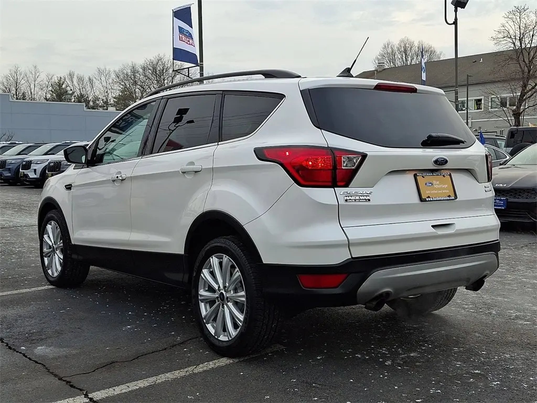 This 2019 Ford Escape SEL 4WD offers a smart blend of versatility, comfort, and safety, making it the ideal choice for any driver. Powered by an efficient 1.5L EcoBoost engine paired with a 6-speed SelectShift automatic transmission and Intelligent 4WD, this SUV is ready for various driving conditions. The exterior features a distinctive White Platinum Metallic Tri-Coat paint and attractive 18-inch Sparkle Silver-Painted Aluminum Wheels, complemented by practical amenities like LED Signature Lighting, a power liftgate, and heated exterior mirrors. The inviting interior is trimmed in Charcoal Black ActiveX Seating Material and features a 10-way power driver's seat, dual-zone automatic climate control, and a SYNC 3 infotainment system with AppLink for seamless smartphone integration. For added convenience, the vehicle is equipped with a Reverse Sensing System, a rearview camera, and a remote start system. Most importantly, this Escape includes the Ford Safe and Smart Package, which delivers crucial driver assistance features like BLIS (Blind Spot Information System) and Lane-Keeping System to boost your confidence on every journey.. CARFAX One-Owner. Clean CARFAX. Priced below KBB Fair Purchase Price! Certified. 22/28 City/Highway MPG Odometer is 18913 miles below market average!