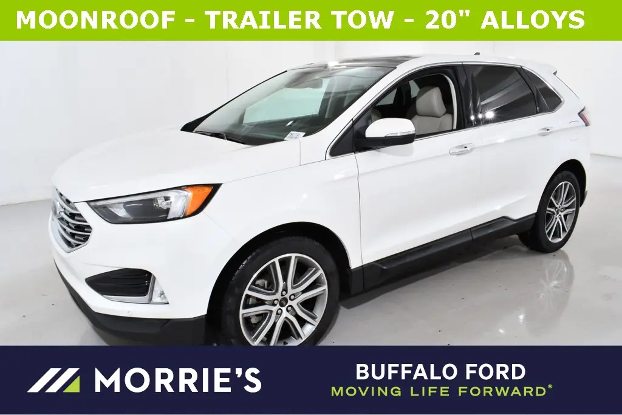 2023 FORD EDGE TITANIUM - 2.0L ECOBOOST ENGINE - 8-SPEED AUTO TRANSMISSION - ALL-WHEEL DRIVE KEY FEATURES: PERFORMANCE: TWIN-SCROLL 2.0L ECOBOOST, 8-SPEED AUTO TRANSMISSION EXTERIOR: STAR WHITE, 245/50R20 A/S BSW TIRES, 20 BRT MCH ALM WHL W/ PTD PKT, PANORAMIC VISTA ROOF INTERIOR: CERAMIC ACTIVEX TRIMMED SEATS, HEATED 10-WAY POWER DRIVER W/ MEMORY & 6-WAY POWER PASSENGER TECHNOLOGY: SYNC 4A W/ 12 SCREEN, B&O SOUND SYSTEM 12 SPKR EXTRAS: CLASS II TRAILER TOW PACKAGE, CARGO ACCESSORY PACKAGE EQUIPMENT GROUP 300A - STAR WHITE - 245/50R20 A/S BSW TIRES - CARGO ACCESSORY PACKAGE (CARGO MAT, REAR BUMPER PROTECTOR, RETRACTABLE CARGO AREA COVER) - TITANIUM SUN & STYLE - DETROIT - FLR LINERS FRT/RR W/O CARPET - 50 STATE EMISSIONS - PANORAMIC VISTA ROOF - MINI SPARE WHL/TIRE - CLASS II TRAILER TOW PACKAGE - 20 BRT MCH ALM WHL W/ PTD PKT STANDARD EQUIPMENT: EXTERIOR: - BELTLINE MOLDING - BRIGHT - EASY FUEL CAPLESS FILLER - EXHAUST TIPS - STAINLESS STEEL - LED FOG LAMPS - CHROME GRILLE - AUTO HIGH BEAM HEADLAMPS - WIPER ACTIVATED HEADLAMPS - LED HEADLAMPS W/ DARK BEZEL - HANDS-FREE LIFTGATE - HEATED/POWER GLASS MIRRORS W/ LED SIG & APPROACH LAMP & MEMORY - PRIVACY GLASS - REAR DOORS - RAIN-SENSING WIPERS INTERIOR: - 110V/150W AC POWER OUTLET - 1-TOUCH UP/DOWN DRIVER/PASSENGER WINDOWS - 60/40 EASYFOLD REAR BENCH - AMBIENT LIGHTING - AUTO-DIM REARVIEW MIRROR - DUAL ILLUMINATED VISOR VANITY MIRRORS - DUAL-ZONE ELECTRONIC AUTO CLIMATE CONTROL - HEATED LEATHER WRAPPED STEERING WHEEL W/ CRUISE & AUDIO CONTROLS - HEATED 10-WAY POWER DRIVER W/ MEMORY & 6-WAY POWER PASSENGER - POWERPOINTS - 12V - ROTARY GEAR SHIFT DIAL - USB A AND C FUNCTIONAL: - B&O SOUND SYSTEM 12 SPKR - FORD CO-PILOT360 - FORDPASS CONNECT 4G WI-FI HOTSPOT TELEMATICS MODEM - FORWARD SENSING SYSTEM - INTELLIGENT ACCESS W/ PUSH START - REAR PARKING SENSORS - REAR VIEW CAMERA - REMOTE START SYSTEM - SIRIUSXM W/360L (N/A AK&HI) - SYNC 4A W/ EVR & 12 SCREEN - UNIVERSAL GARAGE DOOR OPENER - WIRELESS CHARGING PAD SAFETY/SECURITY: - ADVANCETRAC WITH RSC - DRIVER/PASSENGER KNEE AIRBAG - DUAL STAGE FRONT AIRBAGS - FRONT SEAT MOUNTED SIDE IMPACT AIRBAGS - SAFETY CANOPY AIRBAGS - INDIVIDUAL TIRE PRESSURE MONITORING - LATCH CHILD SAFETY SYSTEM - PERIMETER ALARM - PERSONAL SAFETY SYSTEM - SOS POST-CRASH ALERT SYSTEM