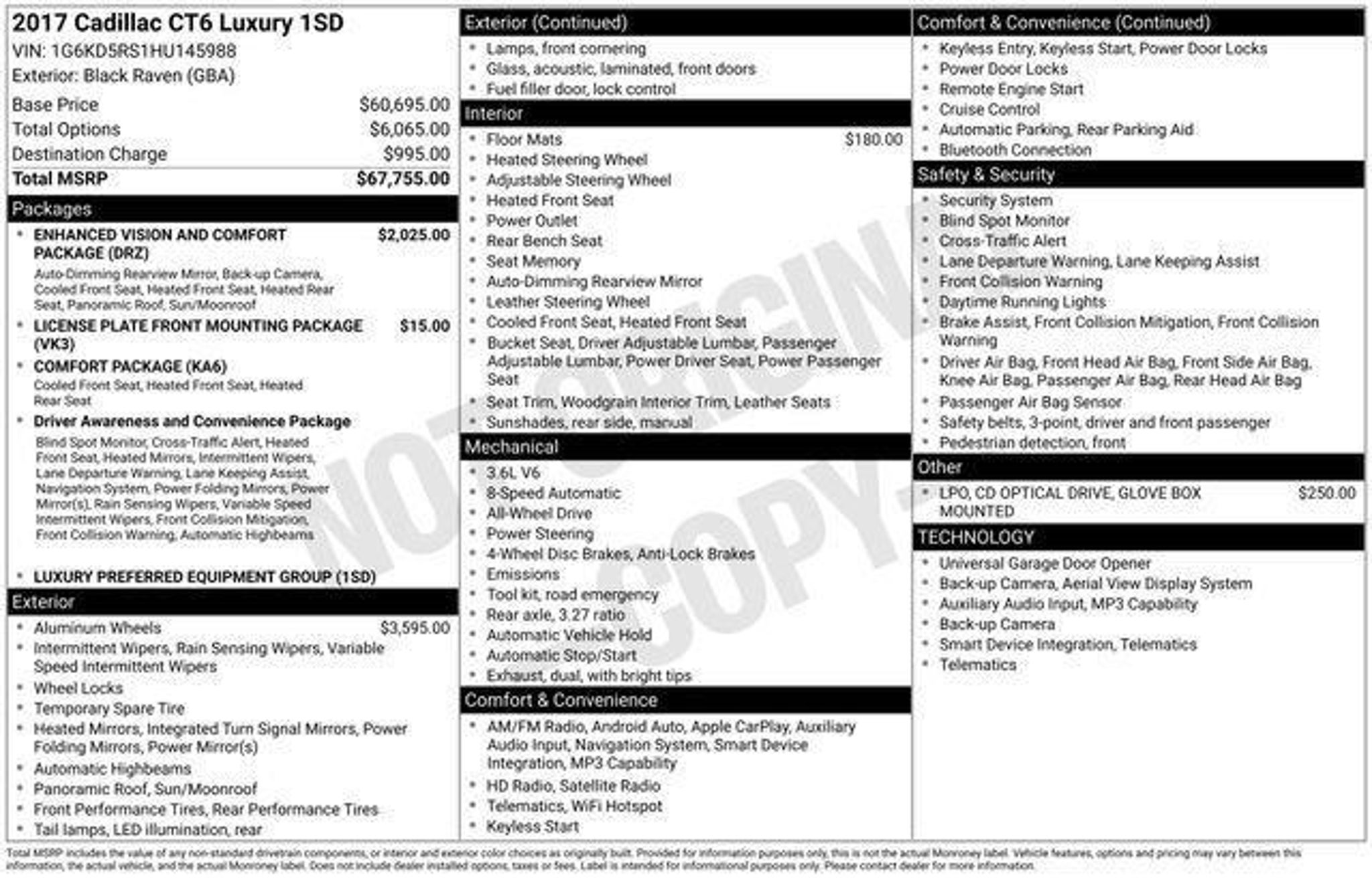 CONTACT COUGHLIN HYUNDAI AT . ***This 2017 Cadillac CT6 3.6L Luxury is a great choice***. Odometer is 3321 miles below market average! 18/27 City/Highway MPG Please call or e-mail first for the best and quickest information. Visit to see more of this store s new and used vehicle inventory for sale. Pricing excludes tax title license and document fee. While we make every effort to prevent pricing errors key stroke and human errors do occur. Please see dealer for details.