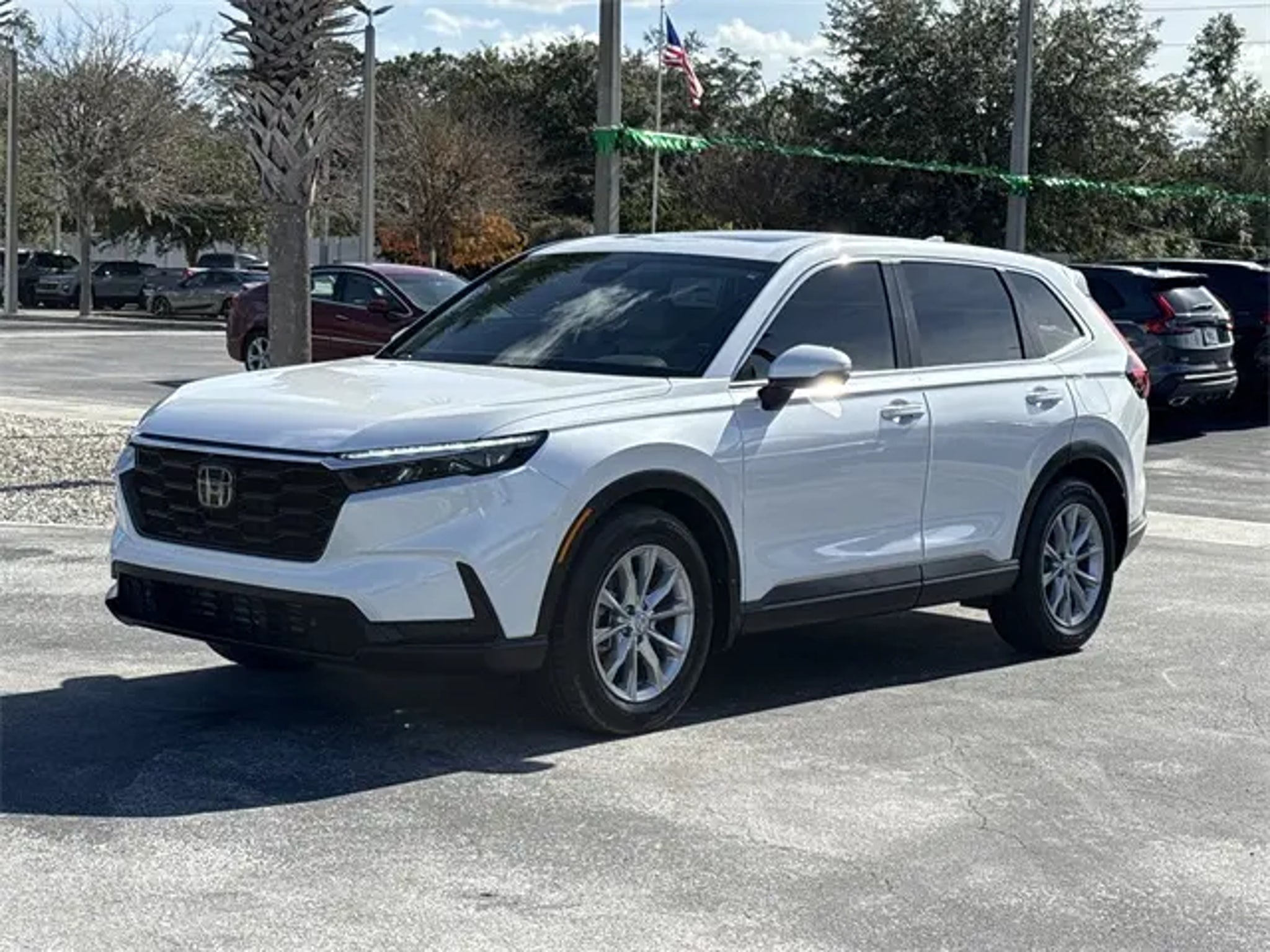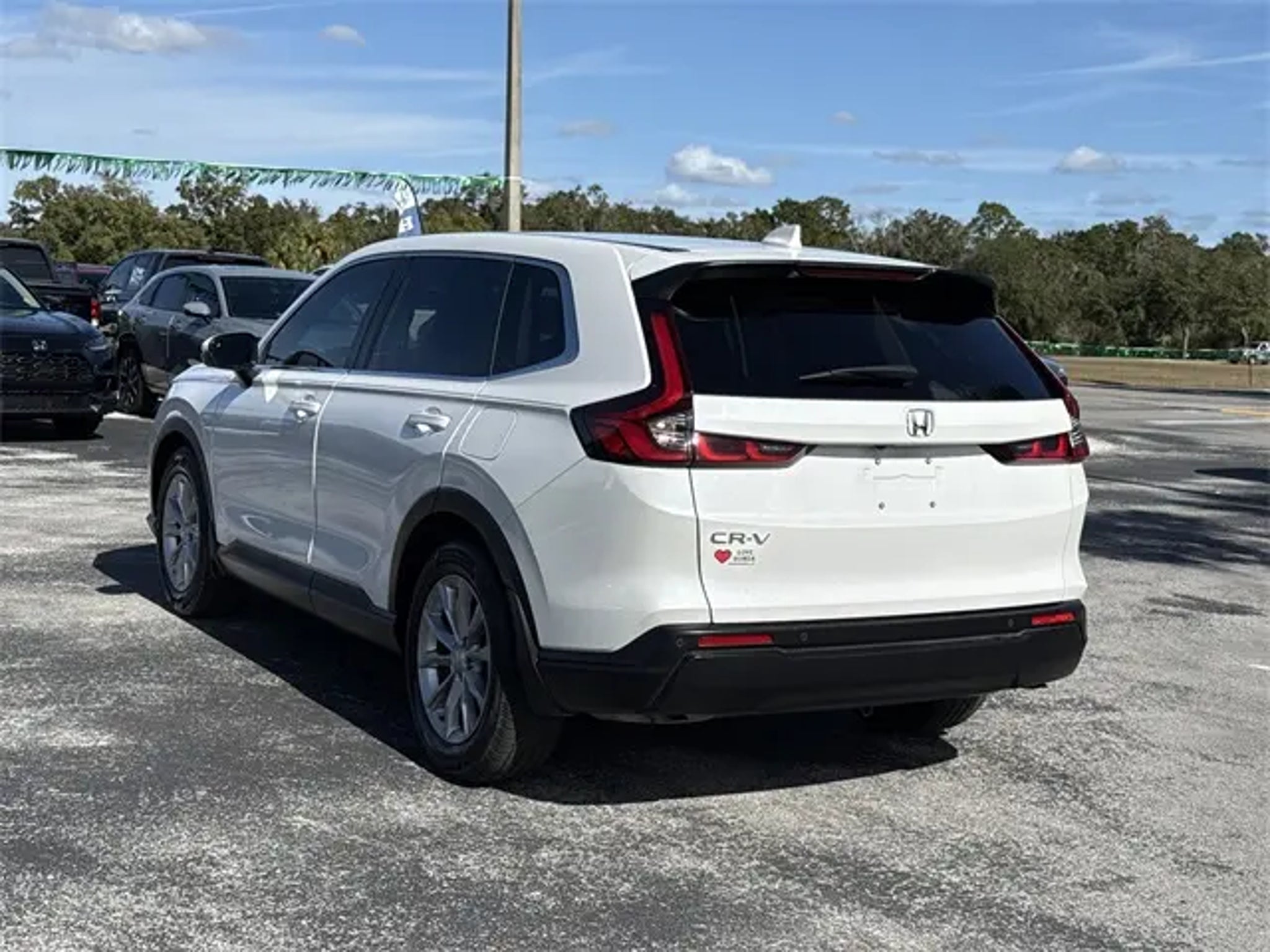 4-Wheel Disc Brakes, 8 Speakers, ABS brakes, Adaptive Cruise Control: Adaptive Cruise Control (ACC) with Low-Speed Follow, Air Conditioning, Alloy wheels, AM/FM radio: SiriusXM, Auto High-beam Headlights, Auto-dimming Rear-View mirror, Automatic temperature control, Blind Spot Information (BSI) System warning, Brake assist, Bumpers: body-color, Compass, Cruise Control, Delay-off headlights, Driver door bin, Driver vanity mirror, Dual front impact airbags, Dual front side impact airbags, Electronic Stability Control, Four wheel independent suspension, Front anti-roll bar, Front Bucket Seats, Front Center Armrest, Front dual zone A/C, Front reading lights, Fully automatic headlights, Heated door mirrors, Heated Front Bucket Seats, Heated front seats, Illuminated entry, Knee airbag, Leather Seat Trim, Leather Shift Knob, Leather steering wheel, Low tire pressure warning, Memory seat, Occupant sensing airbag, Outside temperature display, Overhead airbag, Overhead console, Panic alarm, Passenger door bin, Passenger vanity mirror, Power door mirrors, Power driver seat, Power Liftgate, Power moonroof, Power passenger seat, Power steering, Power windows, Radio data system, Radio: 320-Watt AM/FM/HD/SiriusXM Audio System, Rear anti-roll bar, Rear reading lights, Rear seat center armrest, Rear side impact airbag, Rear View Camera, Rear window defroster, Rear window wiper, Remote keyless entry, Security system, Speed-sensing steering, Speed-Sensitive Wipers, Split folding rear seat, Spoiler, Steering wheel mounted audio controls, Tachometer, Telescoping steering wheel, Tilt steering wheel, Traction control, Trip computer, Turn signal indicator mirrors, Variably intermittent wipers, and Wheels: 18 Sparkle Silver Alloy Metallic. 4-Wheel Disc Brakes, 8 Speakers, ABS brakes, Adaptive Cruise Control: Adaptive Cruise Control (ACC) with Low-Speed Follow, Air Conditioning, Alloy wheels, AM/FM radio: SiriusXM, Auto High-beam Headlights, Auto-dimming Rear-View mirror, Automatic temperature control, Blind Spot Information (BSI) System warning, Brake assist, Bumpers: body-color, Compass, Cruise Control, Delay-off headlights, Driver door bin, Driver vanity mirror, Dual front impact airbags, Dual front side impact airbags, Electronic Stability Control, Four wheel independent suspension, Front anti-roll bar, Front Bucket Seats, Front Center Armrest, Front dual zone A/C, Front reading lights, Fully automatic headlights, Heated door mirrors, Heated Front Bucket Seats, Heated front seats, Illuminated entry, Knee airbag, Leather Seat Trim, Leather Shift Knob, Leather steering wheel, Low tire pressure warning, Memory seat, Occupant sensing airbag, Outside temperature display, Overhead airbag, Overhead console, Panic alarm, Passenger door bin, Passenger vanity mirror, Power door mirrors, Power driver seat, Power Liftgate, Power moonroof, Power passenger seat, Power steering, Power windows, Radio data system, Radio: 320-Watt AM/FM/HD/SiriusXM Audio System, Rear anti-roll bar, Rear reading lights, Rear seat center armrest, Rear side impact airbag, Rear View Camera, Rear window defroster, Rear window wiper, Remote keyless entry, Security system, Speed-sensing steering, Speed-Sensitive Wipers, Split folding rear seat, Spoiler, Steering wheel mounted audio controls, Tachometer, Telescoping steering wheel, Tilt steering wheel, Traction control, Trip computer, Turn signal indicator mirrors, Variably intermittent wipers, Wheels: 18 Sparkle Silver Alloy Metallic. Recent Arrival! 2025 Honda CR-V EX-L White 28/34 City/Highway MPG All vehicles have the Red Alert rear end deterrent third brake light safety system installed for $499. Dealer Document Processing Fee of 899 -- this charge represents cost and profit to the dealer for items such as inspections, cleaning, and adjusting vehicles and preparing documents related to the sale.