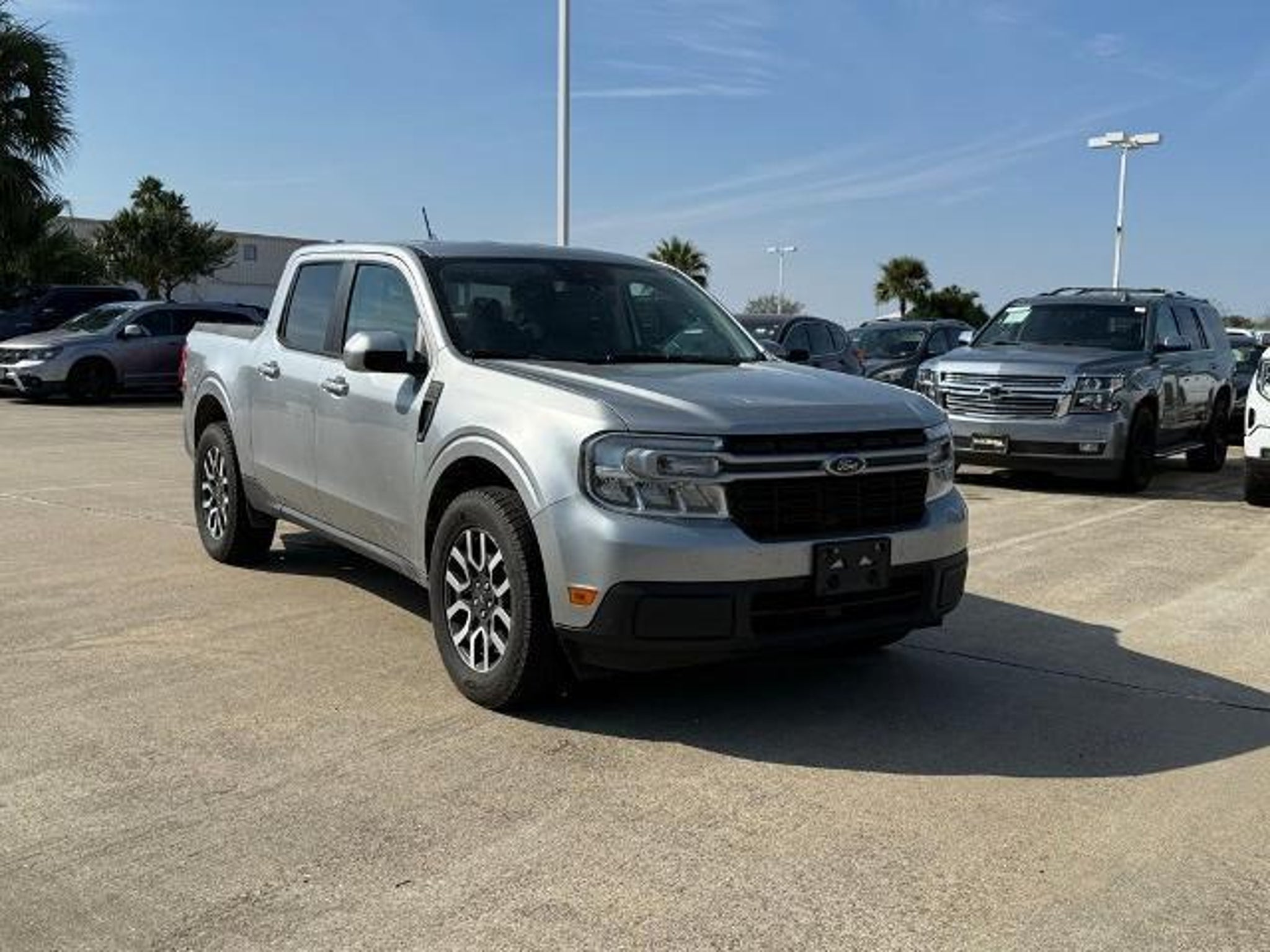 Silver Metallic 2022 Ford Maverick Lariat FWD CVT 2.5L I-4 Hybrid 2.5L I-4 Hybrid. This vehicle comes equipped with the following features and options: Ford Co-Pilot360, 2.5L I-4 Hybrid, 2.91 Axle Ratio, 4-Wheel Disc Brakes, 6 Speakers, ABS brakes, Air Conditioning, AM/FM radio, Apple CarPlay/Android Auto, Auto High-beam Headlights, Automatic temperature control, Brake assist, Bumpers: body-color, Compass, Delay-off headlights, Driver door bin, Driver vanity mirror, Dual front impact airbags, Dual front side impact airbags, Electronic Stability Control, Exterior Parking Camera Rear, Front anti-roll bar, Front Bucket Seats, Front Center Armrest, Front License Plate Bracket, Front reading lights, Front wheel independent suspension, Fully automatic headlights, Illuminated entry, Knee airbag, Low tire pressure warning, Occupant sensing airbag, Outside temperature display, Overhead airbag, Overhead console, Panic alarm, Passenger door bin, Passenger vanity mirror, Power steering, Power windows, Radio data system, Radio: AM/FM Stereo w/6 Speakers, Rear anti-roll bar, Rear step bumper, Remote keyless entry, Speed-sensing steering, Steering wheel mounted audio controls, Telescoping steering wheel, Tilt steering wheel, Traction control, and Trip computer. Recent Arrival! 42/33 City/Highway MPG Awards: * NACTOY 2022 North American Truck of the Year