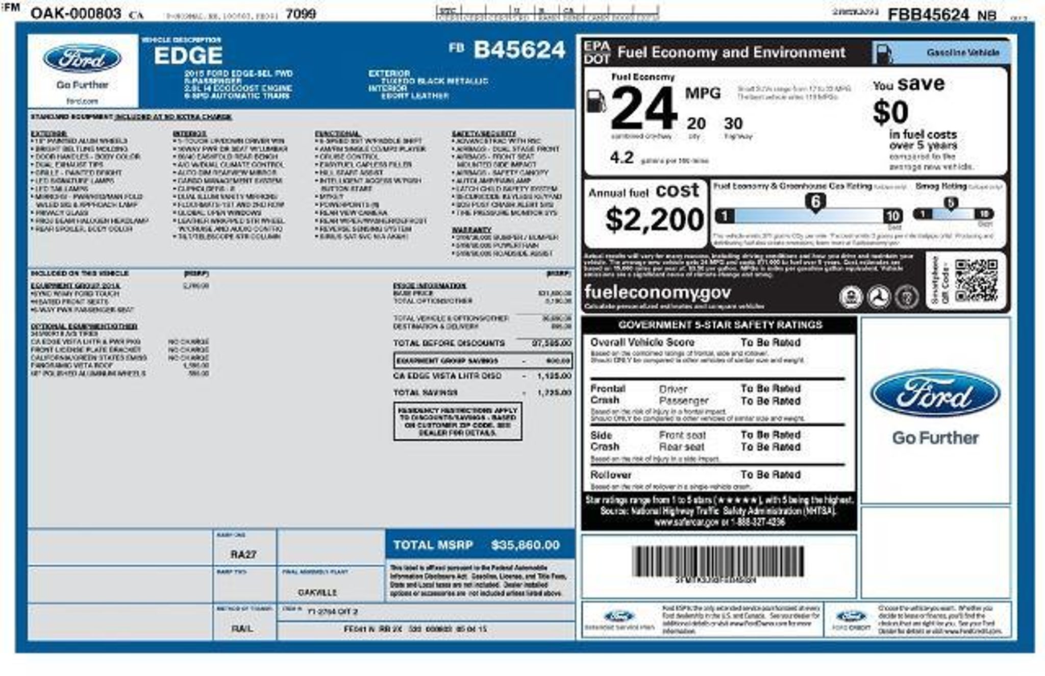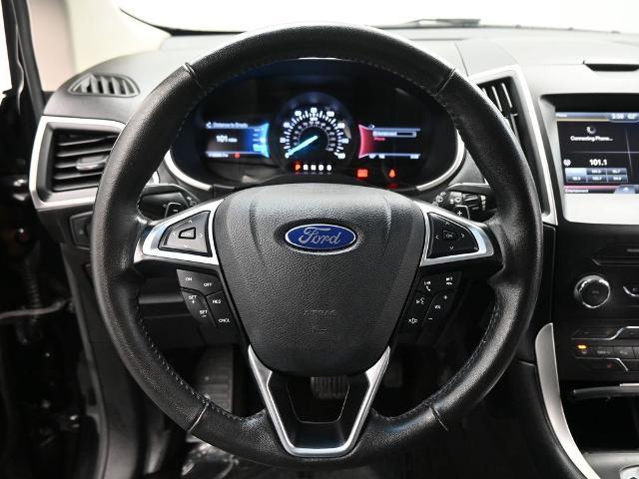 Elevate your driving experience with this exceptional 2015 Ford Edge SEL. Boasting a sleek black exterior and an impressive EcoBoost 2.0L I4 GTDi DOHC Turbocharged VCT engine, this versatile SUV is poised to exceed your expectations. Key features include: â Premium 9 Speaker Audio â SYNC w/MyFord Touch â Panoramic Vista Roof â Leather-Trimmed Heated Bucket Seats â Wheels: 18 Aluminum Polished The Edge SEL offers a host of advanced technologies to enhance your daily commute. Enjoy the convenience of the SYNC system, which seamlessly integrates your smartphone, while the 8-inch LCD touchscreen provides intuitive control over your entertainment and navigation. The panoramic vista roof floods the cabin with natural light, creating a truly open and airy driving experience. Slip behind the wheel and experience the smooth, responsive power of the turbocharged 2.0L EcoBoost engine, paired with a 6-speed automatic transmission. With an EPA-estimated 30 mpg on the highway, this Edge delivers exceptional fuel efficiency without sacrificing performance. Designed with your comfort in mind, the Edge SEL features premium leather-trimmed heated bucket seats, providing a luxurious and relaxing ride. The spacious interior offers ample room for passengers and cargo, making it the perfect companion for your adventures. Safety is also a top priority, with features like dual front impact airbags, electronic stability control, and a rear-view camera ensuring your peace of mind on the road. This exceptional 2015 Ford Edge SEL is a testament to Ford's commitment to innovation and craftsmanship. Experience the difference for yourself by scheduling a test drive today. We're confident you'll be impressed by the Edge's remarkable blend of style, technology, and capability.