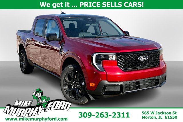 This 2026 Ford Maverick Lariat is available for delivery! Call the dealership for details! (309) 263-2311.2026 Ruby Red Metallic Tinted Clearcoat Ford Maverick Lariat*APPLE CAR PLAY/ANDROID AUTO*, BLUE TOOTH HANDS FREE, SIRIUS XM, HEATED SEATS, LEATHER SEATS, POWER SEAT, REAR BACK UP CAMERA, REMOTE START SYSTEM, 4K TOW PKG, CONEVENTIONAL SPARE TIRE, BLACK APPEARANCE PKG, POWER SLIDING REAR WINDOW, CONNECTIVITY PKG, TRAILER BRAKE CONTROLLER, CLASS III TRAILER HITCH RECEIVER, B&O SOUND SYS, SYNC 4 W/EVR, REAR PARKING SENSORS, PRE COLLSION ASSIST W/AEB, FRONT PARKING SENSORS, FORD COPILOT360 ASSIST 2.0, 360 DEGREE CAMERA, USB PORTS, TOUGHBED SPRAY IN BEDLINER, LED BOX LIGHTING, HEATED STEERING WHEEL, 2.5L I-4 Hybrid, 2.91 Axle Ratio, 4K Tow Package, ActiveX Trimmed Heated Front Bucket Seats, Air Conditioning, Apple CarPlay/Android Auto, Automatic temperature control, Black Appearance Package, Black Grille, Black Interior Accents, Equipment Group 501A, Exterior Parking Camera Rear, Ford Connectivity Package (1-Year Included), Front Bucket Seats, Front dual zone A/C, Heated door mirrors, Heated front seats, Heated steering wheel, Illuminated entry, Internet access capable: 5G Modem - Ford Connectivity Package, Knee airbag, Navigation system: Connected Navigation, Power door mirrors, Power driver seat, Power windows, Power-Sliding Rear Window, Radio data system, Radio: B&O Sound System by Bang and Olufsen, Rear step bumper, Remote keyless entry, SiriusXM with 360L, Steering wheel mounted audio controls, SYNC 4 with Enhanced Voice Recognition, Telescoping steering wheel, Tilt steering wheel, Trailer Brake Controller, Trailer Hitch (class III) 2 Receiver, Upgraded Cooling Fan, Wheels: 19 Black Painted Aluminum. AWD 2.5L I-4 HybridWe Get it...Price Sells Cars!!!