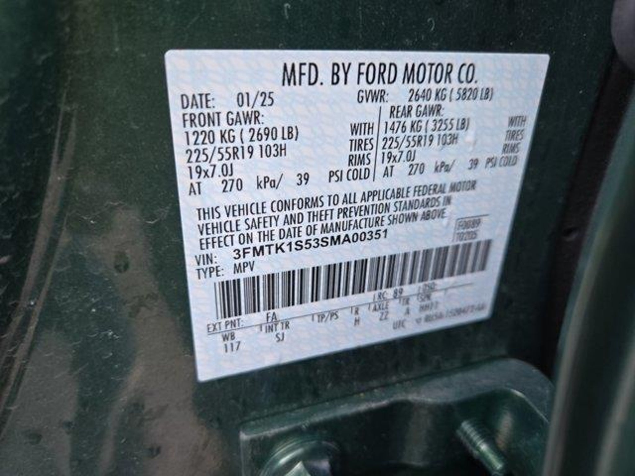 VIN 3FMTK1S53SMA00351