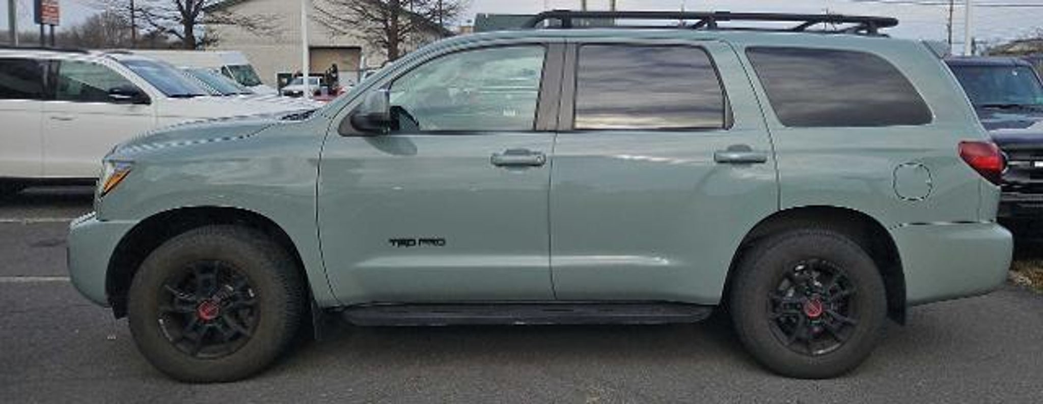 POWER MOONROOF / SUNROOF / POWER TILT SLIDING ROOF, VOICE ACTIVATED NAVIGATION, NAVIGATION / GPS / NAV, BLIS / BLIND SPOT MONITORING / BLIND SIDE ALERT, DYNAMIC RADAR CRUISE CONTROL / ADAPTIVE CRUISE CONTROL / SMART CRUISE CONTROL, LANE DEPARTURE WARNING, LANE DEPARTURE ALERT / LANE KEEPING ALERT, REARVIEW CAMERA / BACK UP CAMERA / REVERSE CAMERA, REAR VIEW CAMERA WDYNAMIC GUIDELINES, ANDROID AUTO & APPLE CARPLAY, LEATHER SEATS, HEATED FRONT ROW SEATS, POWER WINDOWS & LOCKS, FOUR WHEEL DRIVE / 4WD / 4X4, STEERING WHEEL AUDIO CONTROLS, CRUISE CONTROL, REAR CROSS TRAFFIC ALERT, PUSH-BUTTON START, POWER SLIDING REAR WINDOW, BLUETOOTH AUDIO STREAMING, DUAL ZONE A/C CONTROLS, BED LINER, BACK UP SENSORS, AUTO HIGH BEAMS, 15 Speakers, 3rd row seats: split-bench, 4-Wheel Disc Brakes, 4.30 Axle Ratio, ABS brakes, Air Conditioning, Alloy wheels, Apple CarPlay/Android Auto, Auto High-beam Headlights, Auto-Dimming Rear-View Mirror, Automatic temperature control, Brake assist, Bumpers: body-color, Compass, Delay-off headlights, Door Scuff Plate, Electronic Stability Control, Exterior Parking Camera Rear, Four wheel independent suspension, Front Bucket Seats, Front Center Armrest, Front dual zone A/C, Front fog lights, Front Heated Bucket Seats, Front reading lights, Fully automatic headlights, Headlight cleaning, Heated front seats, HomeLink Universal Transceiver, Leather Seat Trim, Low tire pressure warning, Navigation System, Navigation system: Dynamic Navigation (3-year trial), Panic alarm, Passenger door bin, Power driver seat, Power moonroof, Power steering, Power windows, Radio: Premium Audio w/Dynamic Navigation & JBL, Rear air conditioning, Rear reading lights, Rear window defroster, Rear window wiper, Reclining 3rd row seat, Remote keyless entry, Roof rack, Speed control, Split folding rear seat, Steering wheel mounted audio controls, Traction control, TRD Pro Package, Variably intermittent wipers, Wheels: 18 Black BBS Forged Aluminum Alloy. 2021 Toyota Sequoia TRD Pro 4WD Lunar Rock 5.7L V8
