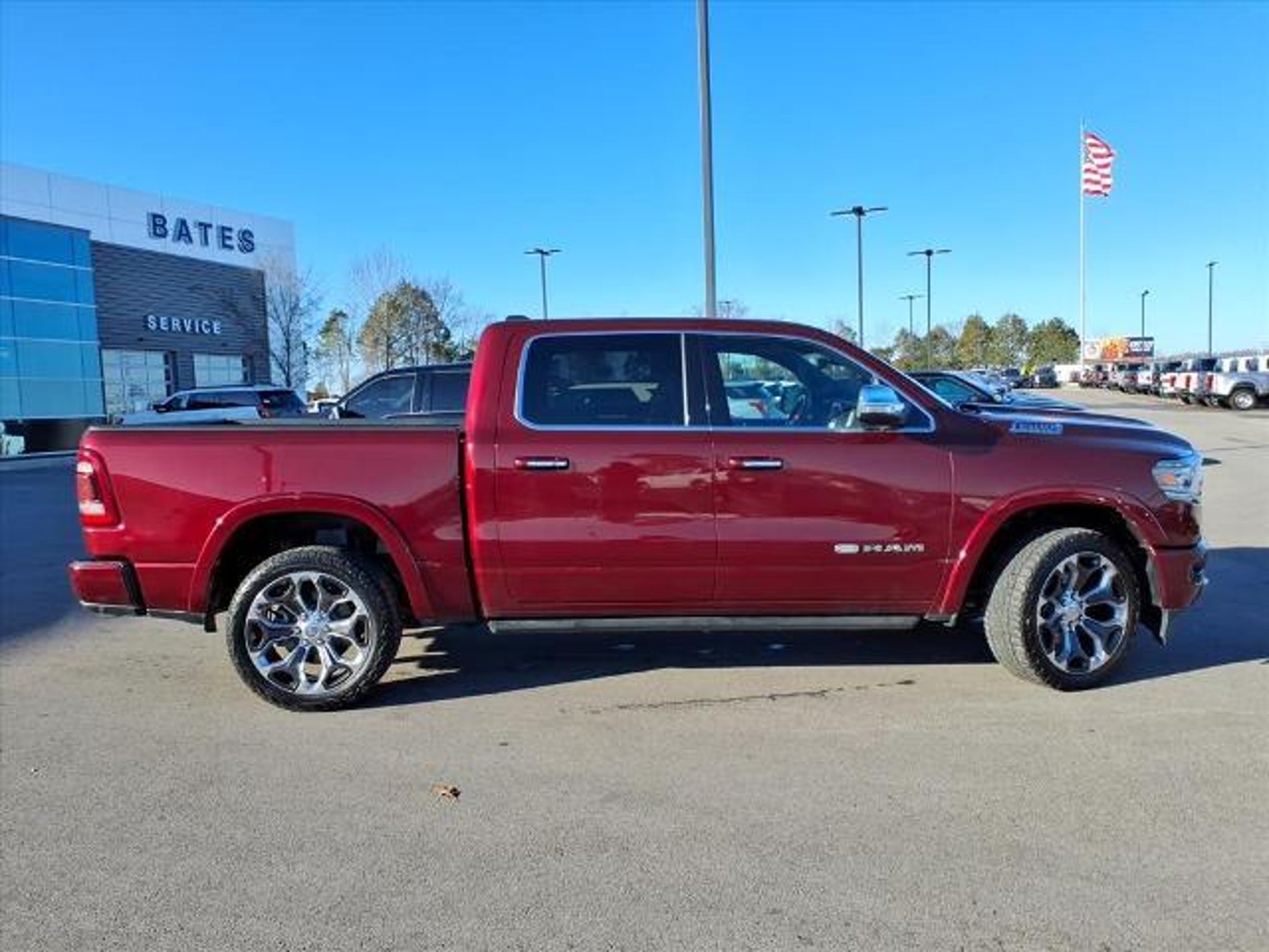 We'll trade for anything that don't eat!LOCAL TRADE!! NO ACCIDENT AUTOCHECK REPORT!!Delmonico Red Pearlcoat 2020 Ram 1500 Laramie Longhorn 4WD 8-Speed Automatic HEMI 5.7L V8 Multi Displacement VVT **LOCAL TRADE**, NO ACCIDENTS!!, BACKUP CAMERA, ALUMINUM WHEELS, BLUETOOTH, NAVIGATION, REMOTE START, PREMIUM STEREO, 1-Yr SiriusXM Guardian Trial, 12 Touchscreen Display, 3 Rear Seat Head Restraints, 3.92 Rear Axle Ratio, 4 Way Front Headrests, 4-Wheel Disc Brakes, 4G LTE Wi-Fi Hot Spot, 5-Year SiriusXM Travel Link Service, ABS brakes, Adaptive Cruise Control w/Stop & Go, Adjustable pedals, Advanced Safety Group, Air Conditioning, Alloy wheels, Anti-Spin Differential Rear Axle, Apple CarPlay, Apple CarPlay/Android Auto, Auto High-beam Headlights, Auto-dimming door mirrors, Auto-dimming Rear-View mirror, Automatic temperature control, Blind Spot & Cross Path Detection, Body Color Bumper Group, Body Color Front Bumper, Body Color Rear Bumper w/Step Pads, Bucket Seats, Bumpers: chrome, Compass, Delay-off headlights, Disassociated Touchscreen Display, Driver door bin, Driver Seat Memory, Driver vanity mirror, Dual front impact airbags, Dual front side impact airbags, Foam Bottle Insert (Door Trim Panel), For Details, Visit DriveUconnect.com, Front anti-roll bar, Front Bucket Seats, Front Center Armrest w/Storage, Front dual zone A/C, Front fog lights, Front reading lights, Front Seat Back Map Pockets, Front wheel independent suspension, Full Speed Forward Collision Warning Plus, Fully automatic headlights, Garage door transmitter, Genuine wood console insert, Genuine wood dashboard insert, Genuine wood door panel insert, Google Android Auto, GPS Antenna Input, GPS Navigation, harman/kardon 19 Speaker Premium Sound, HD Radio, Heated door mirrors, Heated Front Seats, Heated front seats, Heated rear seats, Heated Second Row Seats, Heated Steering Wheel, Heated steering wheel, Illuminated entry, Integrated Center Stack Radio, Lane Keep Assist, Leather steering wheel, Longhorn Level 1 Equipment Group, Low tire pressure warning, Memory seat, No Satellite Coverage w/HI/AK/PR/VI/GU, Occupant sensing airbag, Outside temperature display, Overhead airbag, Overhead console, Parallel & Perp Park Assist w/Stop, ParkView Rear Back-Up Camera, Passenger door bin, Passenger vanity mirror, Pedal memory, Power 4-Way Driver Lumbar Adjust, Power 4-Way Passenger Lumbar Adjust, Power 8-Way Driver & Passenger Seats, Power door mirrors, Power driver seat, Power passenger sea