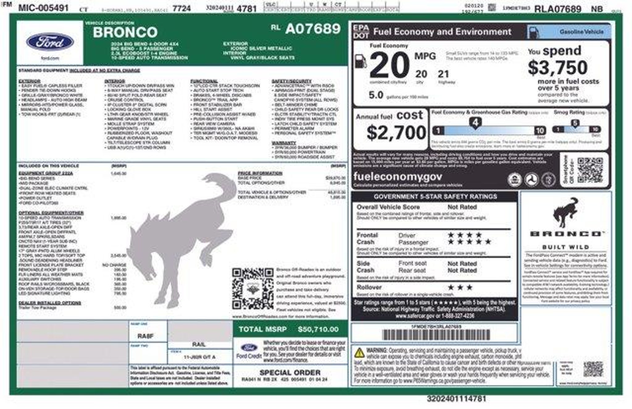 New Price! Come see the difference at Columbia! LOCAL TRADE, NON SMOKER, CLEAN CARFAX, NEW TIRES, EMPLOYEE OWNED. Certified.Iconic Silver Metallic 2024 Ford Bronco Big Bend4WD 10-Speed Automatic 2.3L EcoBoost I-4Ford Gold Certified Details: * 172 Point Inspection * Transferable Warranty * Warranty Deductible: $100 * Roadside Assistance * Vehicle History * Powertrain Limited Warranty: 84 Month/100,000 Mile (whichever comes first) from original in-service date * and 22,000 FordPass Rewards Points to use toward first two maintenance visits * Limited Warranty: 12 Month/12,000 Mile (whichever comes first) after new car warranty expires or from certified purchase dateCall us today to set up a VIP appointment 860-228-2886.