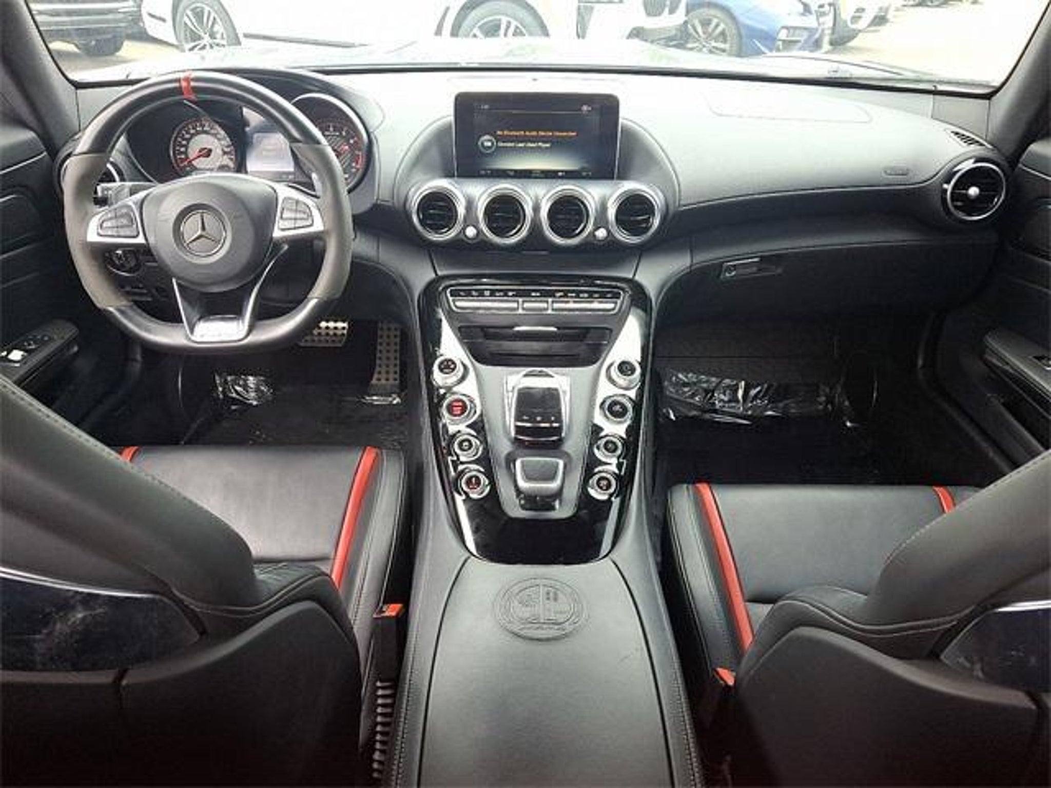 This 2016 Mercedes-Benz AMG® GT has passed the Lynnes comprehensive 172 point inspection with flying colors. Our ASE certified technicians have inspected this AMG® GT and have brought it up to date with all its regularly scheduled maintenance. Buy this AMG® GT and have confidence that it will bring you years of reliable Transportation. 2016 Mercedes-Benz AMG® GT S Black 7-Speed Automatic RWD 4.0L V8 Drive Home Happy Promise, New Beginning Automotive Financing - Our Goal 100% Credit Approval, 10 Speakers, 4-Wheel Disc Brakes, ABS brakes, Adaptive suspension, Air Conditioning, Alloy wheels, AM/FM radio: SIRIUS, Auto High-beam Headlights, Auto tilt-away steering wheel, Auto-dimming door mirrors, Auto-dimming Rear-View mirror, Automatic temperature control, Brake assist, Bumpers: body-color, CD player, Delay-off headlights, Driver door bin, Driver vanity mirror, Dual front impact airbags, Dual front side impact airbags, DVD-Audio, Electronic Stability Control, Emergency communication system: mbrace, Exterior Parking Camera Rear, Four wheel independent suspension, Front anti-roll bar, Front Bucket Seats, Front Center Armrest, Front dual zone A/C, Front reading lights, Fully automatic headlights, Garage door transmitter, Heated door mirrors, Heated front seats, HVAC memory, Illuminated entry, Knee airbag, Low tire pressure warning, Memory seat, Navigation system: COMAND®, Occupant sensing airbag, Outside temperature display, Overhead airbag, Overhead console, Panic alarm, Passenger door bin, Passenger vanity mirror, Perforated Nappa Leather Upholstery, Power door mirrors, Power driver seat, Power Heated AMG® Performance Seats w/Memory, Power passenger seat, Power steering, Power windows, Premium audio system: COMAND®, Radio data system, Radio: Burmester® Surround Sound System, Rain sensing wipers, Rear anti-roll bar, Rear fog lights, Rear window defroster, Remote keyless entry, Security system, Speed control, Speed-sensing steering, Spoiler, Sport steering wheel, Steering wheel memory, Steering wheel mounted audio controls, Tachometer, Telescoping steering wheel, Tilt steering wheel, Traction control, Trip computer, Turn signal indicator mirrors, Variably intermittent wipers, Weather band radio, Wheels: 19 Fr/20 Rr AMG® Twin 5-Spoke Titanium. Type your sentence here.