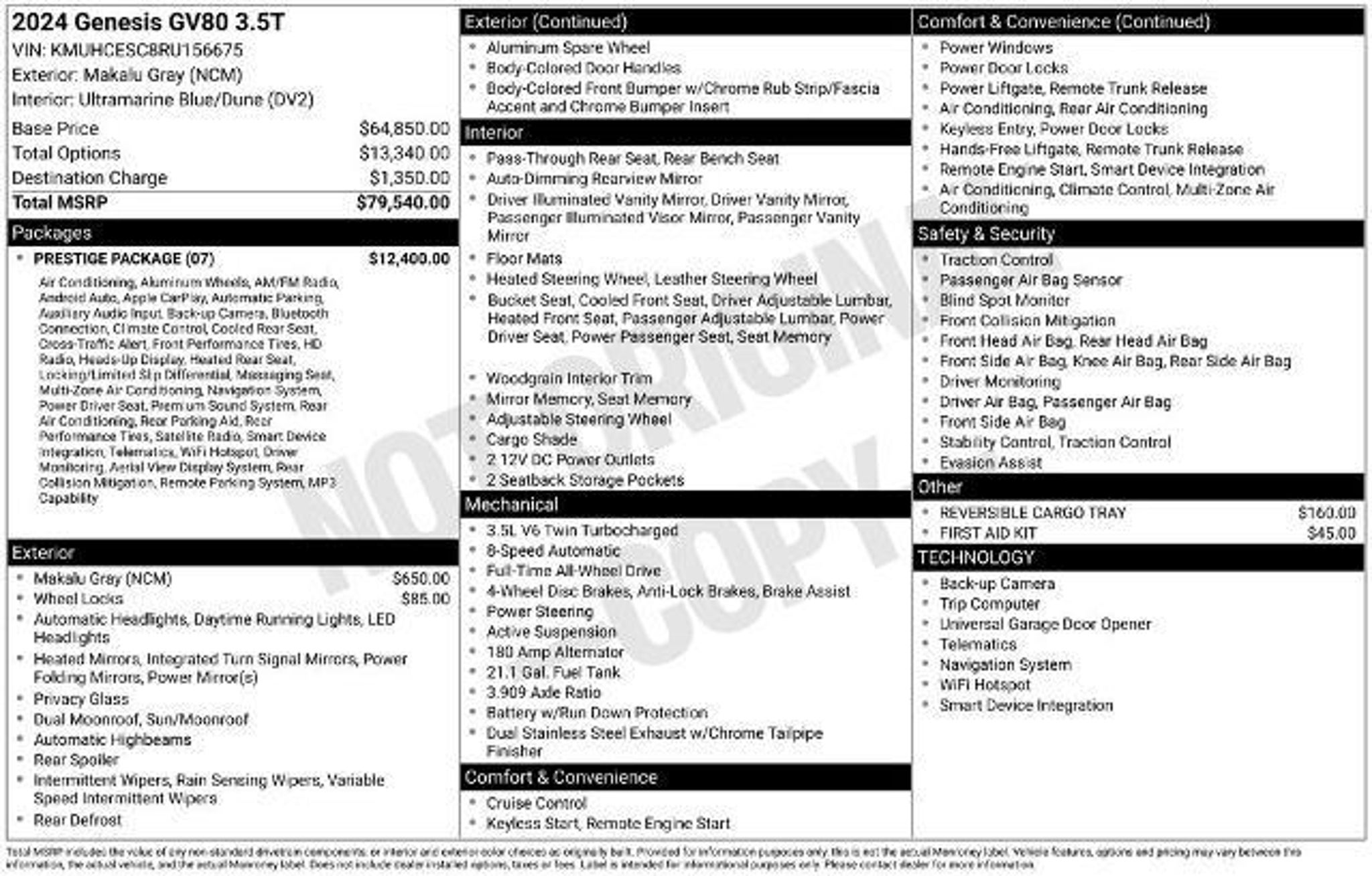 Blue Certified 2024 Genesis GV80 3.5T, 1 OWNER, Local Trade, Loaded with Leather Seats, Navigation, Rear Camera, Bluetooth, Dual Zone Climate Controls, Heated/Cooled Front Seats, Heated Leather Steering Wheel w/ Audio Controls, Lexicon Premium Sound System, Twin Panel Moonroof, Lane-Keep Assist, BLIS (Blindspot Detection) w/ Traffic Avoidance Assist, Adaptive Cruise Controls, Forward Collision Avoidance Assist, Wireless Phone Charger, Remote Start, Active Noise Controls, Universal Garage Opener, 12V Outlet, USB and More! THE FORD BLUE ADVANTAGE: BLUE CERTIFIED 139 Point Inspection, Vehicle History,Roadside Assistance, *Comprehensive Limited Warranty: 3 Month/4,000 Mile (whichever comes first) after new car warranty expires or from certified purchase date.This vehicle also comes with a 14 DAY/1,000-MILE money back guarantee backed by FORD.