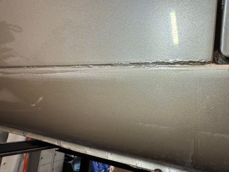 More aerodynamic than the first generation Torino, and although a brick by today's standards, this car has attractive lines that are accentuated by the two stage Nugget Gold Metallic paint that plays well with the black grid insert between the tail lights, black trim on the latch panel, and the eggcrate grille with inset dual headlights. The chrome and stainless is in great shape and includes the window frames, exhaust tips, drip rails, and robust door handles. 14-inch Magnum 500 wheels are the right shoes and the letters out presentation on the slightly staggered tires is also fitting. The sloping rear window leads to a slightly upturned decklid, suggesting a wing without going over the top. Imperfections include some blistering on front fenders, rough surface in the lower seams, and evident filler on front fender above chin spoiler.