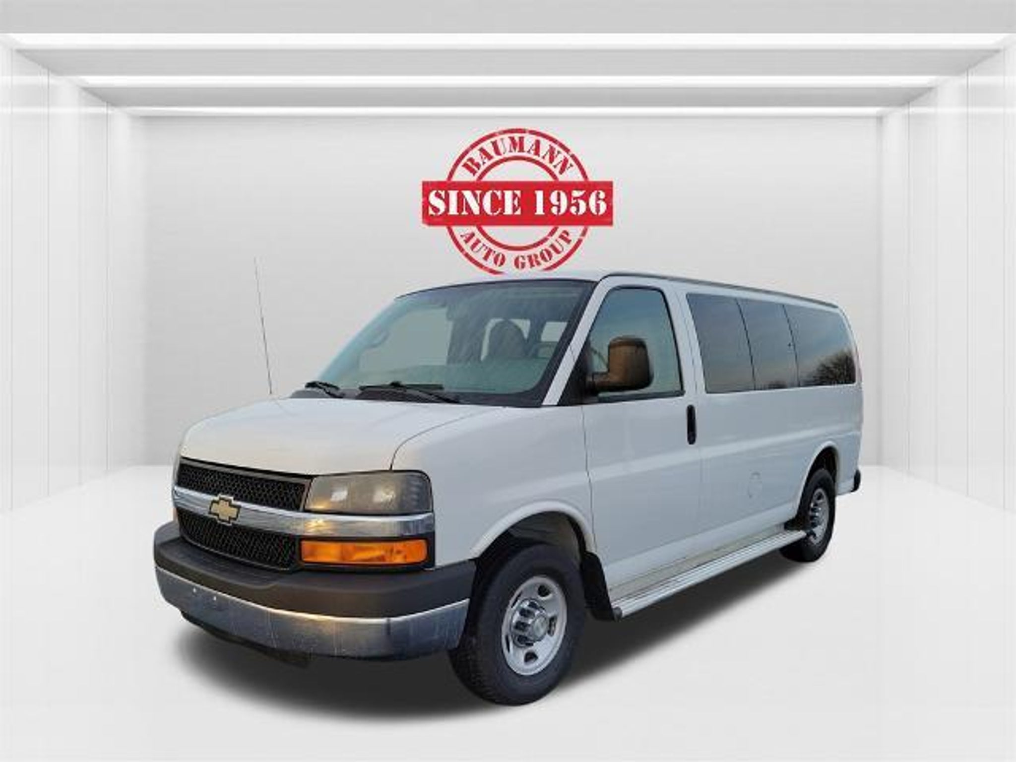 Clean CARFAX. Summit White 2014 Chevrolet Express 3500 LT Passenger Passenger Van Vortec 6.0L V8 SFI Flex Fuel 6-Speed Automatic HD with Electronic Overdrive RWD BAUMANN AUTO GROUP GENOA - 419.855.8366. We Make Car Buying Fun, Fast, and HASSLE FREE. CLEAN CARFAX REPORT, 145 Amp Alternator, 8-Point Digital Compass, Auxiliary Lighting, Chrome Appearance Package, Chrome Grille, Convenience Package, Cruise Control, Custom Cloth Seat Trim, Deluxe Console, Driver & Front Passenger Padded Visors, Dual Composite Halogen Headlamps, Front & Rear Chrome Bumpers w/Step-Pad, Full-Floor Color-Keyed Carpeting, Preferred Equipment Group 1LT, Reading Lights, Rear Air, Rear Auxiliary Heater, Reclining Front Bucket Seats w/Inboard Armrests, Remote Keyless Entry, Smoker's Package, Tilt Steering Wheel, Underhood Lights, Wheel Trim w/Chrome Center Caps, 12-Passenger Seating (2-3-3-4 Seating Config), 16 x 6.5 Steel Wheels, 2 Speakers, 3.42 Rear Axle Ratio, 3rd row seats: bench, 4-Wheel Disc Brakes, 4th-Row Bench Seat, 6-Way Power Driver Seat Adjuster, ABS brakes, Air Conditioning, AM/FM radio, AM/FM Stereo w/Seek & Scan, Delay-off headlights, Driver door bin, Driver's Seat Mounted Armrest, Dual front impact airbags, Electric Rear-Window Defogger, Electronic Stability Control, Emergency communication system, Front anti-roll bar, Front Bucket Seats, Front wheel independent suspension, Fully automatic headlights, Low tire pressure warning, Overhead airbag, Passenger cancellable airbag, Passenger door bin, Passenger seat mounted armrest, Power steering, Power windows, Power-Adjustable Black Outside Heated Mirrors, Rear Park Assist w/Audible Warning, Rear Vision Camera, SiriusXM Satellite Radio, Sliding Passenger-Side Door, Speed control, Tachometer, Tilt steering wheel, Traction control, Trip computer, USB Port Audio System Feature, Variably intermittent wipers, Voltmeter, 145 Amp Alternator, 8-Point Digital Compass, Auxiliary Lighting, Chrome Appearance Package, Chrome Grille, Convenience Package, Cruise Control, Custom Cloth Seat Trim, Deluxe Console, Driver & Front Passenger Padded Visors, Dual Composite Halogen Headlamps, Front & Rear Chrome Bumpers w/Step-Pad, Full-Floor Color-Keyed Carpeting, Preferred Equipment Group 1LT, Reading Lights, Rear Air, Rear Auxiliary Heater, Reclining Front Bucket Seats w/Inboard Armrests, Remote Keyless Entry, Smoker's Package, Tilt Steering Wheel, Underhood Lights, Wheel Trim w/Chrome Center Caps.