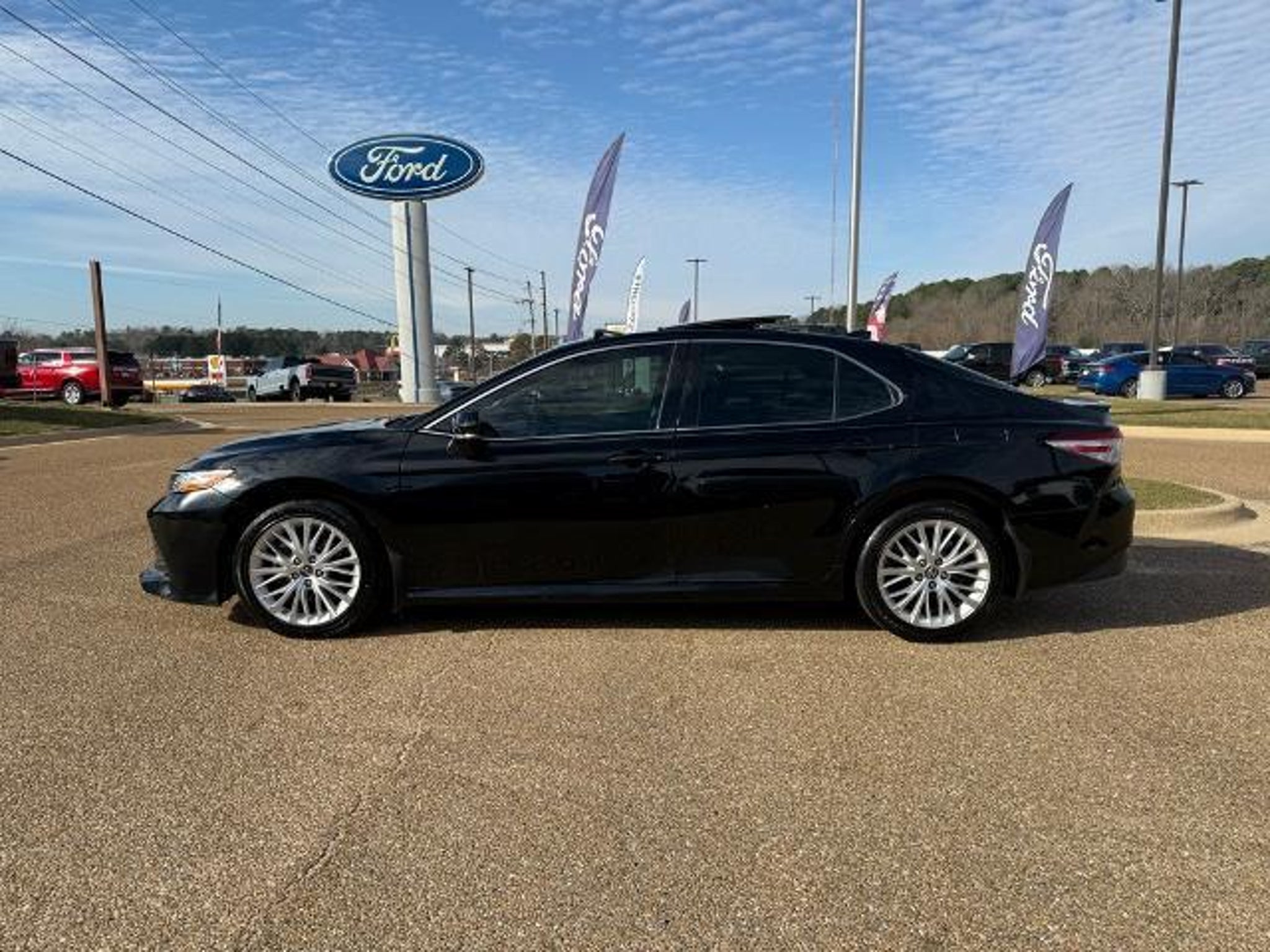 XLE V6! ALL THE FEATURES! We have a superb team of financial experts who are here to help you find the financing solution that best fits your needs and budget as a driver. And we want to see you drive home in a new or used vehicle that you love ? for a price you'll love even more. Why do we love helping you so much? Because we love to say yes! South AR's #1 Ford dealer! Call us at (870) 864-9400 For help with any of our departments!! Recent Arrival! This 2019 Black Toyota Camry FWD is well equipped and includes these features and benefits: 4-Wheel Disc Brakes, 9 Speakers, ABS brakes, Air Conditioning, Alloy wheels, AM/FM radio: SiriusXM, Apple CarPlay, Auto High-beam Headlights, Auto-dimming Rear-View mirror, Automatic temperature control, Brake assist, Bumpers: body-color, CD player, Compass, Delay-off headlights, Driver door bin, Driver vanity mirror, Dual front impact airbags, Dual front side impact airbags, Electronic Stability Control, Emergency communication system: Safety Connect, Exterior Parking Camera Rear, Four wheel independent suspension, Front anti-roll bar, Front Bucket Seats, Front Center Armrest, Front dual zone A/C, Front reading lights, Fully automatic headlights, Garage door transmitter: HomeLink, Heads-Up Display, Heated door mirrors, Heated front seats, Illuminated entry, Knee airbag, Leather Shift Knob, Low tire pressure warning, Multi-Stage Heated Front Bucket Seats, Occupant sensing airbag, Outside temperature display, Overhead airbag, Overhead console, Panic alarm, Passenger door bin, Passenger vanity mirror, Power door mirrors, Power driver seat, Power moonroof, Power passenger seat, Power steering, Power windows, Radio data system, Radio: Entune 3.0 Audio Plus w/JBL w/Clari-Fi, Rear anti-roll bar, Rear reading lights, Rear seat center armrest, Rear side impact airbag, Rear window defroster, Remote keyless entry, Security system, Speed control, Speed-sensing steering, Split folding rear seat, Steering wheel mounted audio controls, Tachometer, Telescoping steering wheel, Tilt steering wheel, Traction control, Trip computer, Turn signal indicator mirrors, Variably intermittent wipers. Odometer is 4568 miles below market average! Awards: * 2019 KBB.com 10 Best Sedans Under $30,000 * 2019 KBB.com 10 Most Comfortable Cars Under $30,000 * 2019 KBB.com Brand Image Awards * 2019 KBB.com Best Resale Value Awards