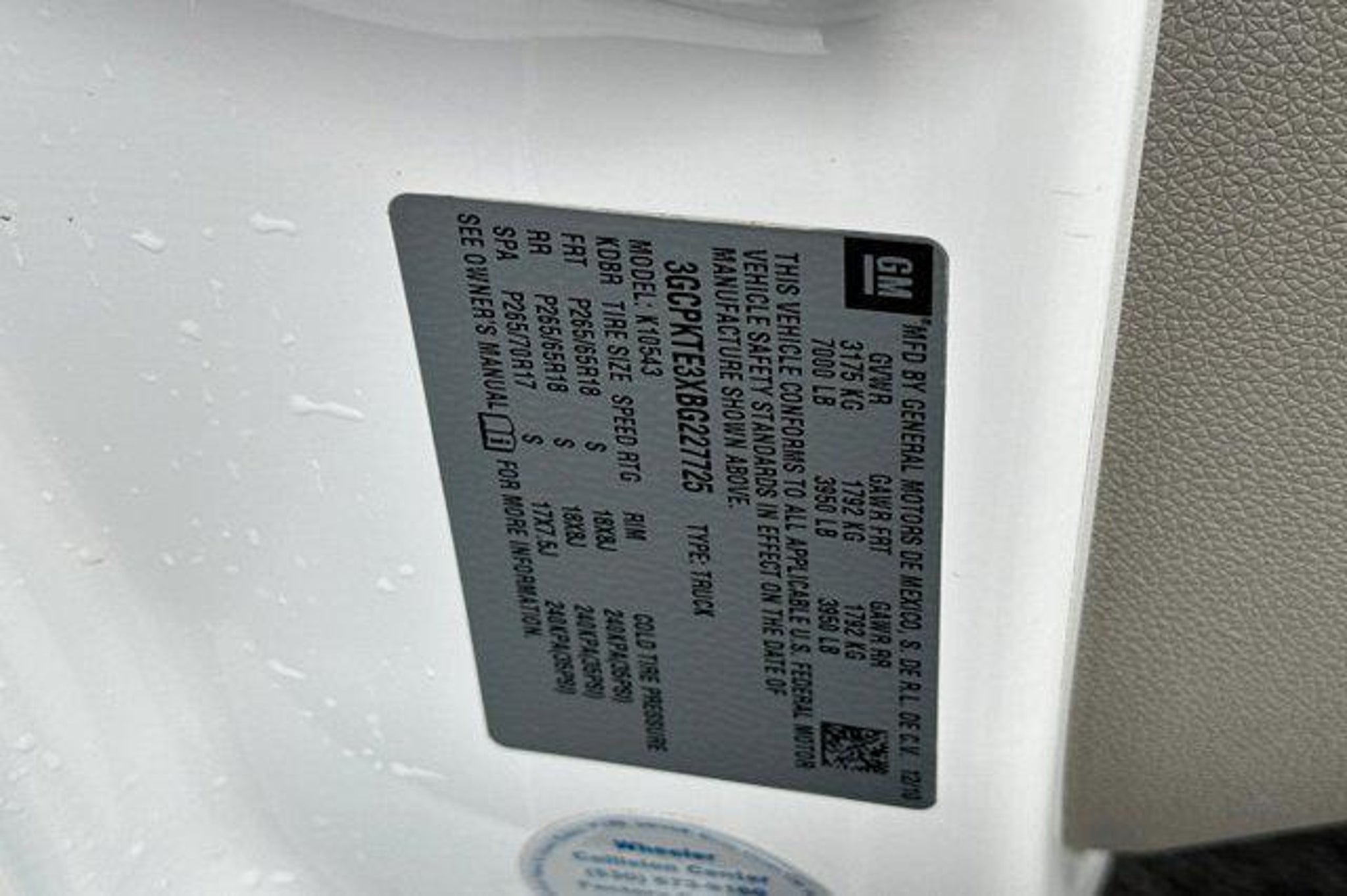 VIN 3GCPKTE3XBG227725