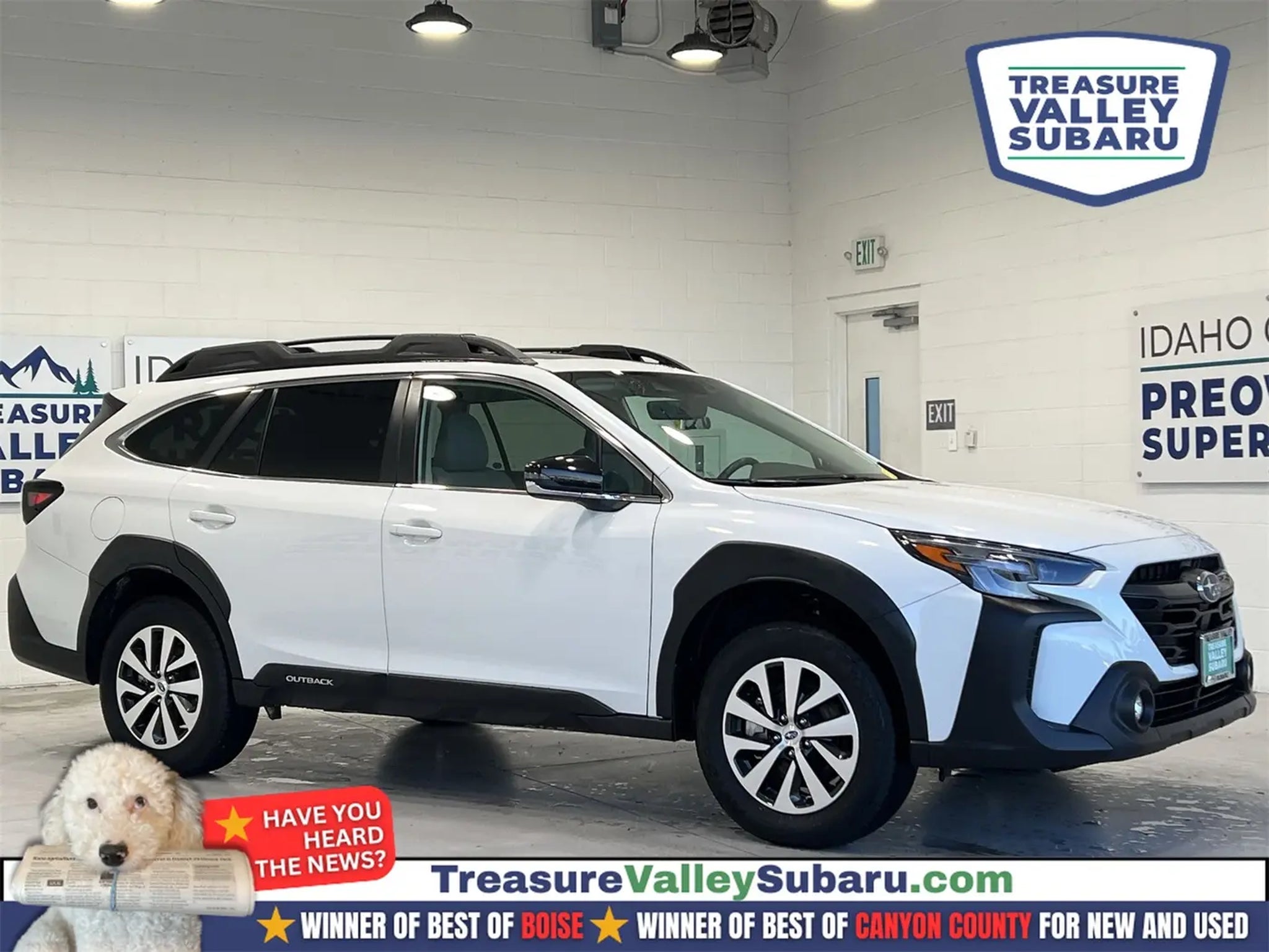 Crystal White Pearl CARFAX One-Owner. Premium Local Trade In, Bought here new., Outback Premium, 4D Sport Utility, 2.5L 4-Cylinder DOHC 16V, CVT Lineartronic, AWD, Crystal White Pearl, Gray Cloth, Blind Spot Detection (BSD), BSD & RCTA & Keyless Access & Push Button Start, Hands-Free Power Rear Gate, Keyless Access w/Push Button Start, Power Moonroof, Radio: Subaru STARLINK 11.6 Multimedia Nav System, Rear Cross Traffic Alert (RCTA). AWD Treasure Valley Subaru stocks hundreds of pre-owned vehicles all in one convenient location! Whether you are looking to buy, sell or trade, Treasure Valley Subaru can help! Odometer is 4444 miles below market average!