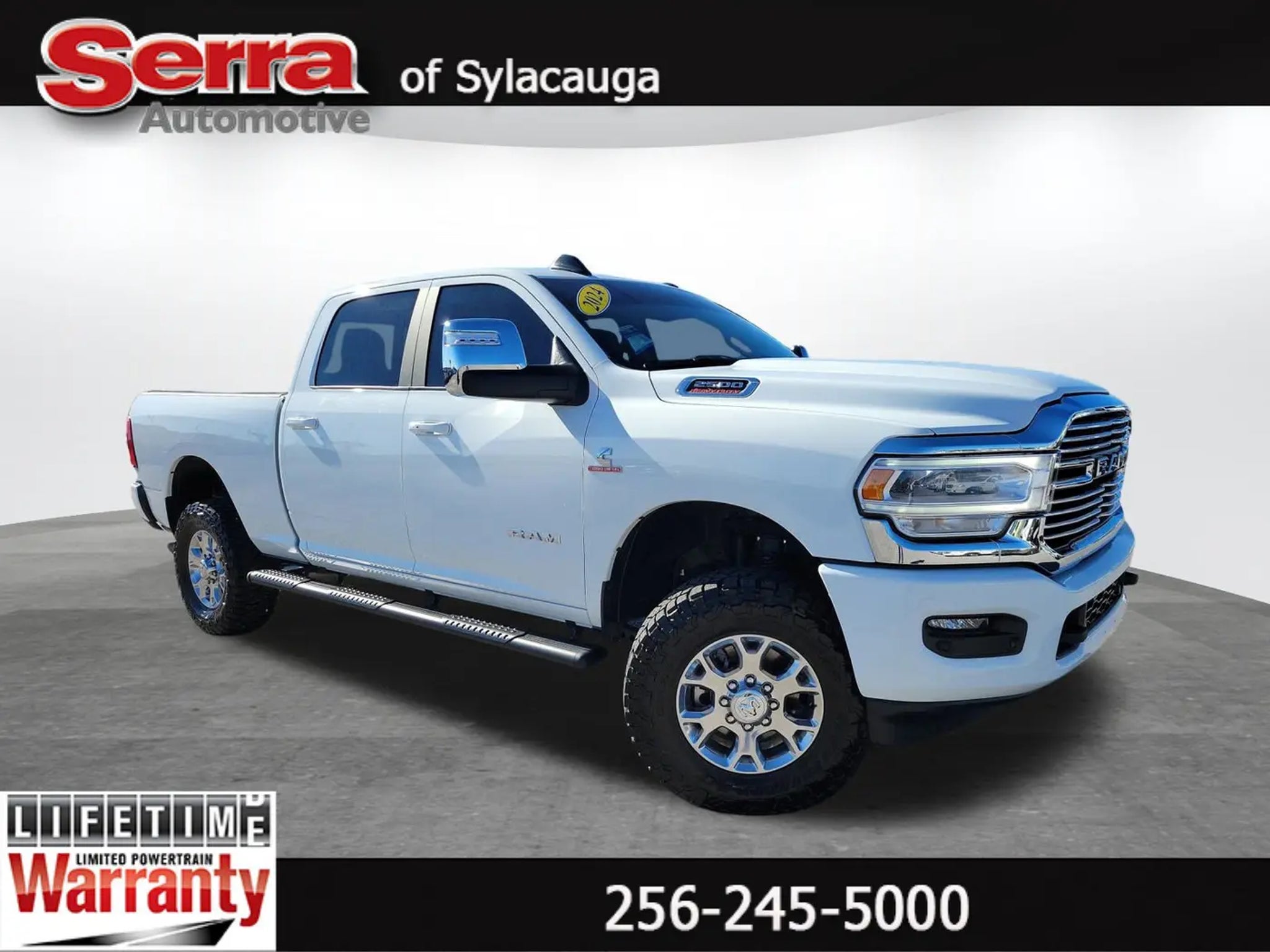 Tony Serra Ford is committed to you. Each employee in our dealership looks to meet and exceed your expectation by providing the highest level of customer satisfaction with every purchase, lease and service experience. Your search for the best new Ford dealer with used cars and trucks ends at Tony Serra Ford in Sylacauga, AL - serving Chelsea, Alexander City and the Greater Birmingham Area! We can take care of all your automotive needs under one roof, from finding your next car to securing financing to keeping it maintained. Our commitment to your 100% satisfaction will help you experience the Tony Serra Ford Difference with features like our free warranty protection on every new Ford for unlimited time and miles, a 30-day low price protection guarantee, a 3-day Love It or Leave It exchange policy, and more.Bright White Clearcoat 2024 Ram 2500 Laramie 4WD 6-Speed Automatic Cummins 6.7L I6 Turbodiesel Recent Arrival! Odometer is 17883 miles below market average!Price includes finance assist. Must finance with dealer, minimum amount financed is $12,000 and 2011 or newer to qualify. Must have approved credit through one of our lenders to qualify. Finance assistance of $1000 is included in the Internet Sale price excludes tax, tag, title, and any other fees associated. See dealer for details.