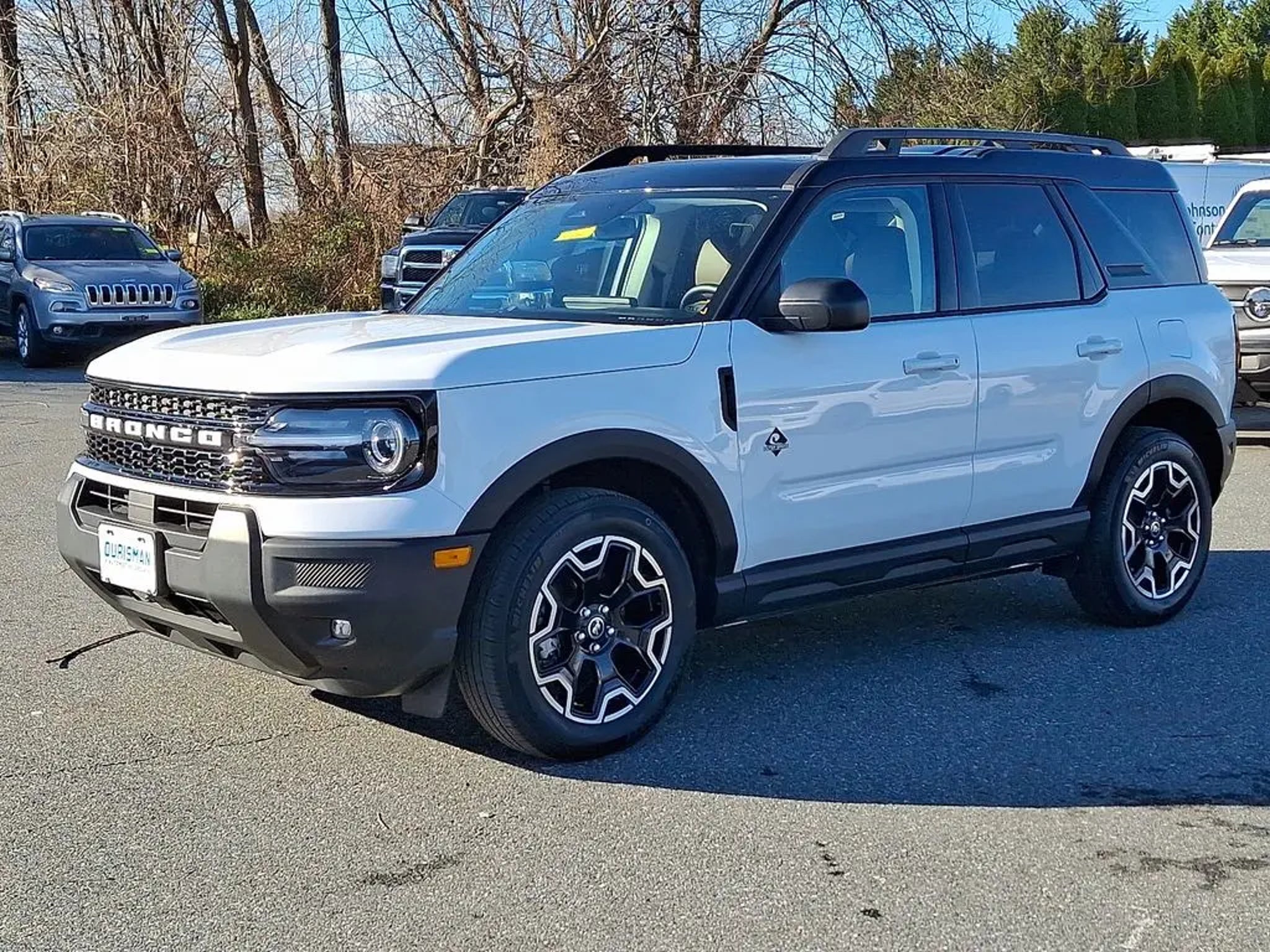 Recent Arrival! CARFAX One-Owner. This 2025 Oxford White Ford Bronco Sport Outer Banks 4WD is well equipped and includes these features and benefits: **MARYLAND STATE INSPECTED**BRONCO OUTER BANKS 4WD**ONLY 15K MILES!**300A PACKAGE**HEATED LEATHER SEATING**BLIND SPOT DETECTION**REMOTE START**REAR VIEW CAMERA** . **MARYLAND STATE INSPECTED**, Bronco Sport Outer Banks, 4D Sport Utility, 1.5L EcoBoost, 8-Speed Automatic, 4WD, Oxford White, Ebony/Roast w/Premium Trimmed Front Bucket Seats w/Ebony/Roast, Equipment Group 300A. 4WD Prices do not include tax, tags, title, registration, electronic filing fee, processing fee of $800 (Not required by law), and iKon (Optional $1,295.)