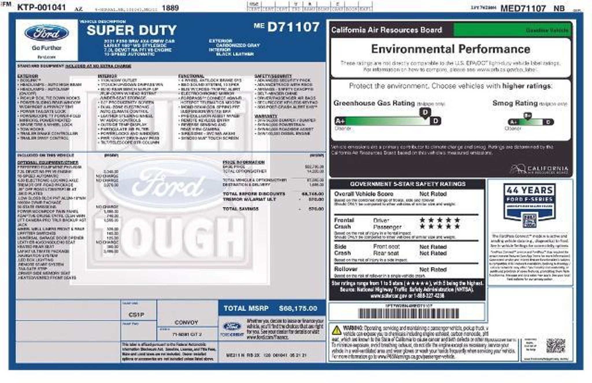 Discover the power and versatility of the 2021 Ford F-250SD Lariat. This commanding truck is built to handle the toughest jobs with ease, while delivering a premium driving experience that will impress even the most discerning truck enthusiast. Tailored to your needs, this F-250SD Lariat comes equipped with an impressive array of features, including: â Tremor Off-Road Package â Lariat Ultimate Package â Voice-Activated Navigation â Memory Power-Adjustable Pedals â Easy EntryÂ/Exit Memory Driver's Seat Feature â Power Telescoping/Tilt Steering Wheel/Column â Intelligent Access with Push-Button Start â Remote Tailgate Release â Body-Color Wheellip Moldings â LED Box Lighting â PowerScope Trailer Tow Mirrors with Memory Under the hood, the 7.3L V8 engine delivers exceptional power and performance, while the 10-speed automatic transmission and 4WD system ensure confident handling in any terrain. The Tremor Off-Road Package further enhances the F-250SD's off-road capabilities, with features like unique front springs, a rear electronic locking differential, and performance shock absorbers. Inside, the Lariat Ultimate Package pampers you with luxurious amenities, including heated and ventilated front seats, a power-adjustable steering wheel, and a premium audio system. The 360-degree camera system and Pro Trailer Backup Assist make towing a breeze, while the adaptive cruise control and collision warning provide added peace of mind on the road. Whether you're tackling demanding job sites or embarking on adventurous weekend getaways, the 2021 Ford F-250SD Lariat is up for the challenge. Its exceptional capabilities, premium features, and refined interior make it the ultimate choice for discerning truck buyers who demand the very best. We invite you to experience the power and sophistication of this remarkable vehicle firsthand. Visit our showroom today and let us demonstrate how the F-250SD Lariat can transform the way you work and play.