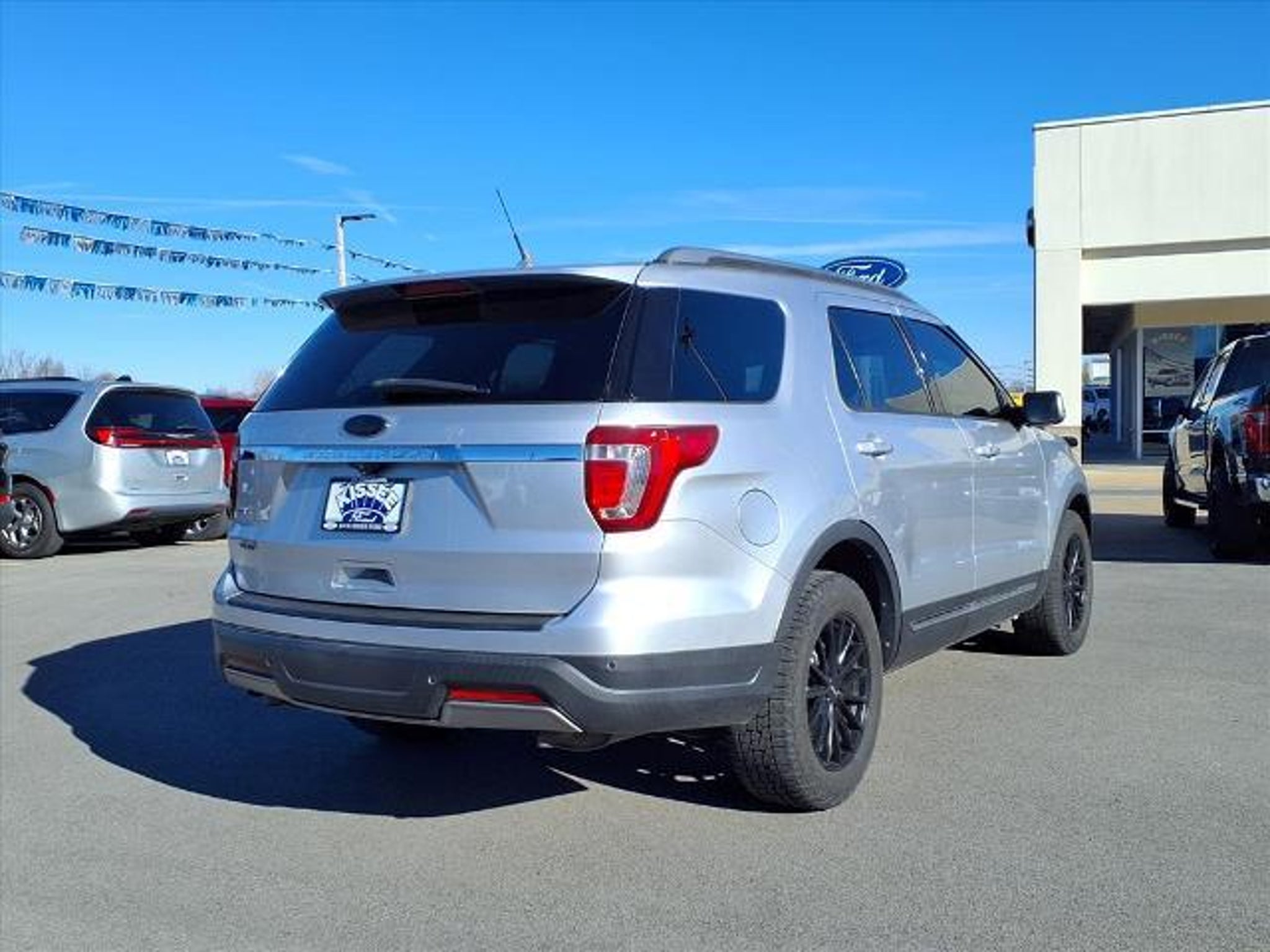 This 2019 Ford Explorer XLT in Ingot Silver comes with the following features: 3.5L 6-Cylinder SMPI DOHC 6-Speed Automatic with Select-Shift FWD Driver Connect Package (2 Driver Configurable 4.2 Color LCD Displays, Auto-Dimming Rear-View Mirror, and FordPass Connect), Equipment Group 201A (8-Way Power Passenger Seat, BLIS Blind Spot Information System, Dual-Zone Electronic Automatic Temperature Ctrl, LED Fog Lamps, LED Signature Lighting, Power & Heated Glass Sideview Mirrors, Power Liftgate, Radio: AM/FM Stereo w/7 Speakers, and Remote Start System), 3.39 Non-Limited-Slip Axle Ratio, 3rd row seats: split-bench, 4-Wheel Disc Brakes, 6 Speakers, ABS brakes, Air Conditioning, Alloy wheels, AM/FM radio: SiriusXM, AM/FM Stereo, Brake assist, Bumpers: body-color, Compass, Delay-off headlights, Driver door bin, Driver vanity mirror, Dual front impact airbags, Dual front side impact airbags, Electronic Stability Control, Emergency communication system: 911 Assist, Exterior Parking Camera Rear, Four wheel independent suspension, Front anti-roll bar, Front Bucket Seats, Front Center Armrest, Front reading lights, Fully automatic headlights, Heated door mirrors, Illuminated entry, Knee airbag, Leather steering wheel, Low tire pressure warning, Occupant sensing airbag, Outside temperature display, Overhead airbag, Overhead console, Panic alarm, Passenger door bin, Passenger vanity mirror, Power door mirrors, Power driver seat, Power passenger seat, Power steering, Power windows, Rear air conditioning, Rear anti-roll bar, Rear Parking Sensors, Rear reading lights, Rear seat center armrest, Rear window defroster, Rear window wiper, Remote keyless entry, Roof rack: rails only, Security system, Speed control, Speed-sensing steering, Speed-Sensitive Wipers, Split folding rear seat, Spoiler, Steering wheel mounted audio controls, SYNC Communication & Entertainment System, Tachometer, Telescoping steering wheel, Tilt steering wheel, Traction control, Trip computer, Unique Cloth Bucket Seats, Variably intermittent wipers, and Wheels: 18 5-Spoke Sparkle Silver-Painted Alum. Ingot Silver 2019 Ford Explorer XLT FWD 6-Speed Automatic with Select-Shift 3.5L 6-Cylinder SMPI DOHC Odometer is 27537 miles below market average! Come see Kissee!